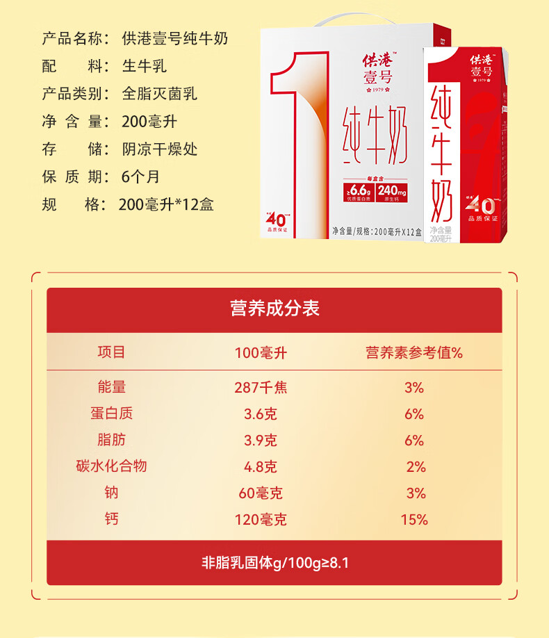 晨光供港壹号纯牛奶200ml*12盒*3箱 全脂纯牛奶-1【9月生产】