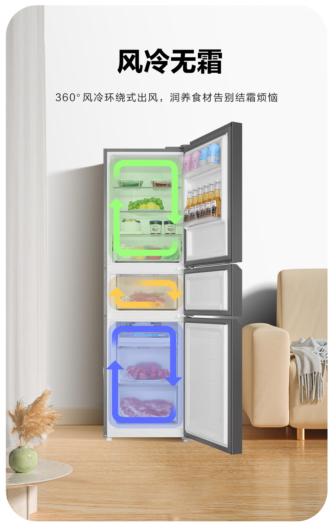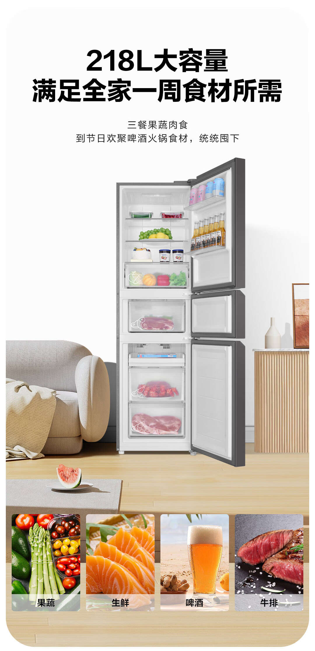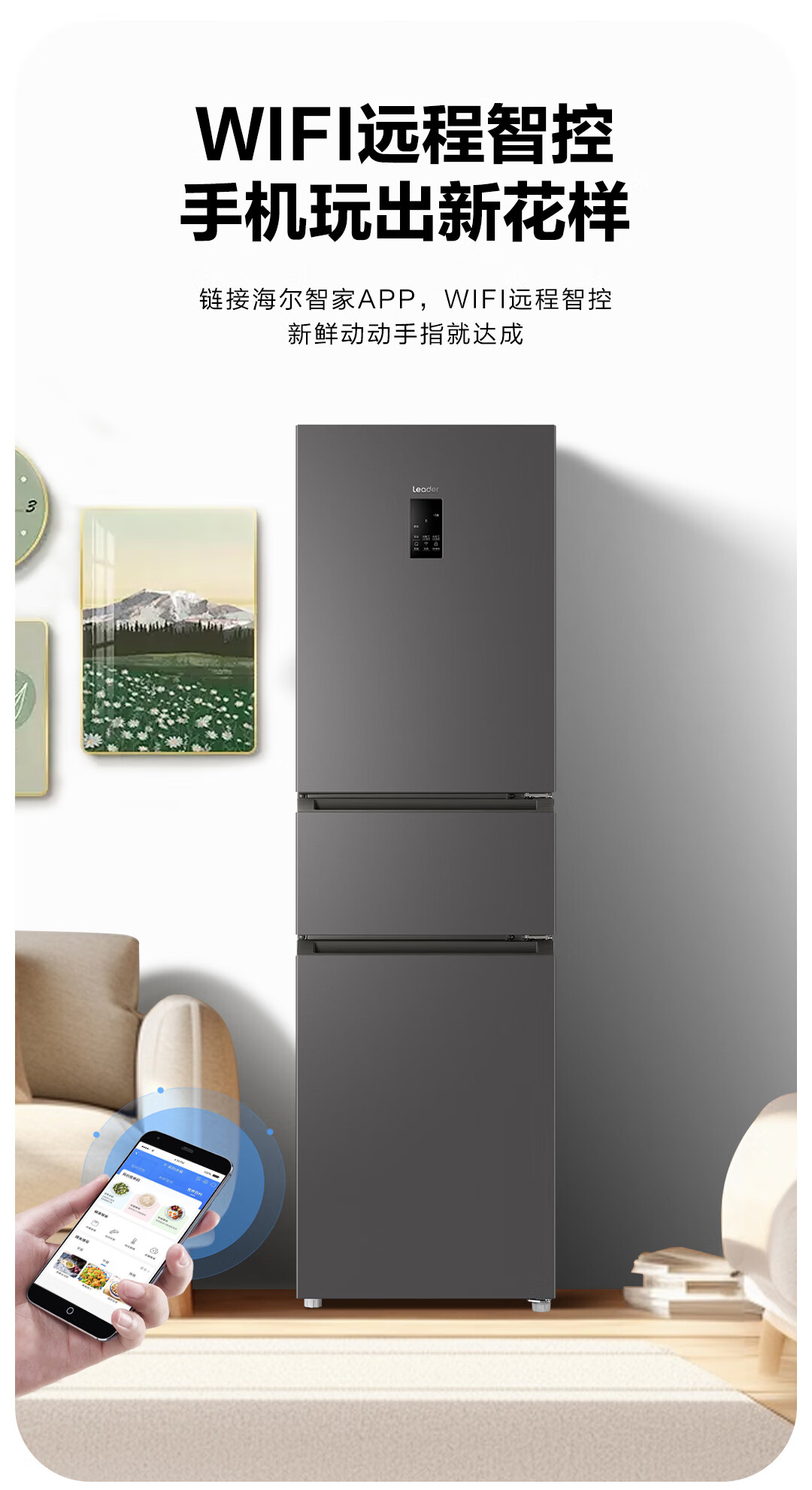 统帅(Leader) 海尔智家出品218升三门一级能效冰箱小型宿舍租房风冷无霜除菌BCD-218WGLC3D7S9U1国家补贴20%
