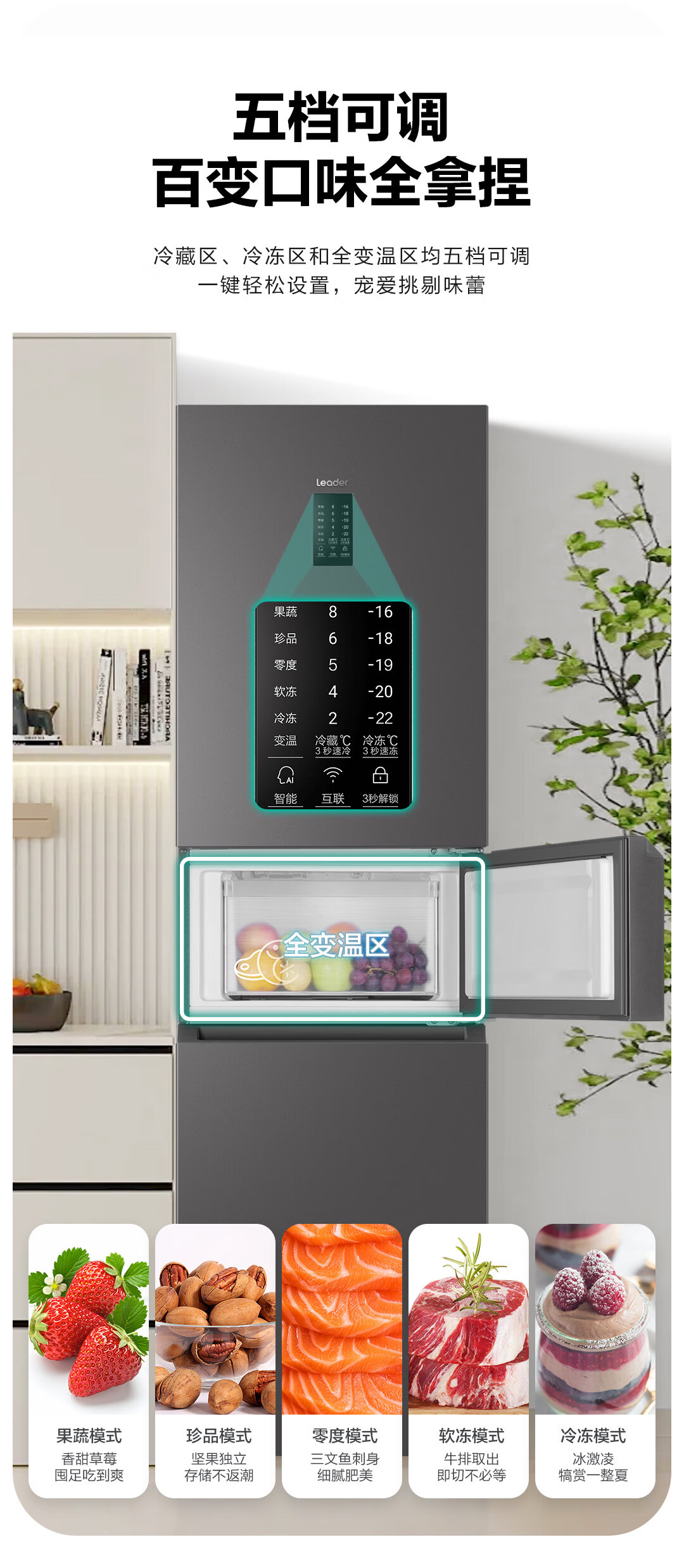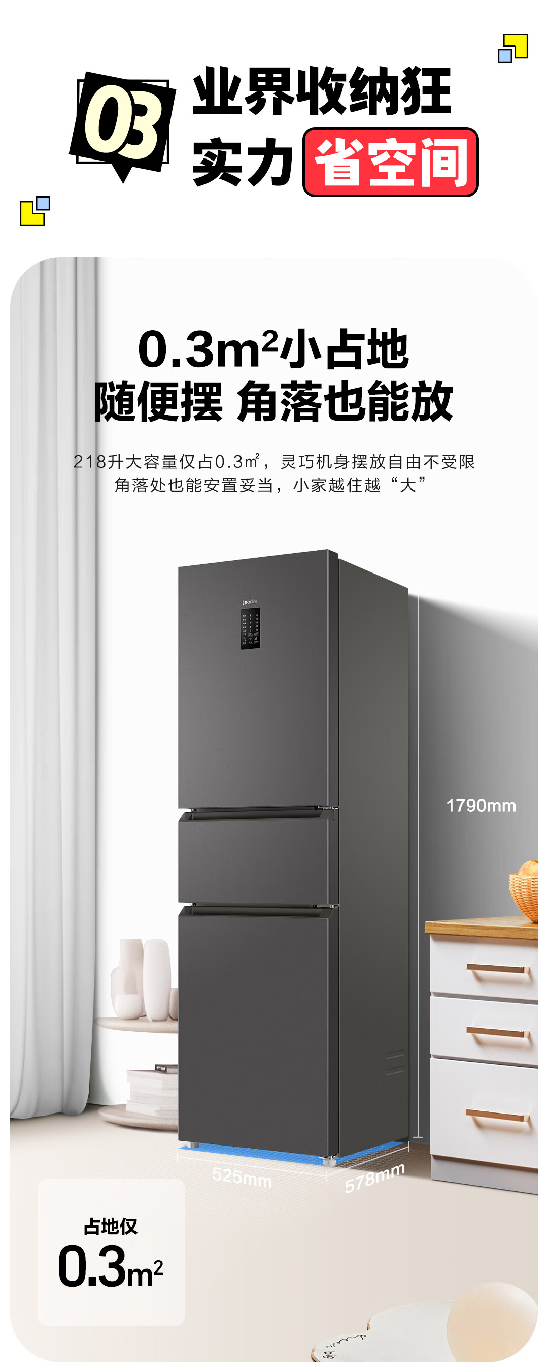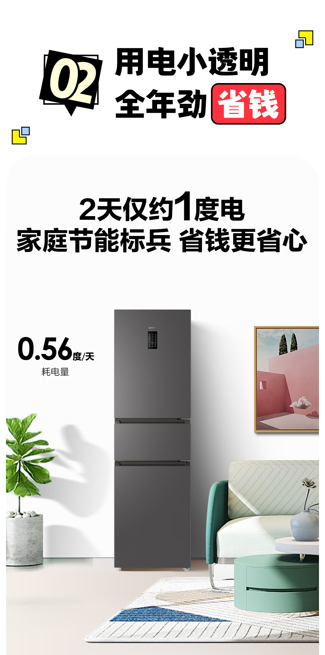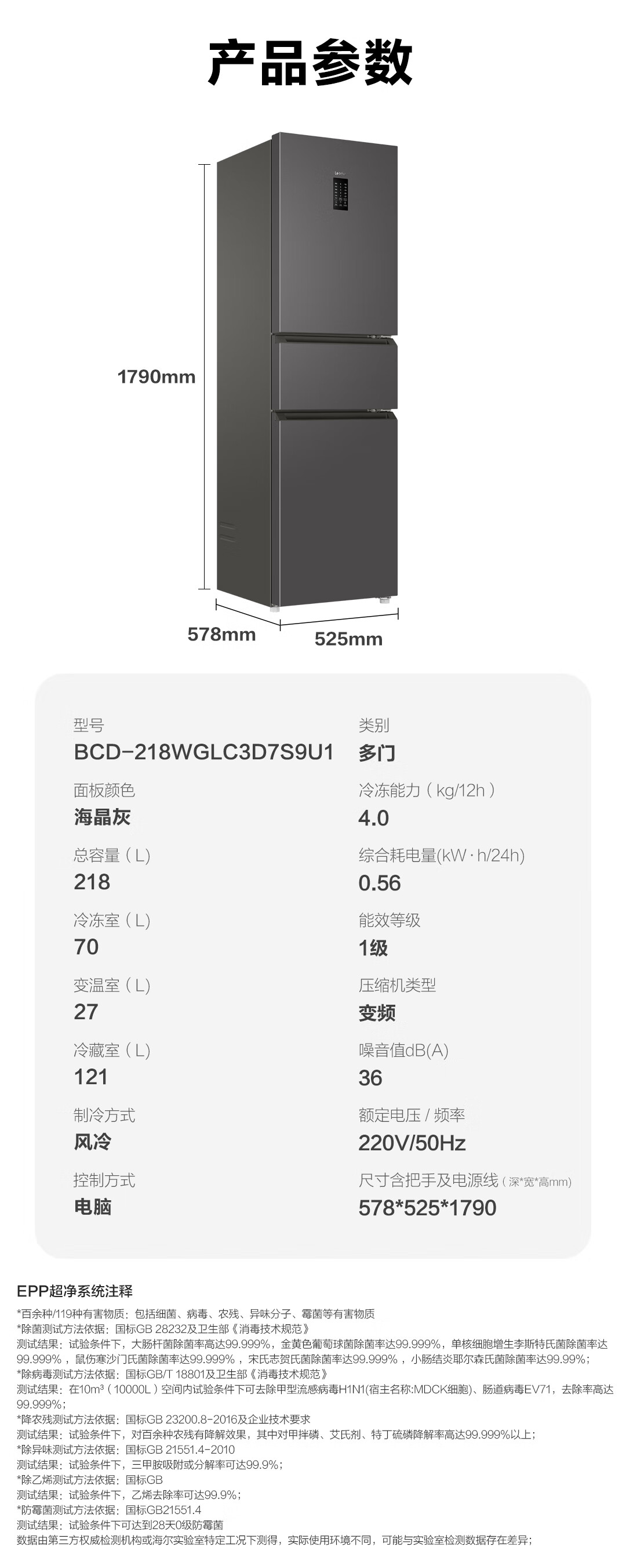 统帅(Leader) 海尔智家出品218升三门一级能效冰箱小型宿舍租房风冷无霜除菌BCD-218WGLC3D7S9U1国家补贴20%