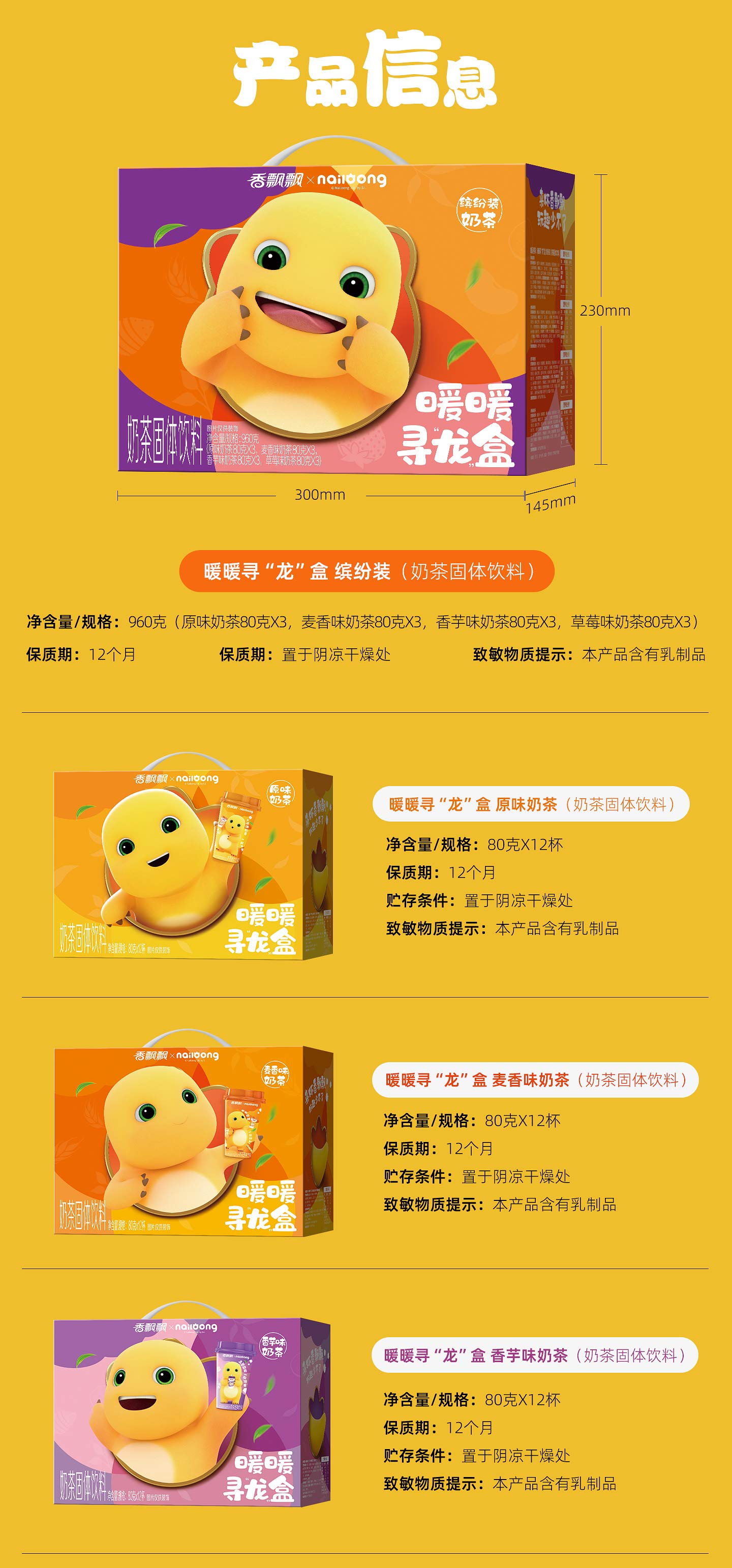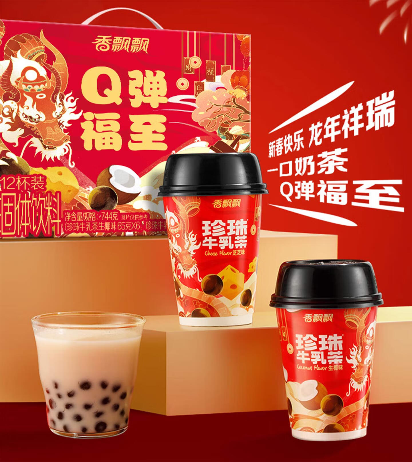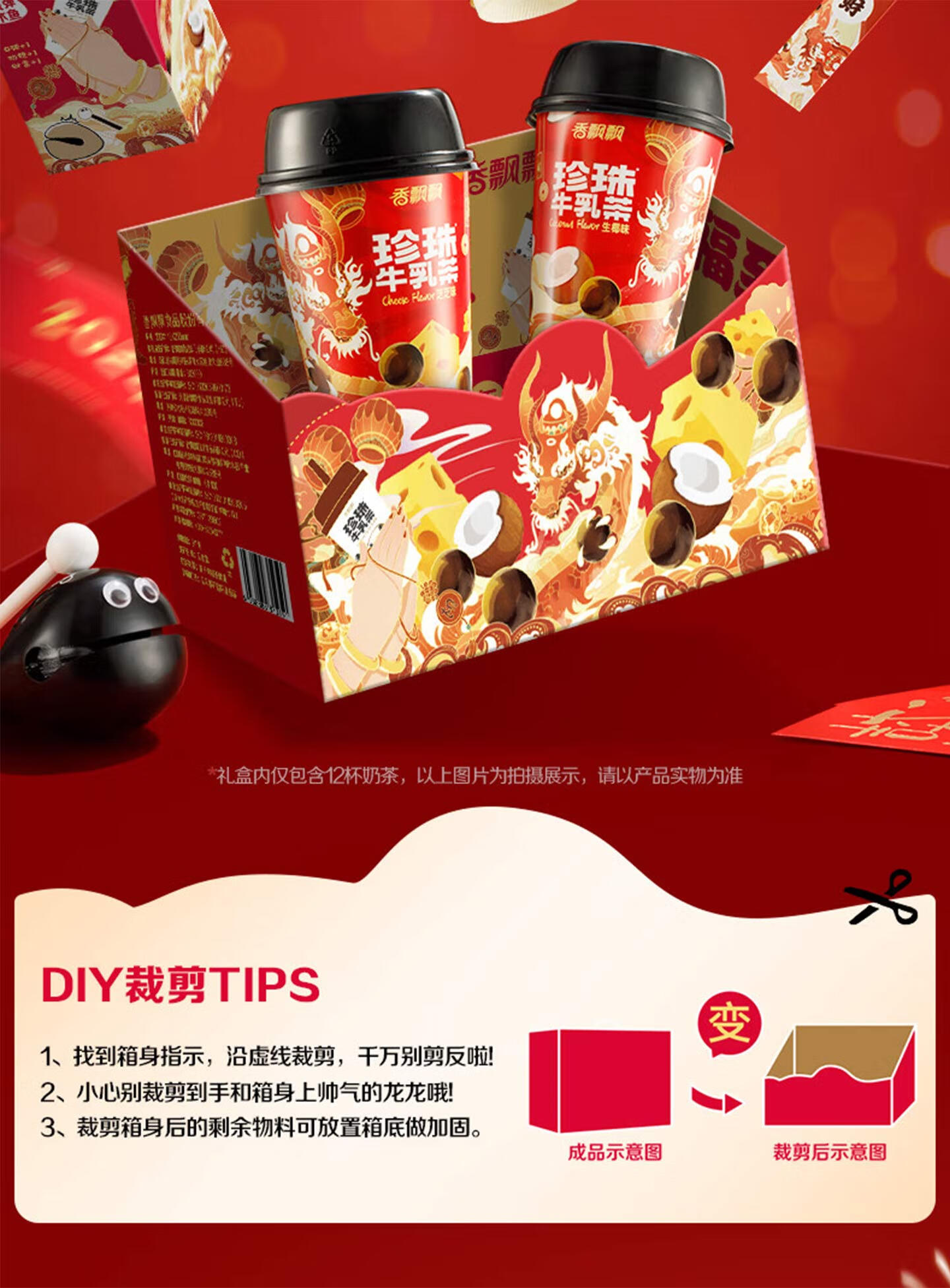 香飘飘【奶龙联名款】冲泡奶茶饮料早餐下午茶礼盒装送人聚会 奶龙联名礼盒-缤纷装12杯