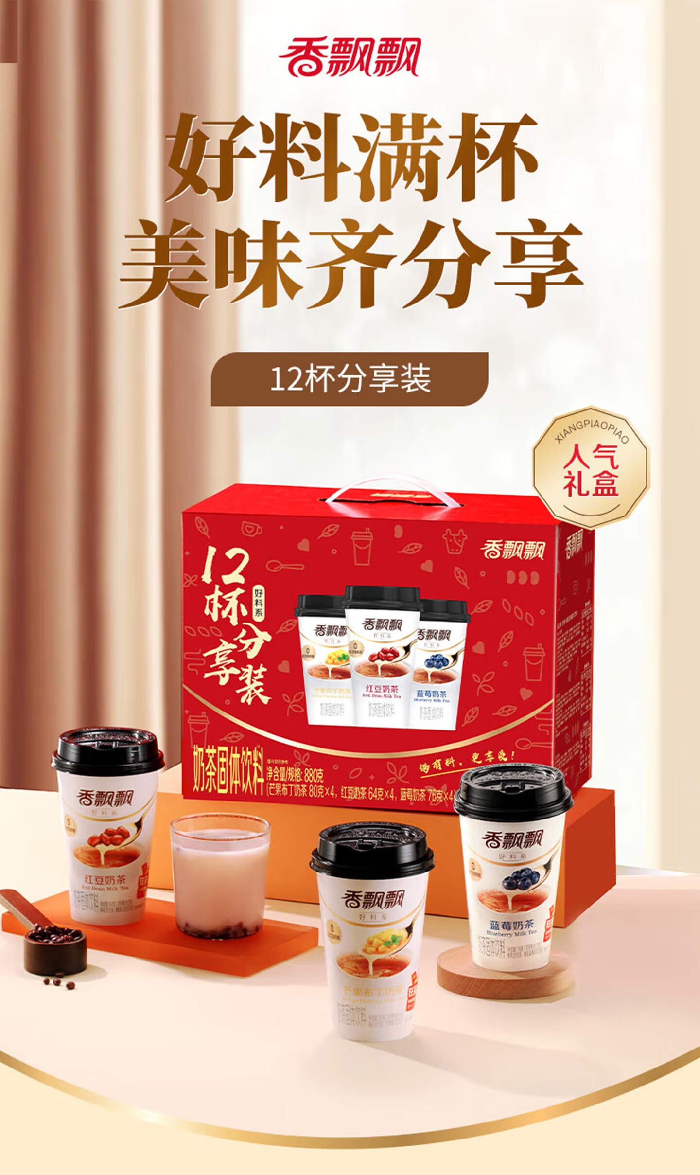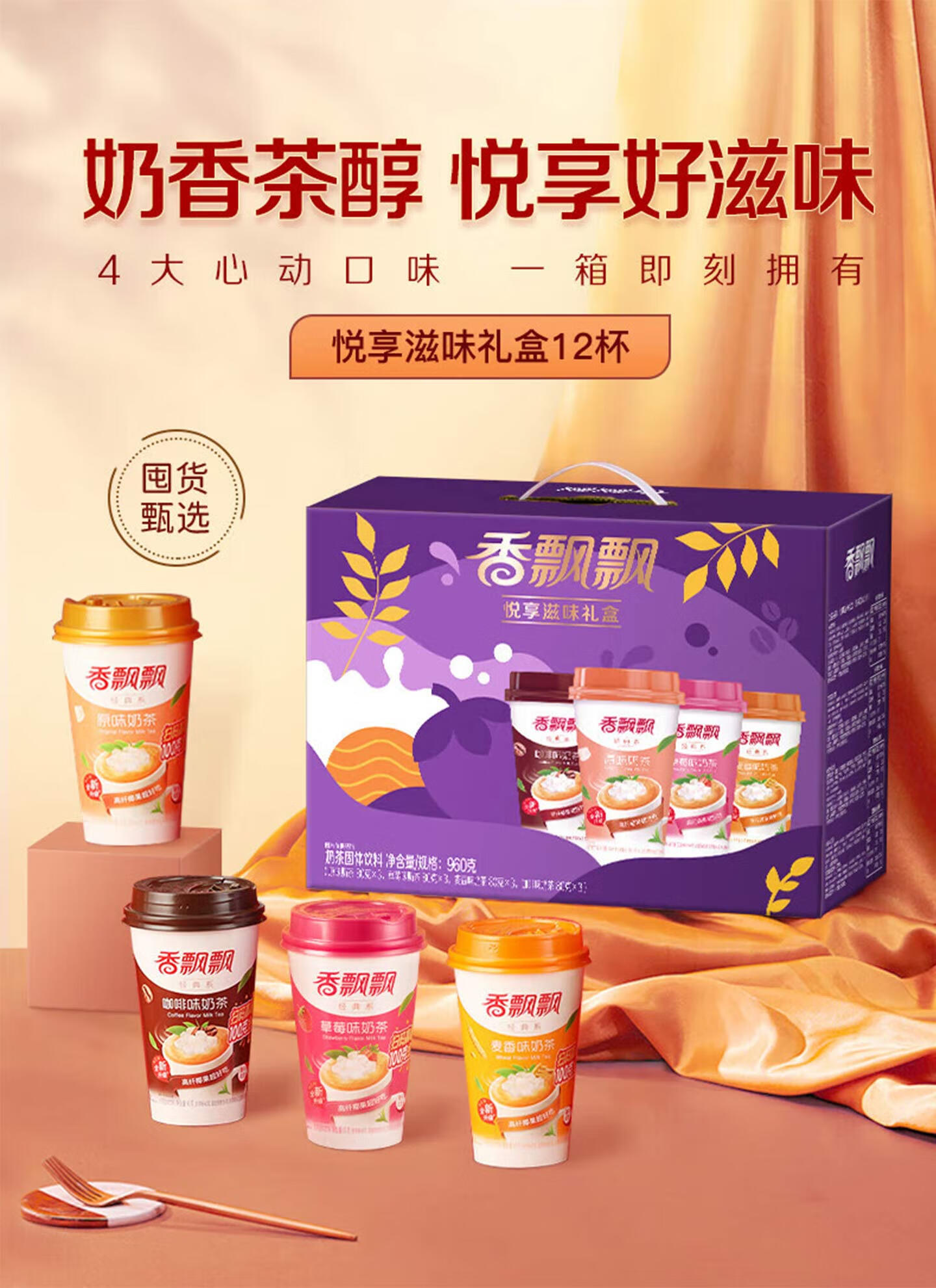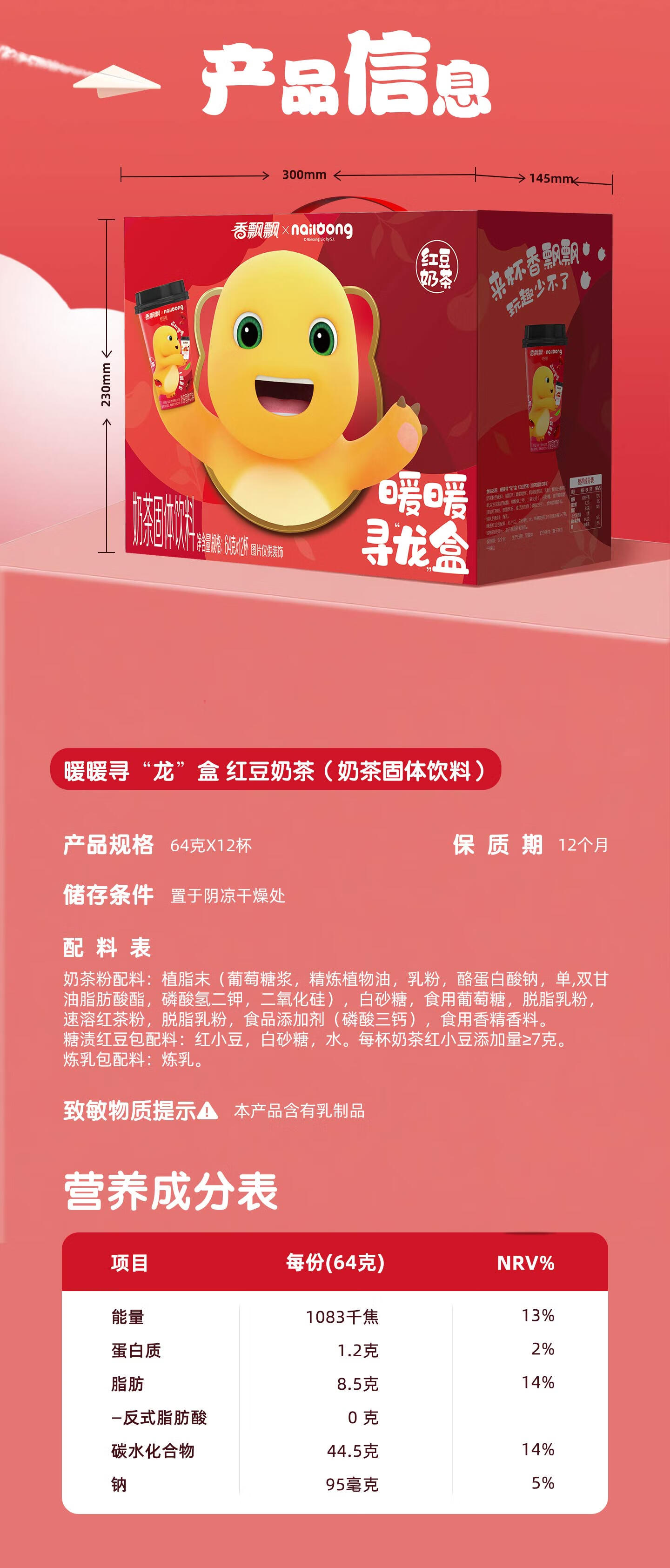 香飘飘【奶龙联名款】冲泡奶茶饮料早餐下午茶礼盒装送人聚会 奶龙联名礼盒-缤纷装12杯