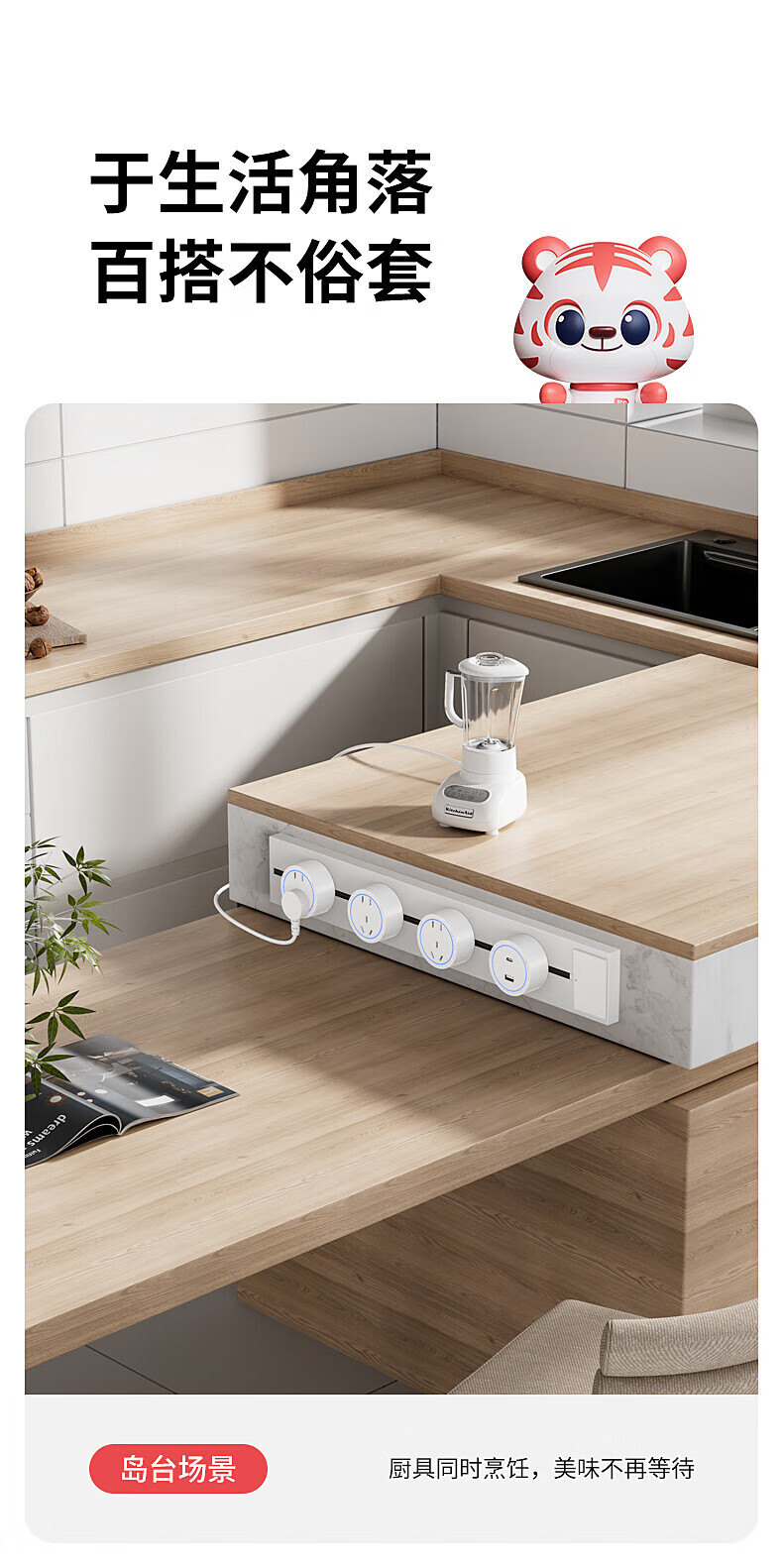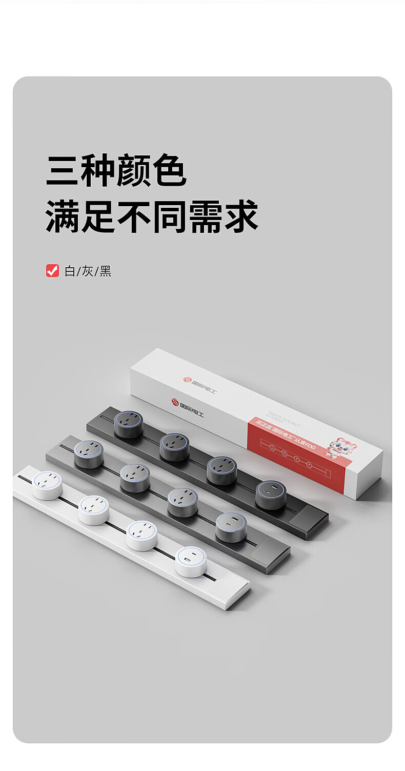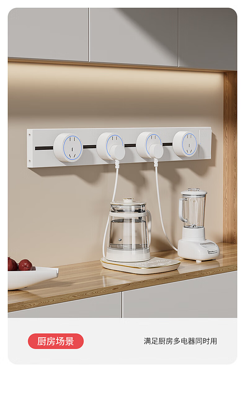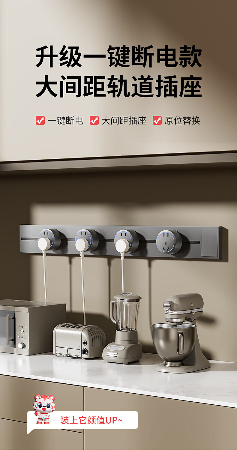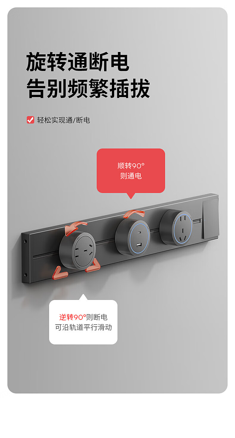 FDD国际电工明装轨道插座可移动滑轨扩展式面板86型插排电力厨房家用一键断电 【一键断电】30cm+2个五孔-雪白
