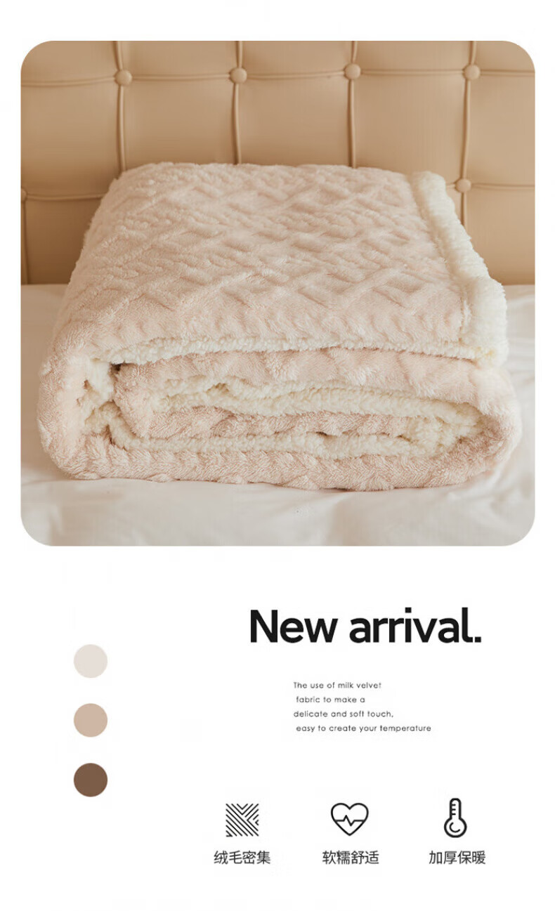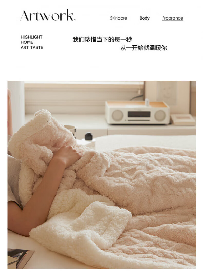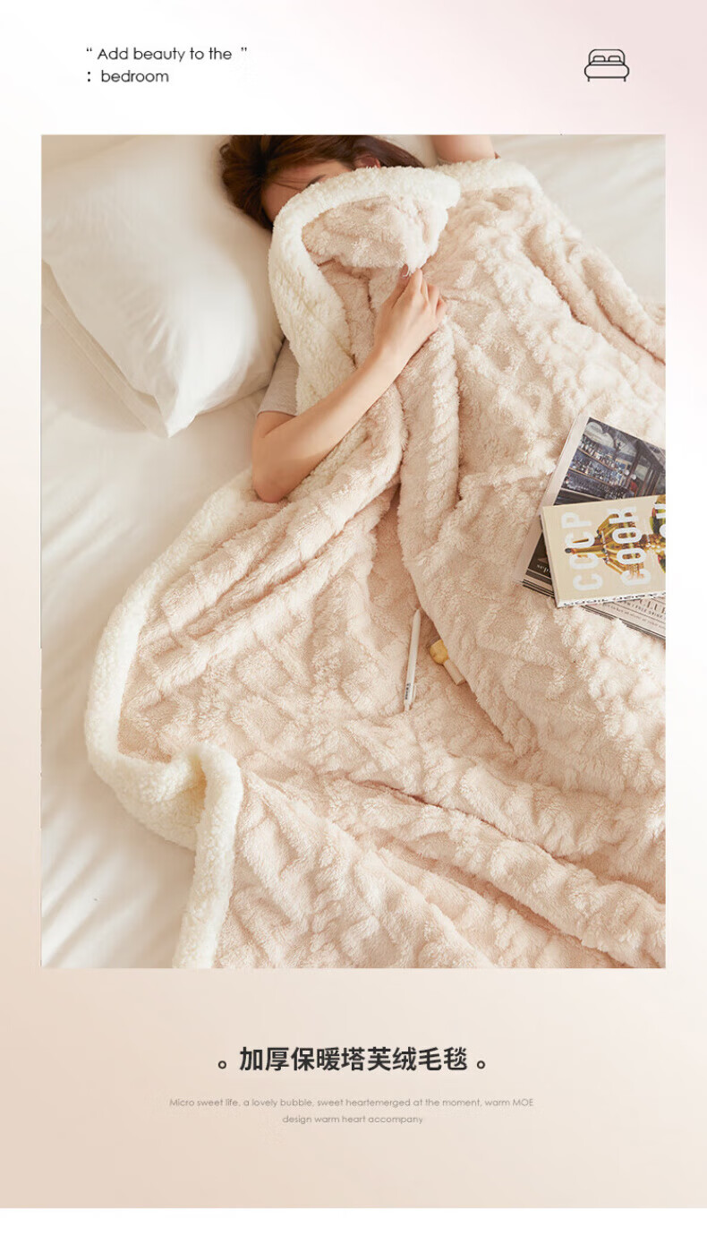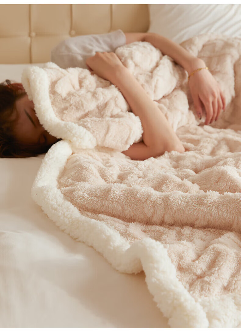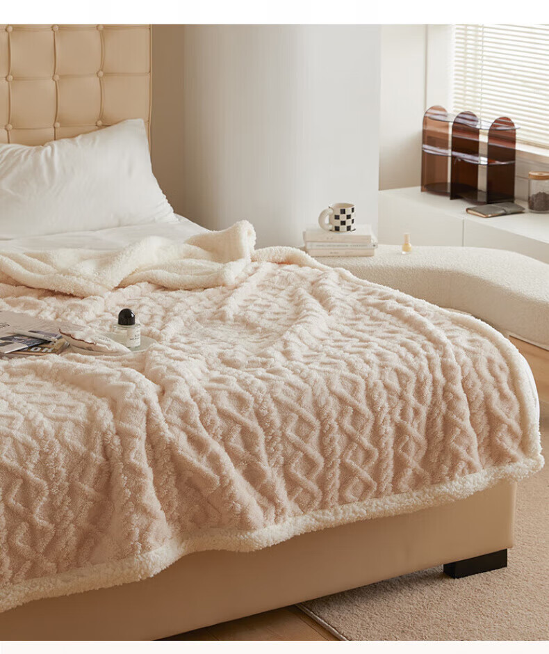 DEATKN德国高端羊羔毛毯加厚塔芙绒午睡沙发毯办公盖毯 米杏[塔芙绒+羊羔绒超软糯超保暖 100*150cm[披肩/盖腿]可机洗