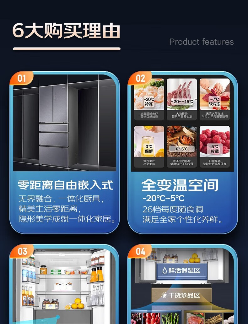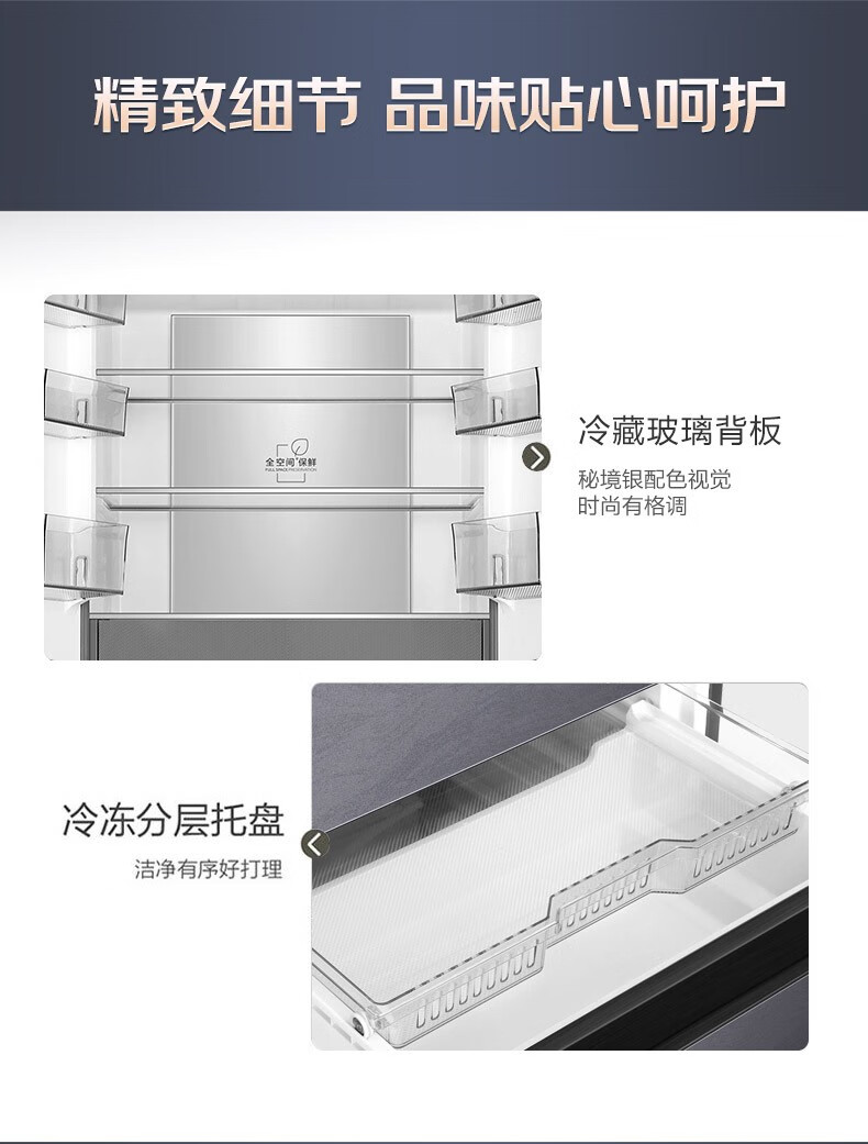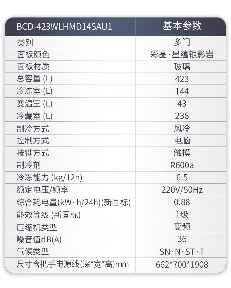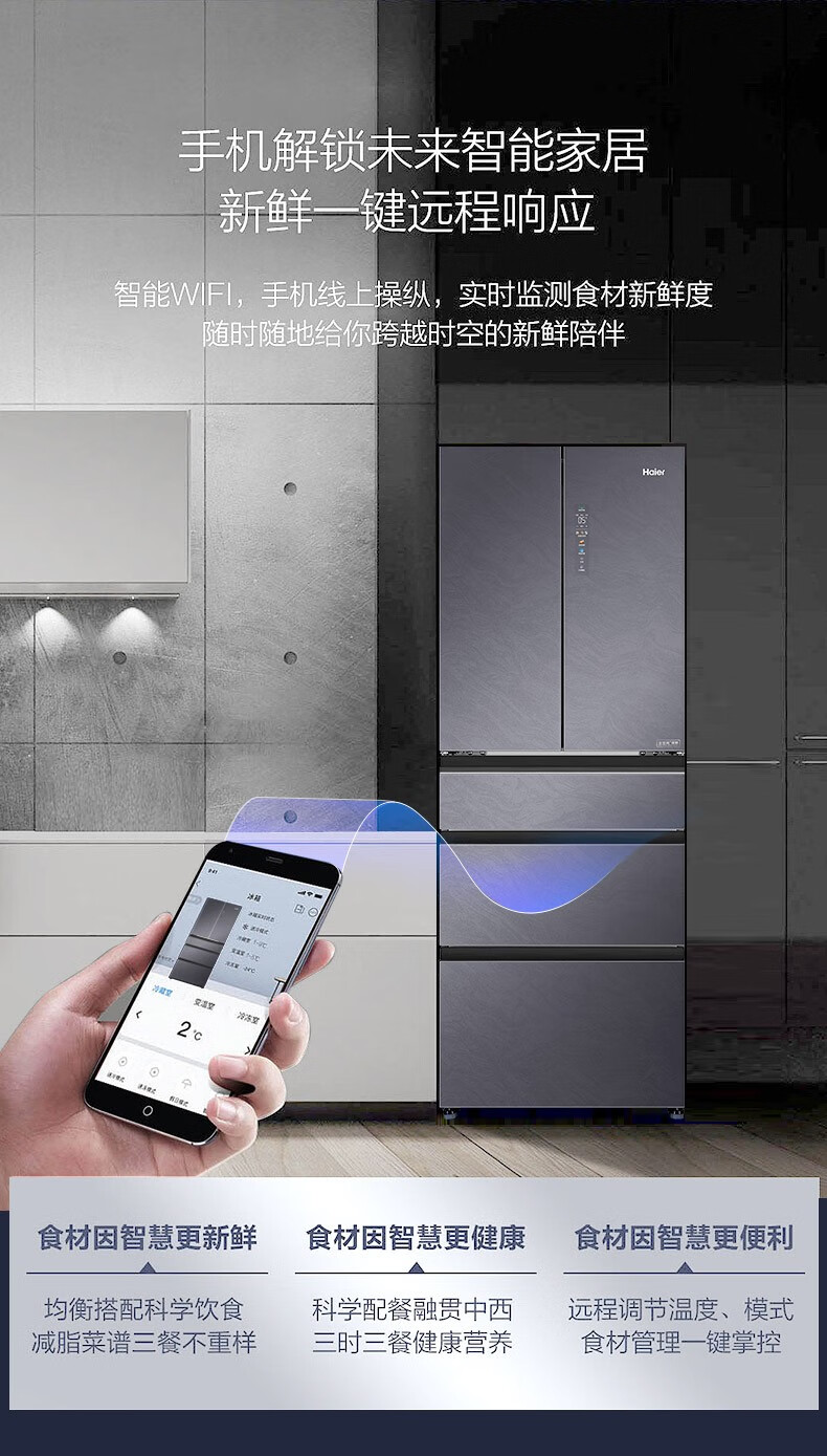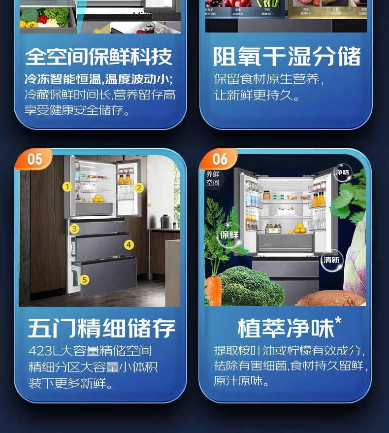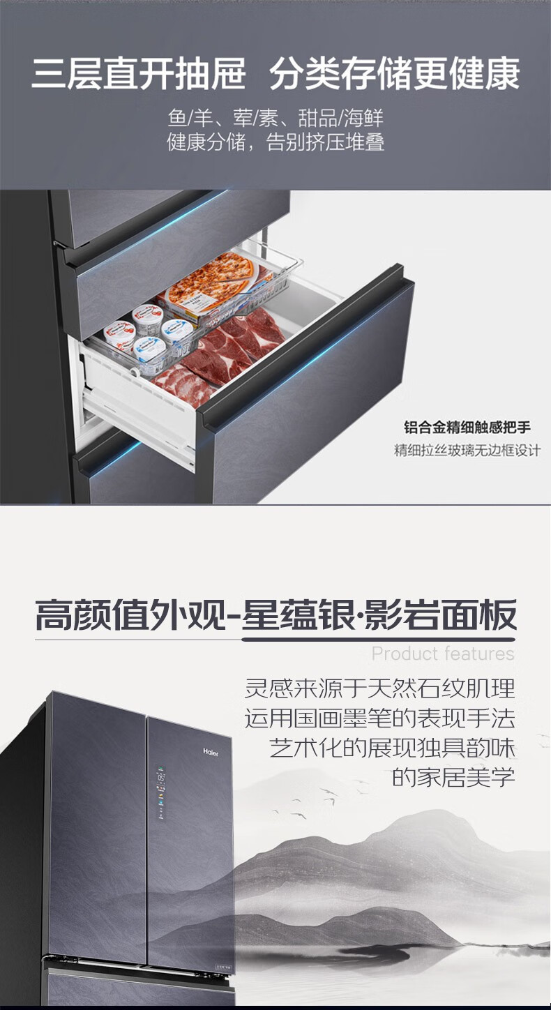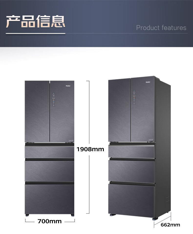 海尔(Haier)【700mm宽】冰箱423升零嵌入式超薄底部散热变频新一级风冷法式多门 70厘米宽 家用零嵌电冰箱 423L零距离嵌入+全空间保鲜变温+双变频
