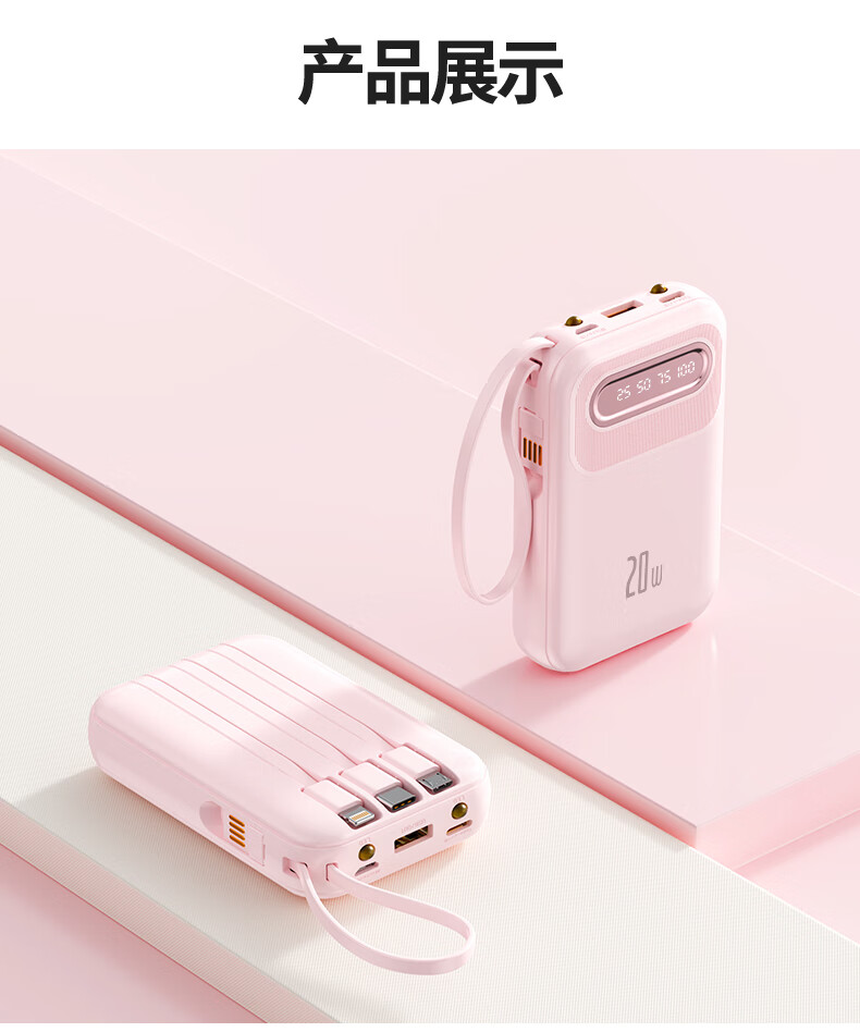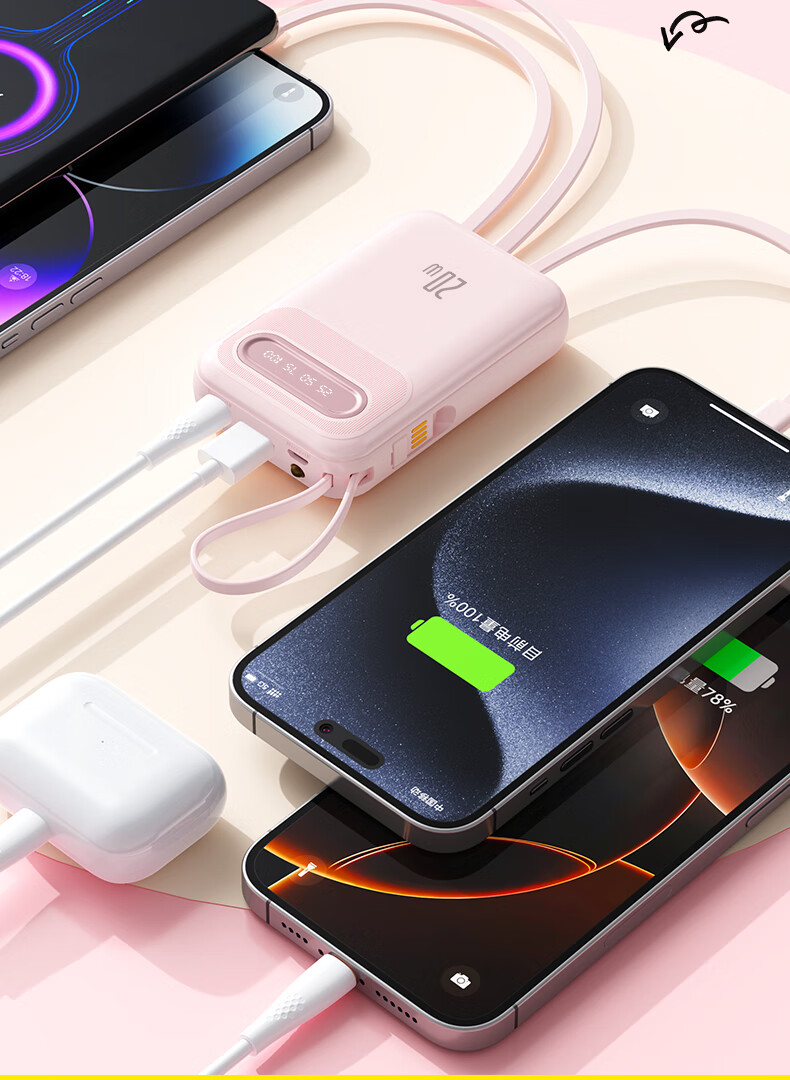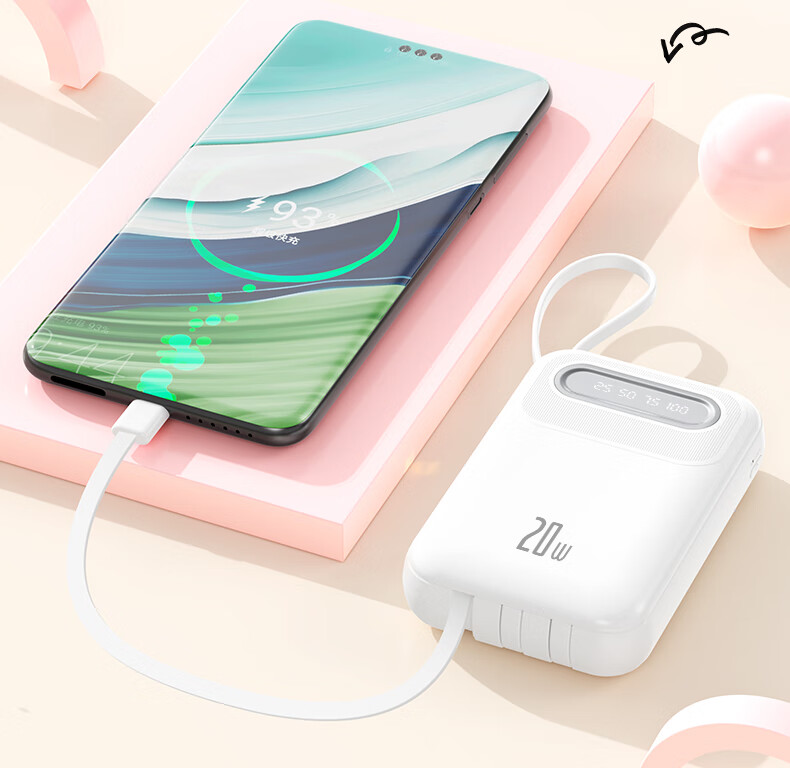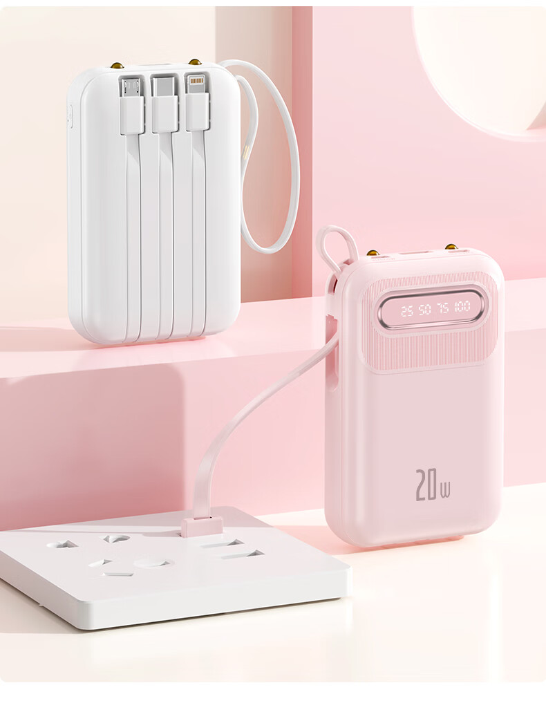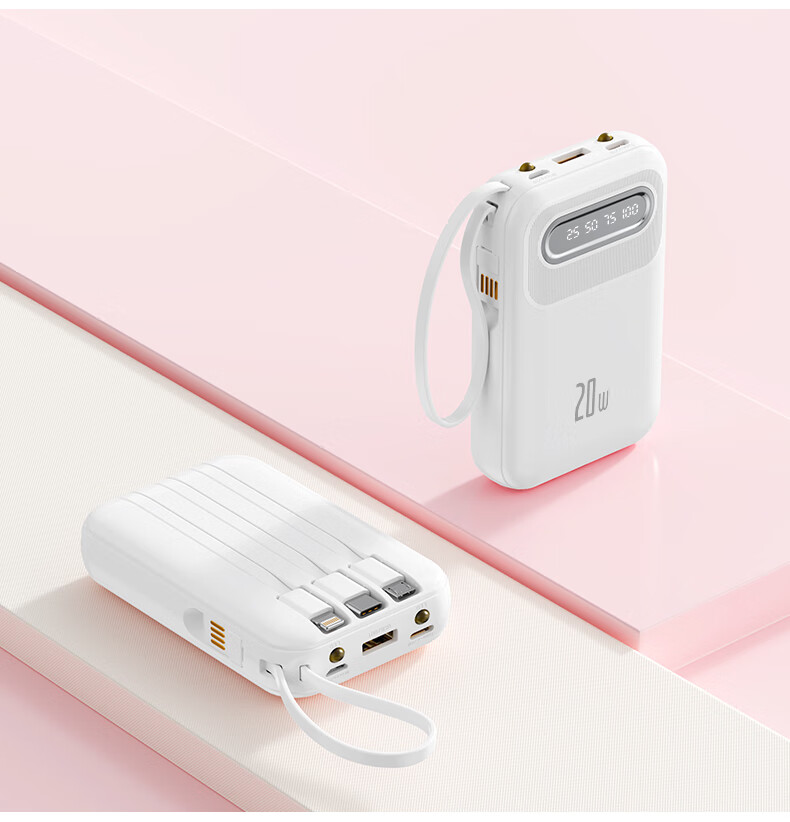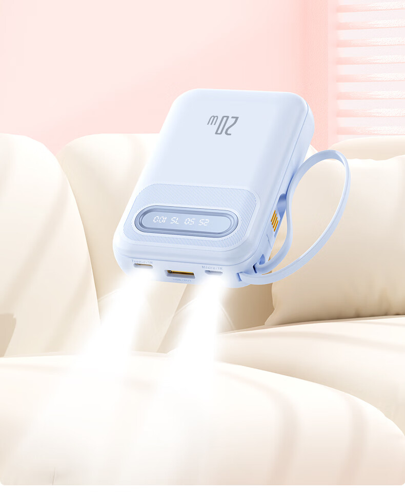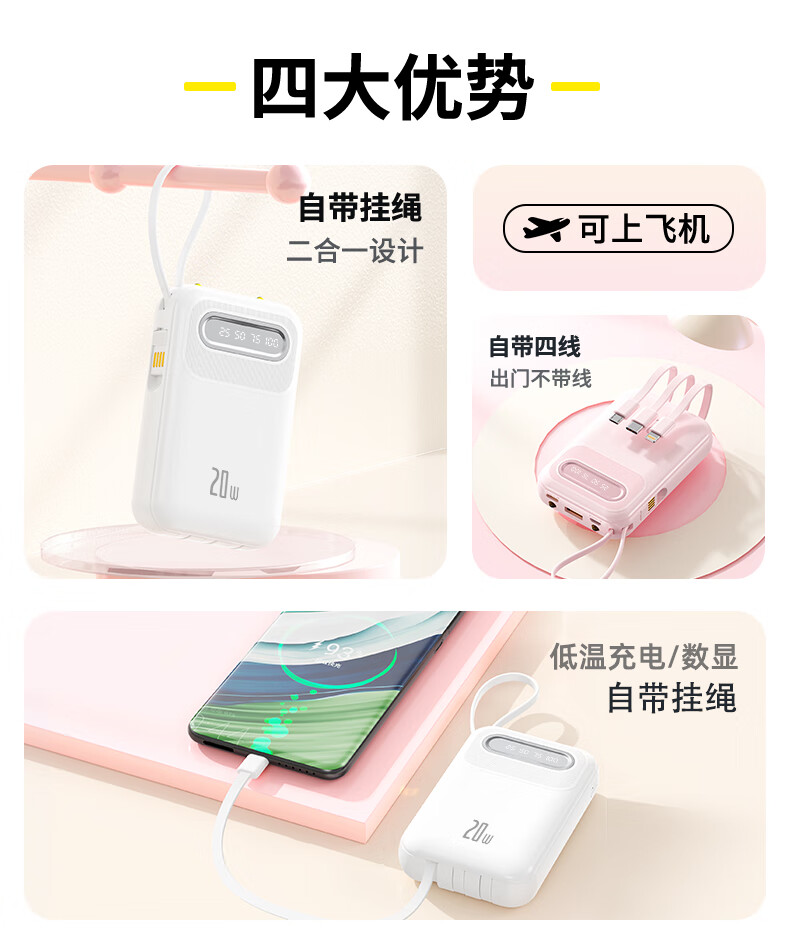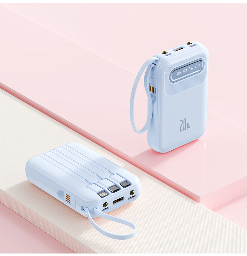 倍特源 【3c认证丨可上飞机】自带线充电宝大容量迷你快充小巧移动电源20000便携适用苹果小米安卓手机 蓝色【自带四线+国产电芯】3C认证丨可上飞机