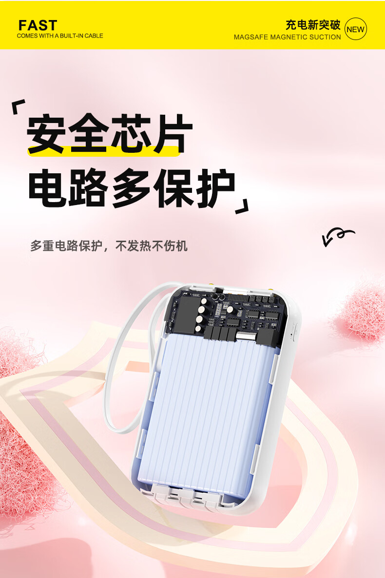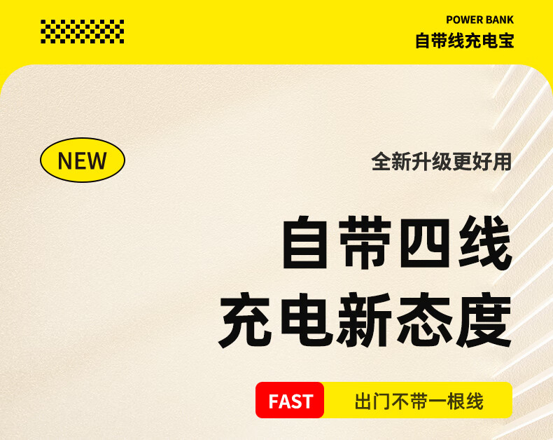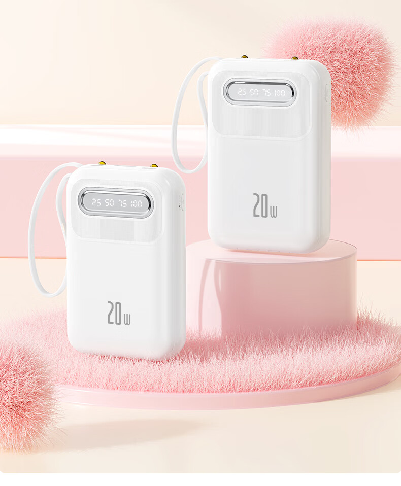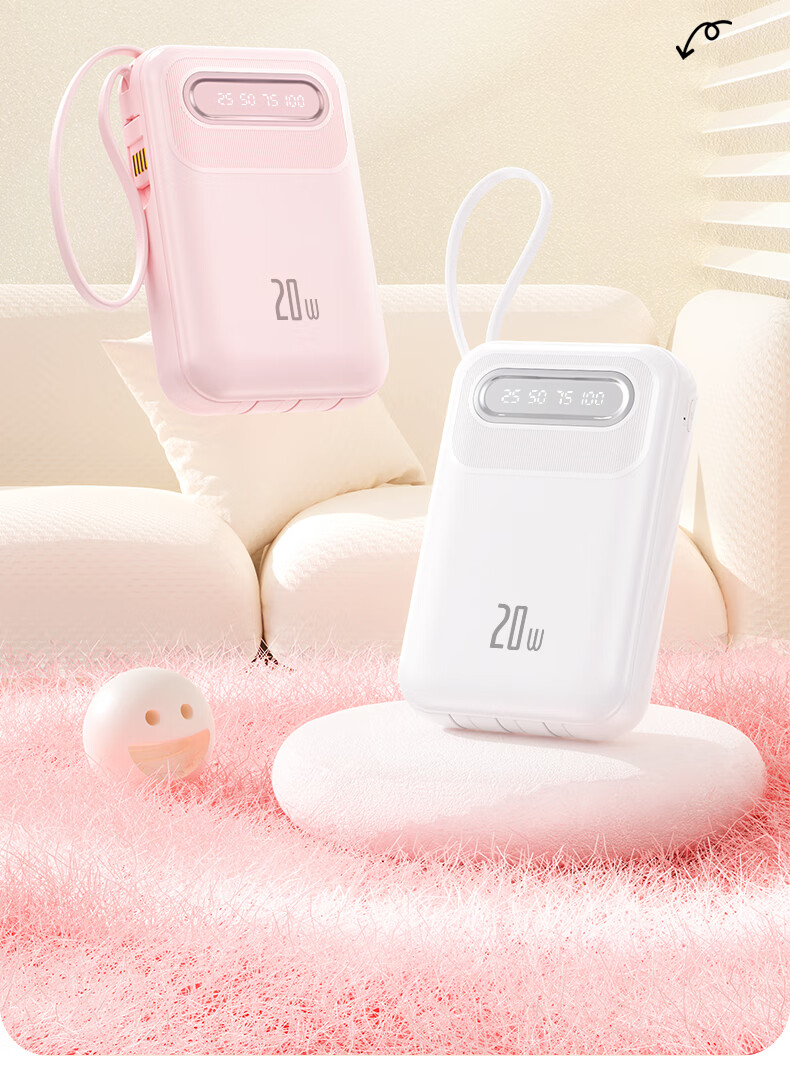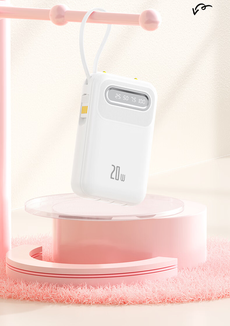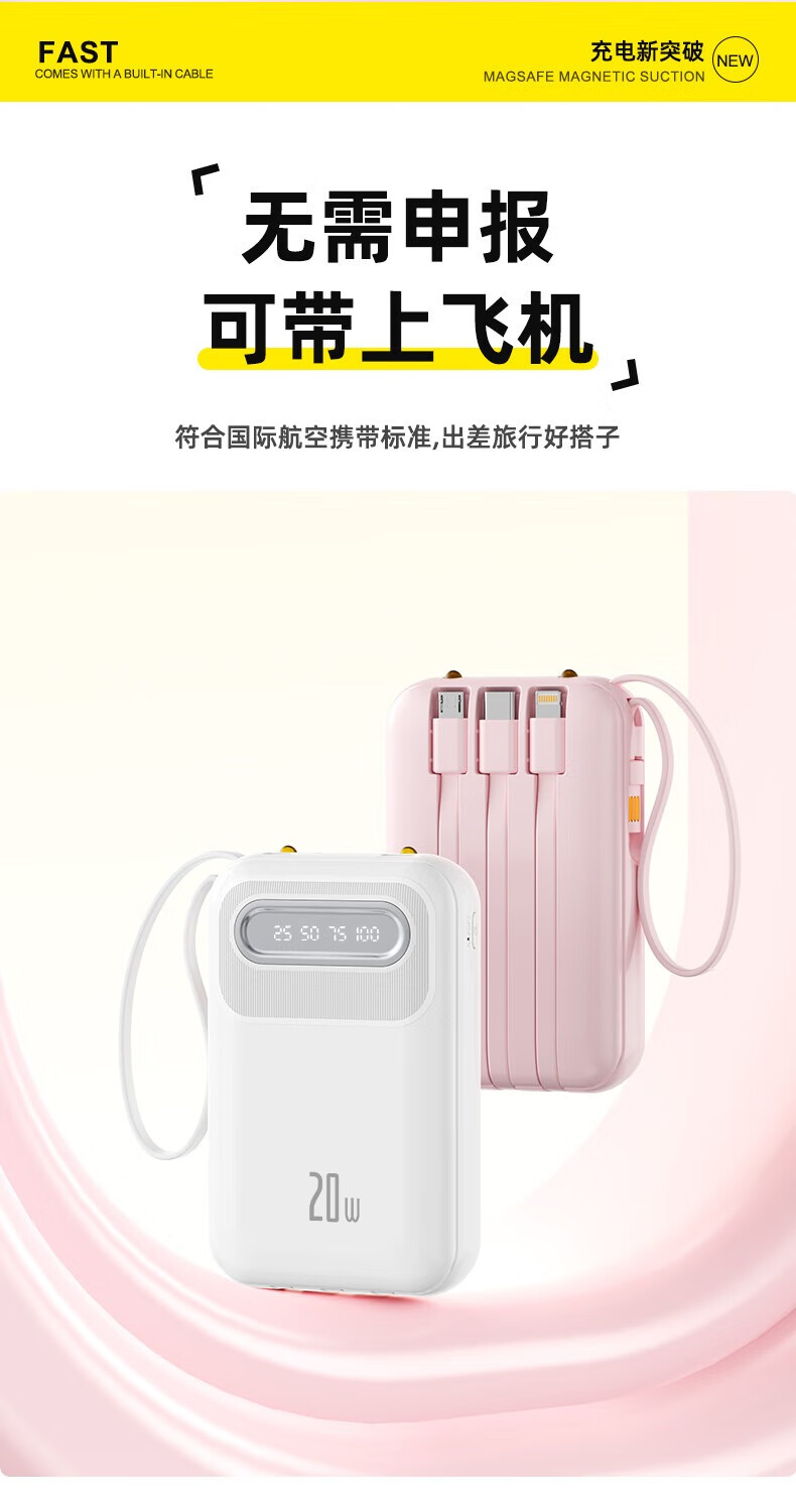 倍特源 【3c认证丨可上飞机】自带线充电宝大容量迷你快充小巧移动电源20000便携适用苹果小米安卓手机 蓝色【自带四线+国产电芯】3C认证丨可上飞机