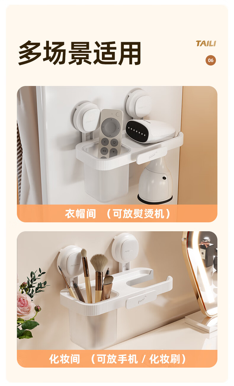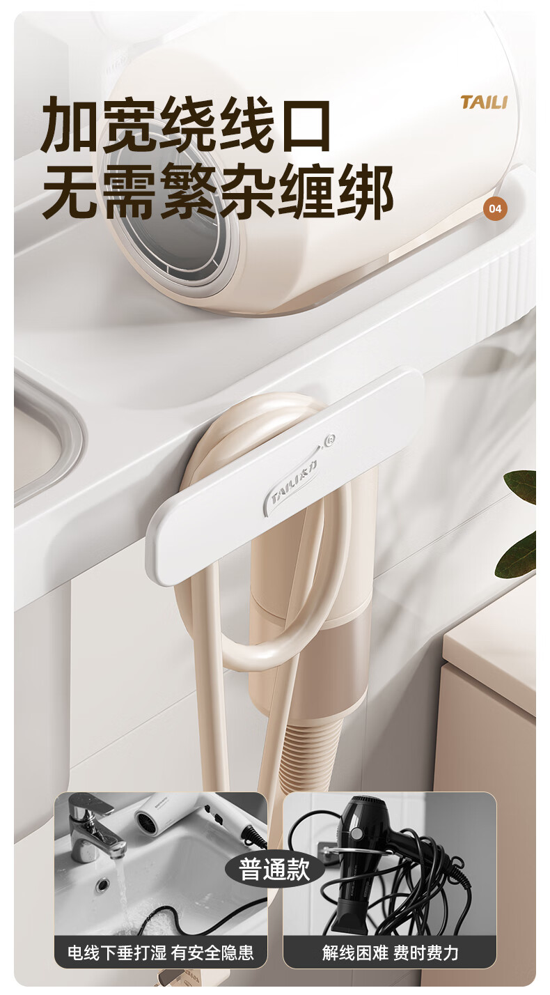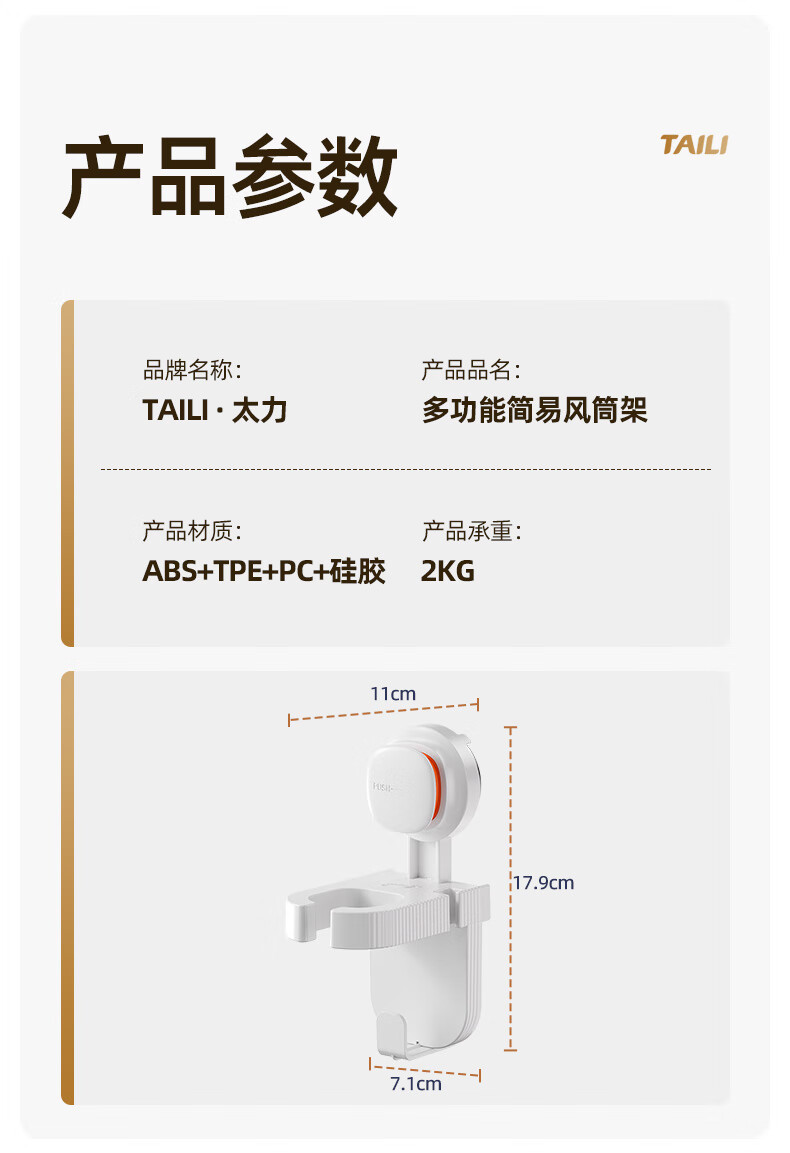 太力安可视吹风机架浴室免打孔吸盘风筒壁挂架卫生间收纳置物神器 白色带收纳盒