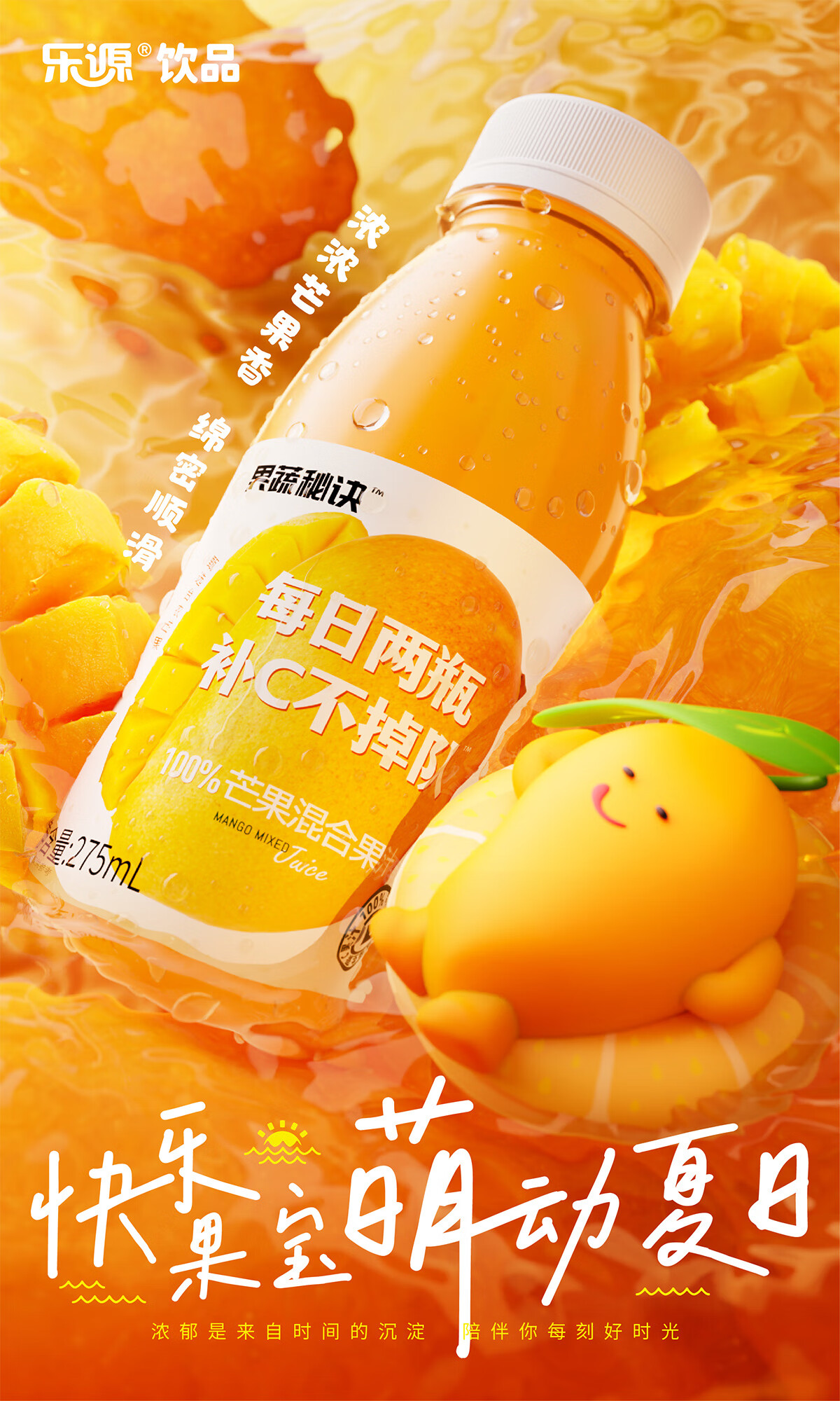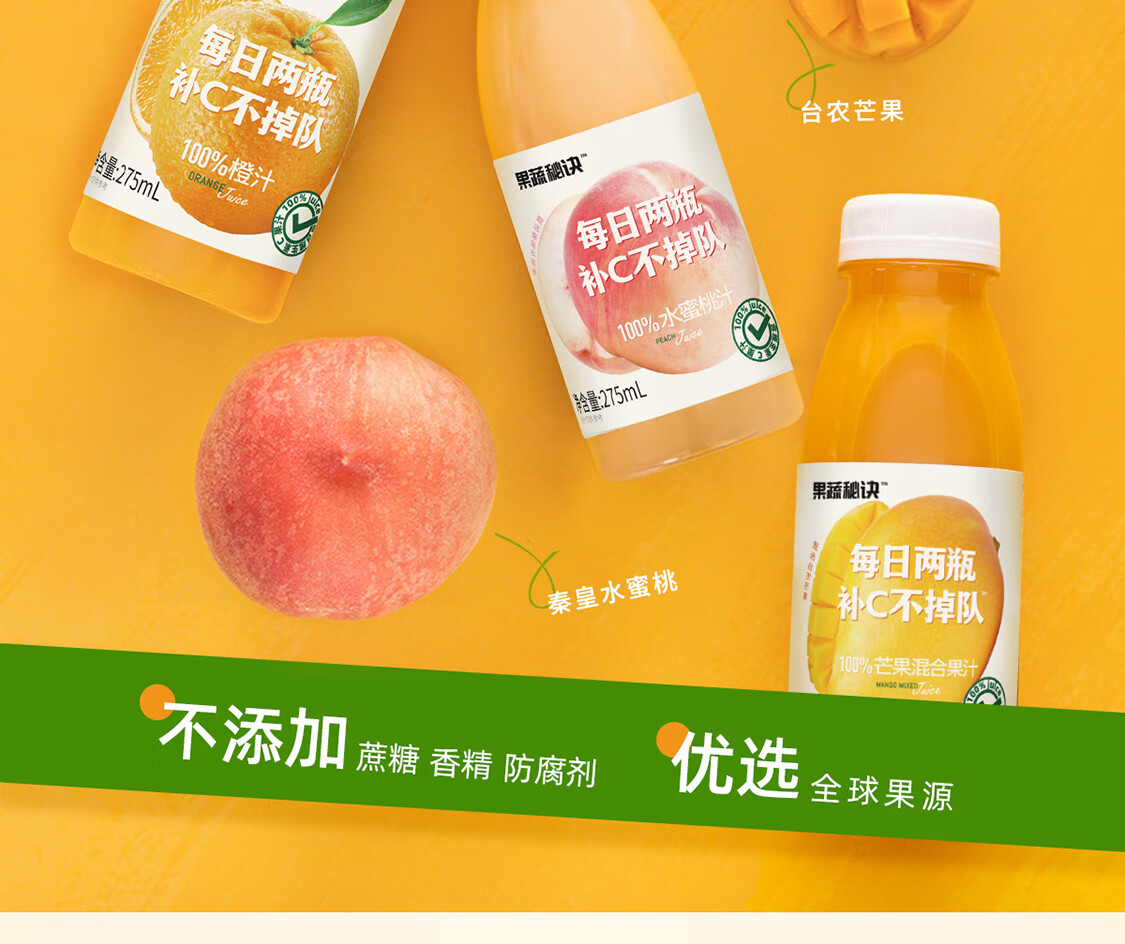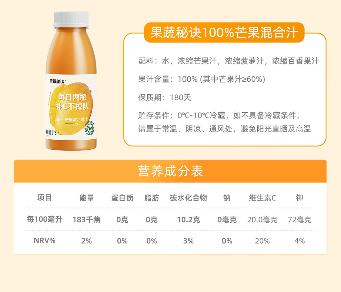 乐源菓蔬秘诀100%芒果混合果汁275ml*8瓶整箱