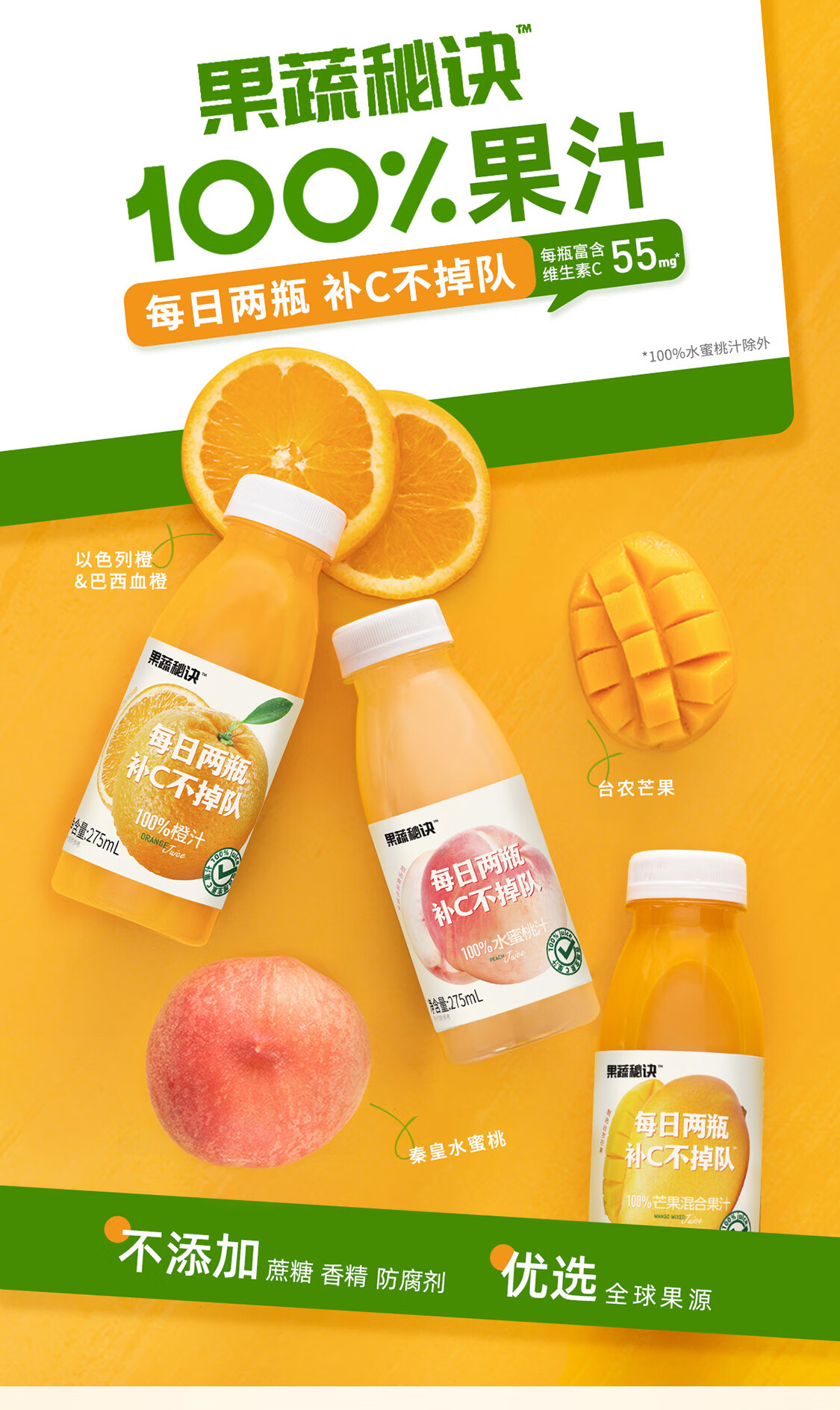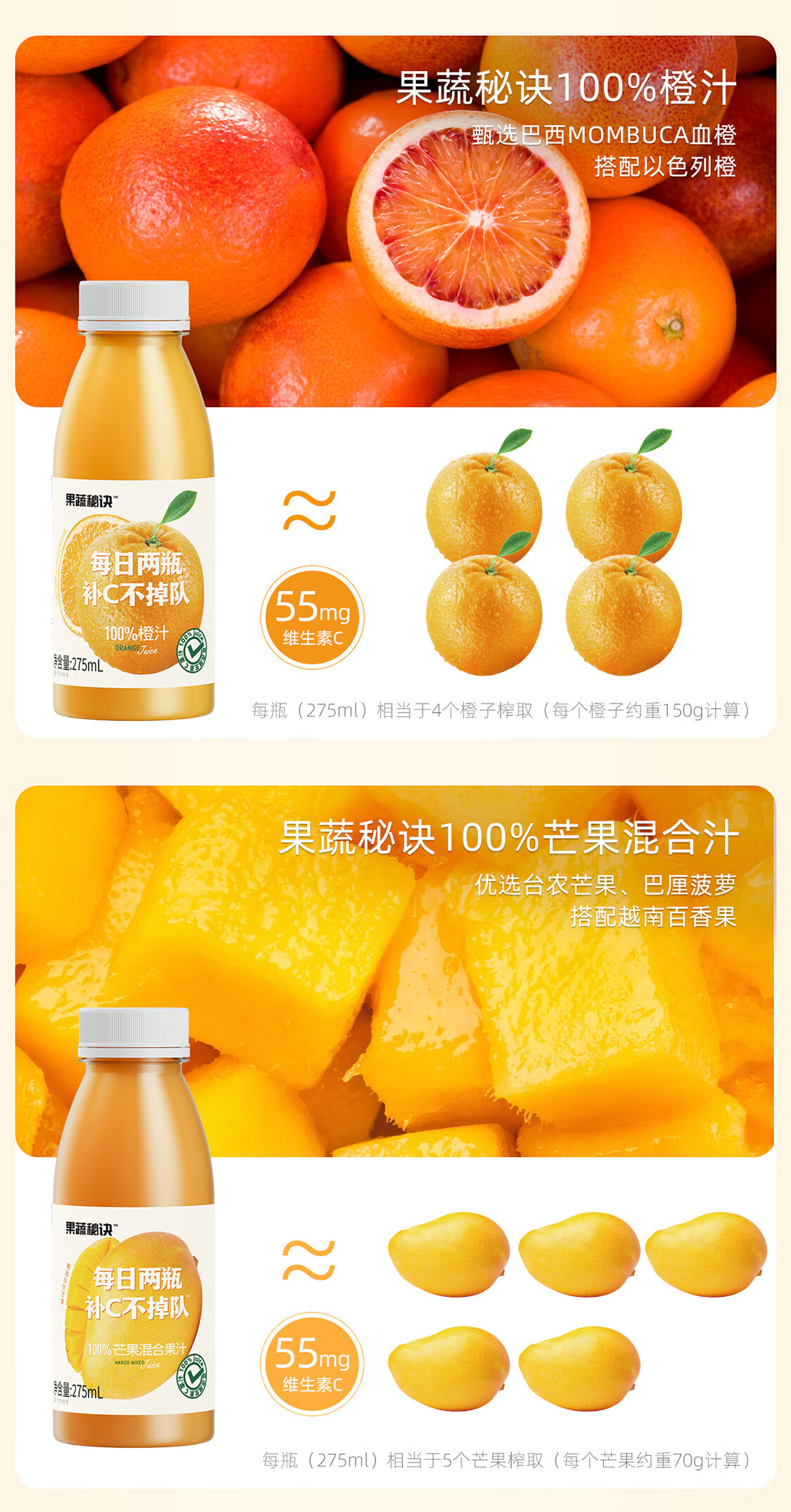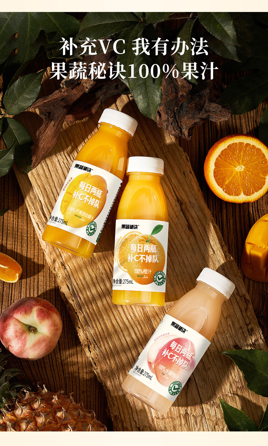 乐源菓蔬秘诀100%芒果混合果汁275ml*8瓶整箱