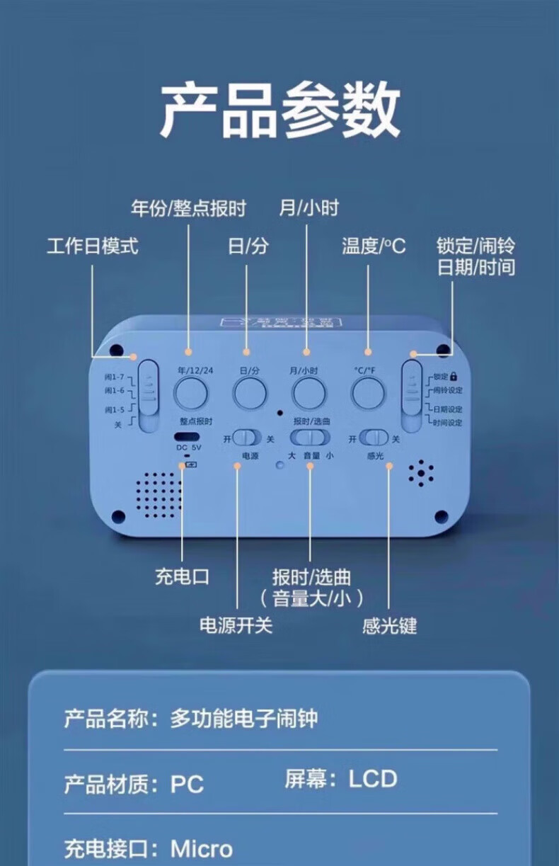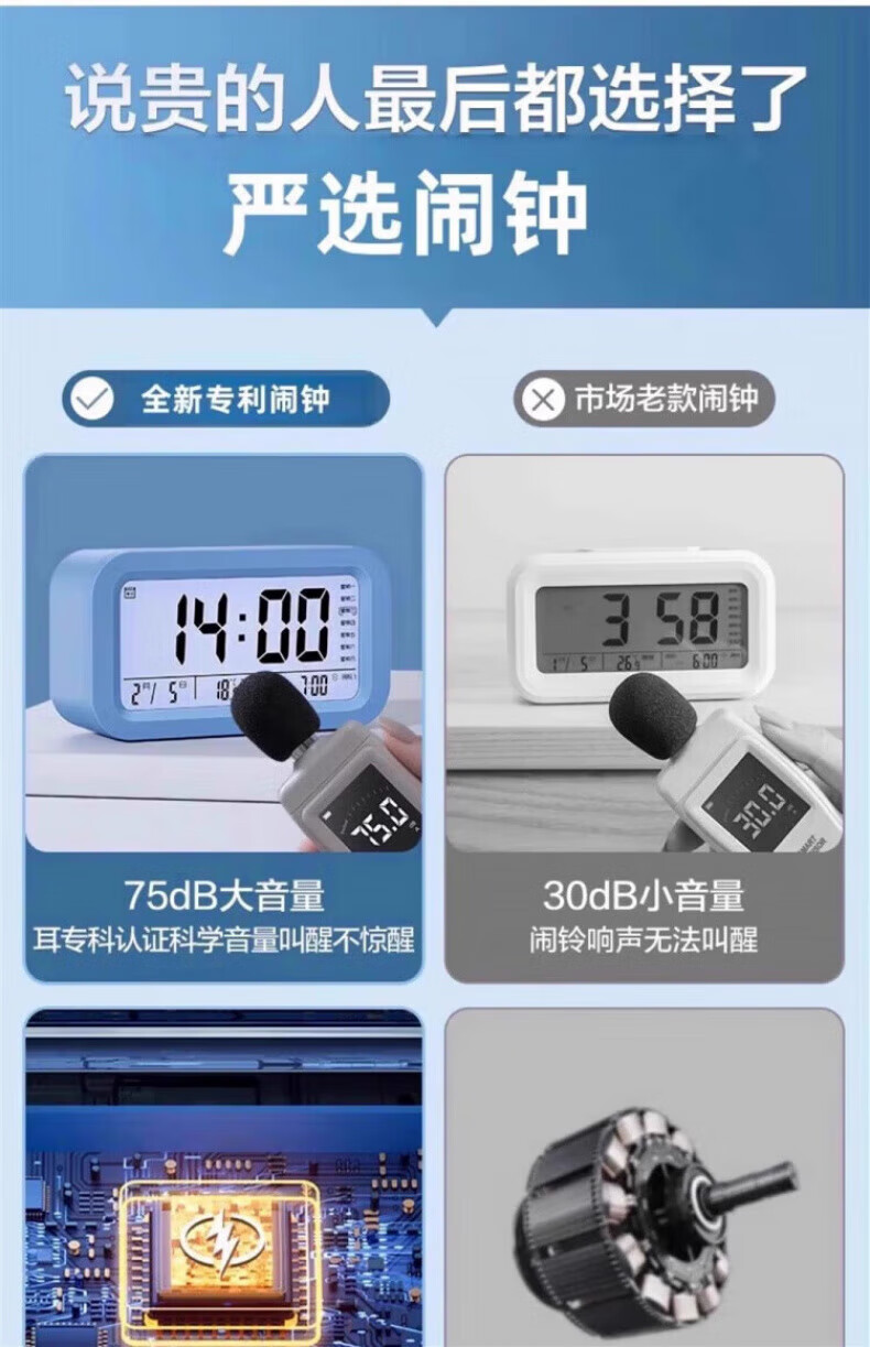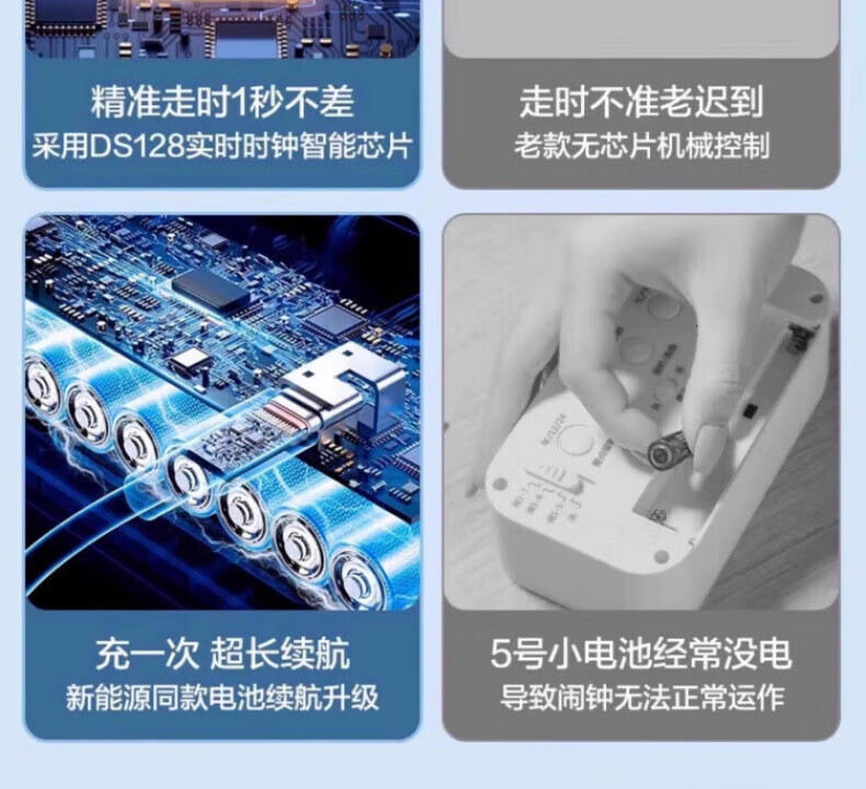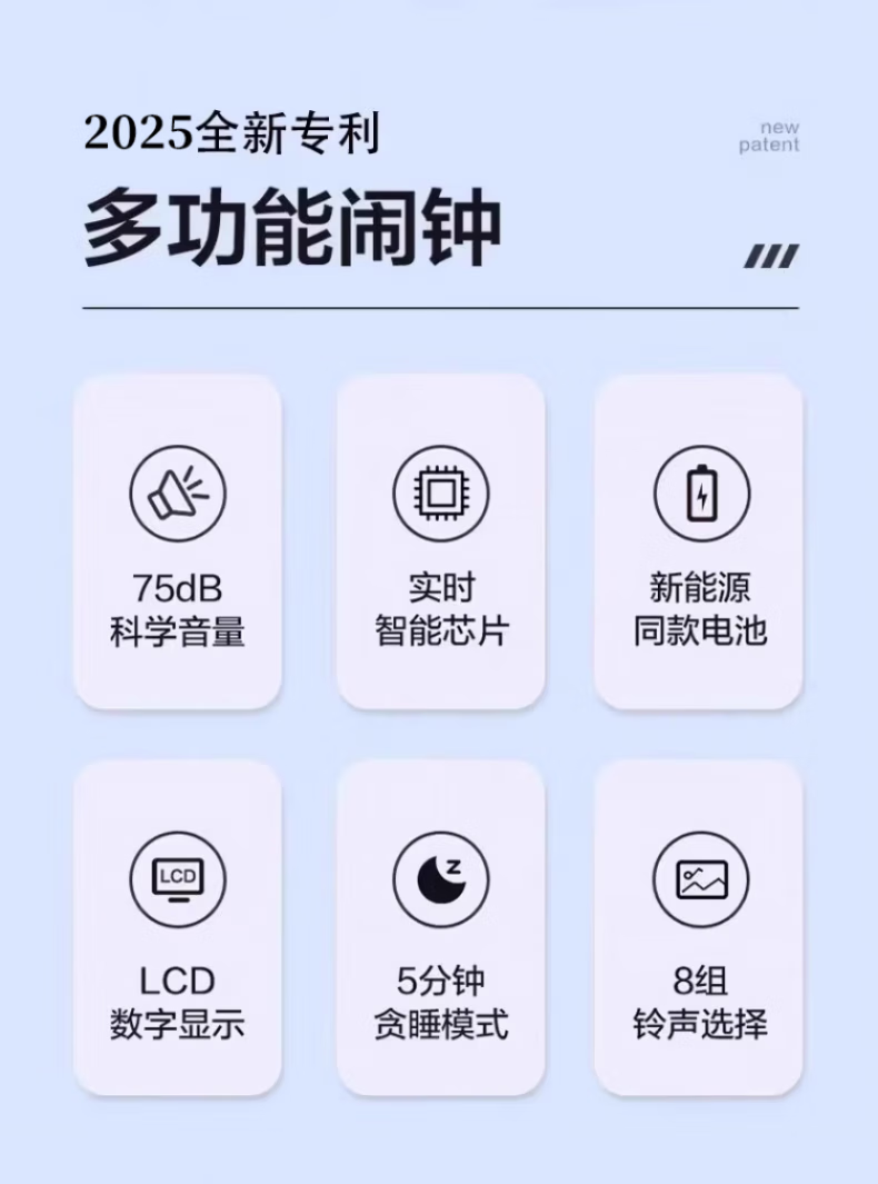 DEATKN德国智能闹钟学生专用起床神器2025新款强力叫醒超大声 华为白电池款-基础款赠送电池