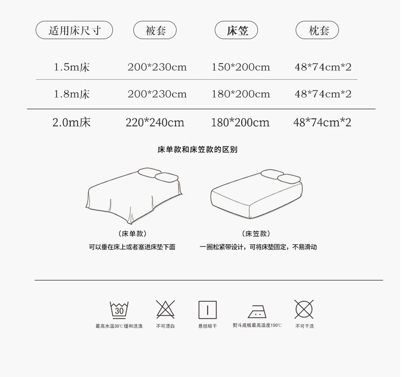 DEATKN德国A类夹棉床笠加厚床垫保护罩全棉防滑防滑床套全包新款 艾格-星灰 适合3-30cm床垫 120cm*190cm