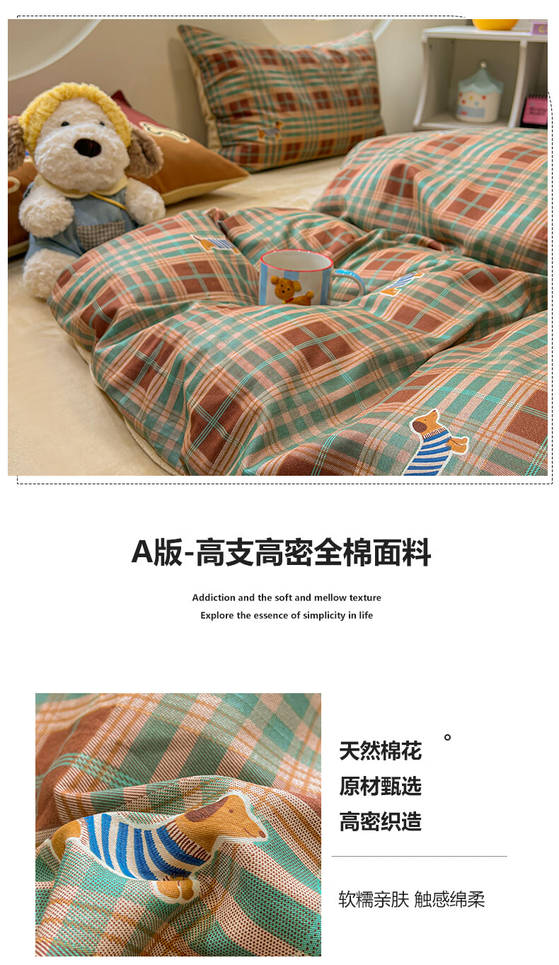 猫人纯棉床上四件套小清新全棉2025新款被套罩床单三件套宿舍床品 皮皮狗【100%新疆纯棉亲肤柔软】 床笠款 1.8m床【四件套】适200*230cm被芯
