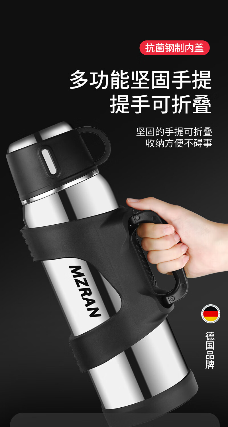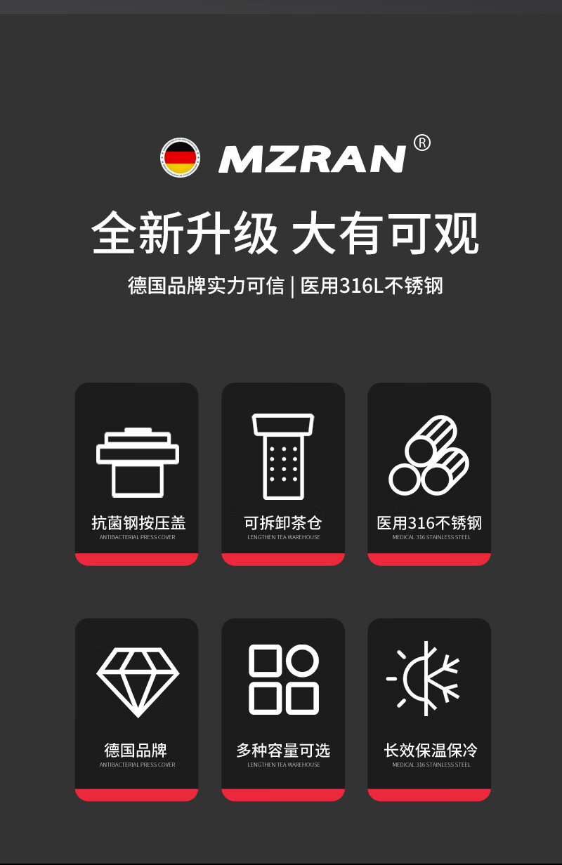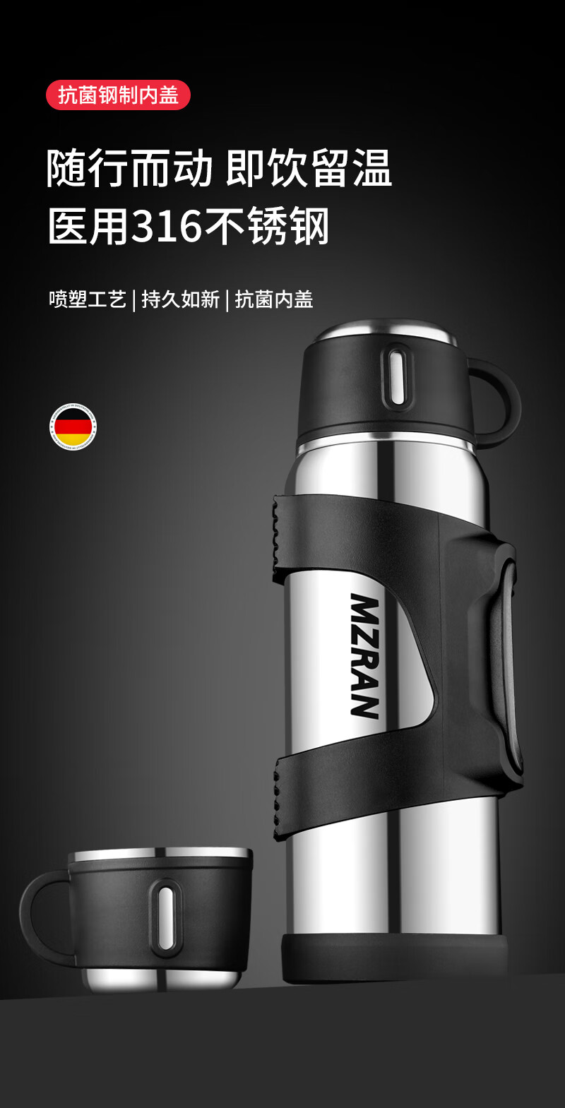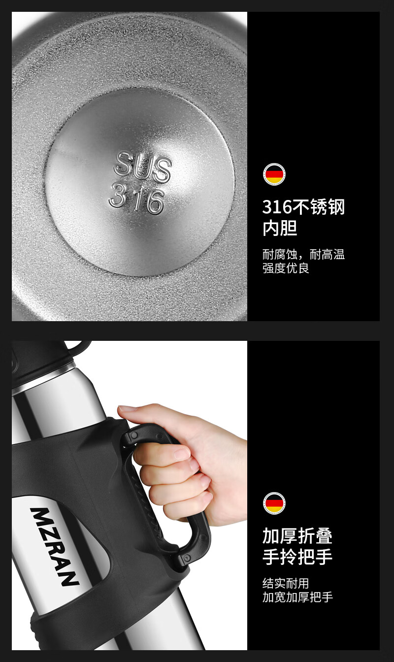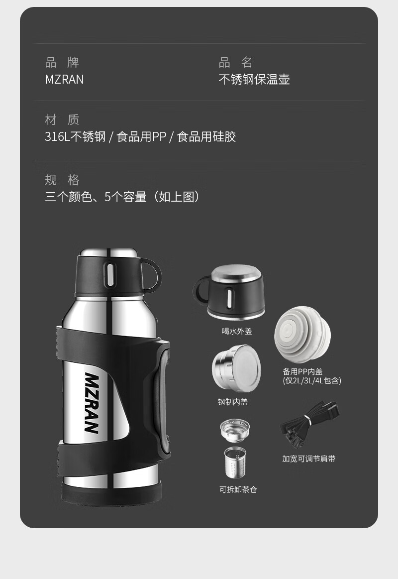 DEATKN德国316不锈钢保温壶户外大容量保温杯男可携式泡茶全钢保冷水壶 黑色【茶水分离】+按压内盖_(送抱婴袋 2L