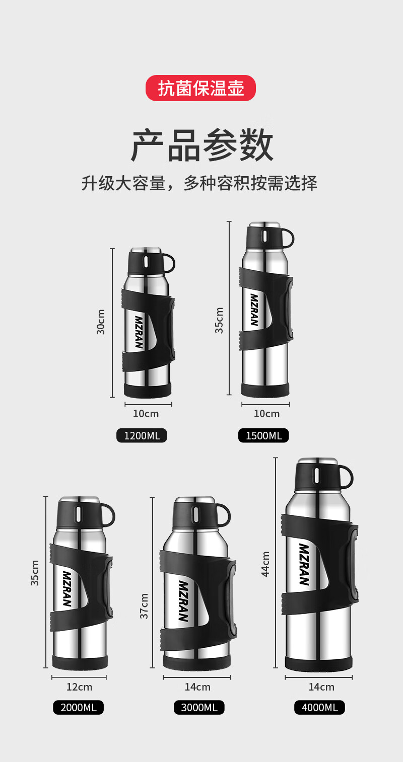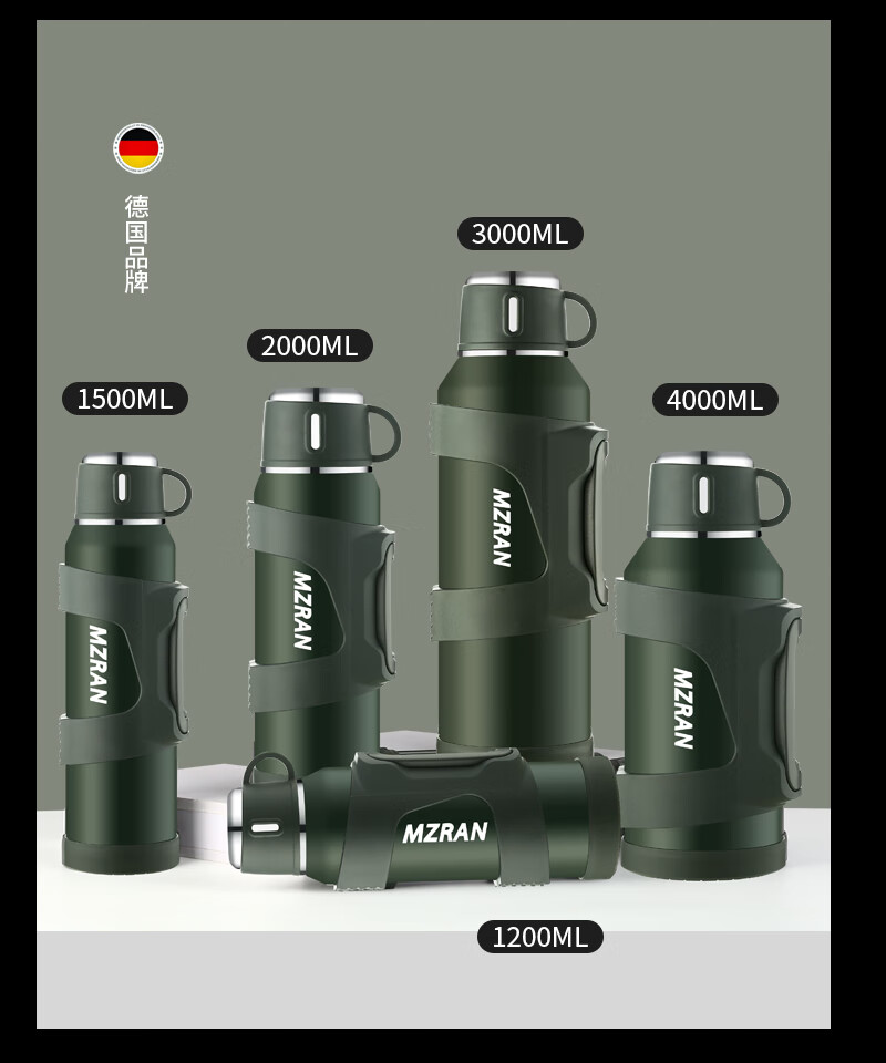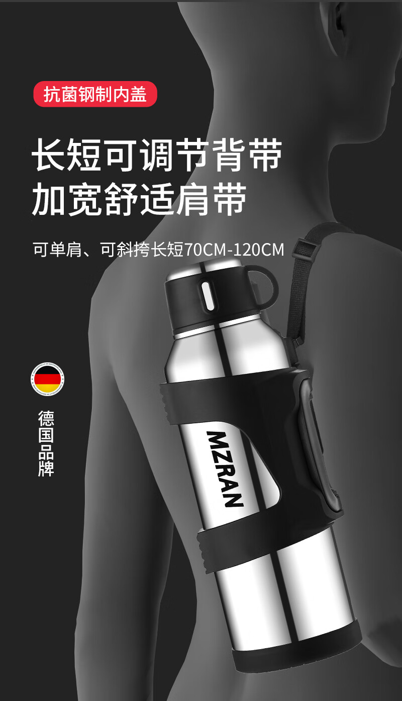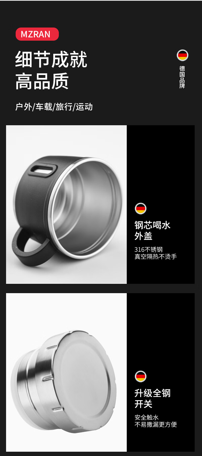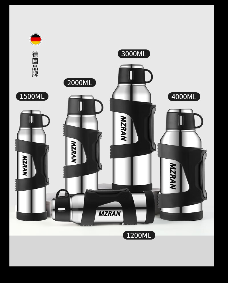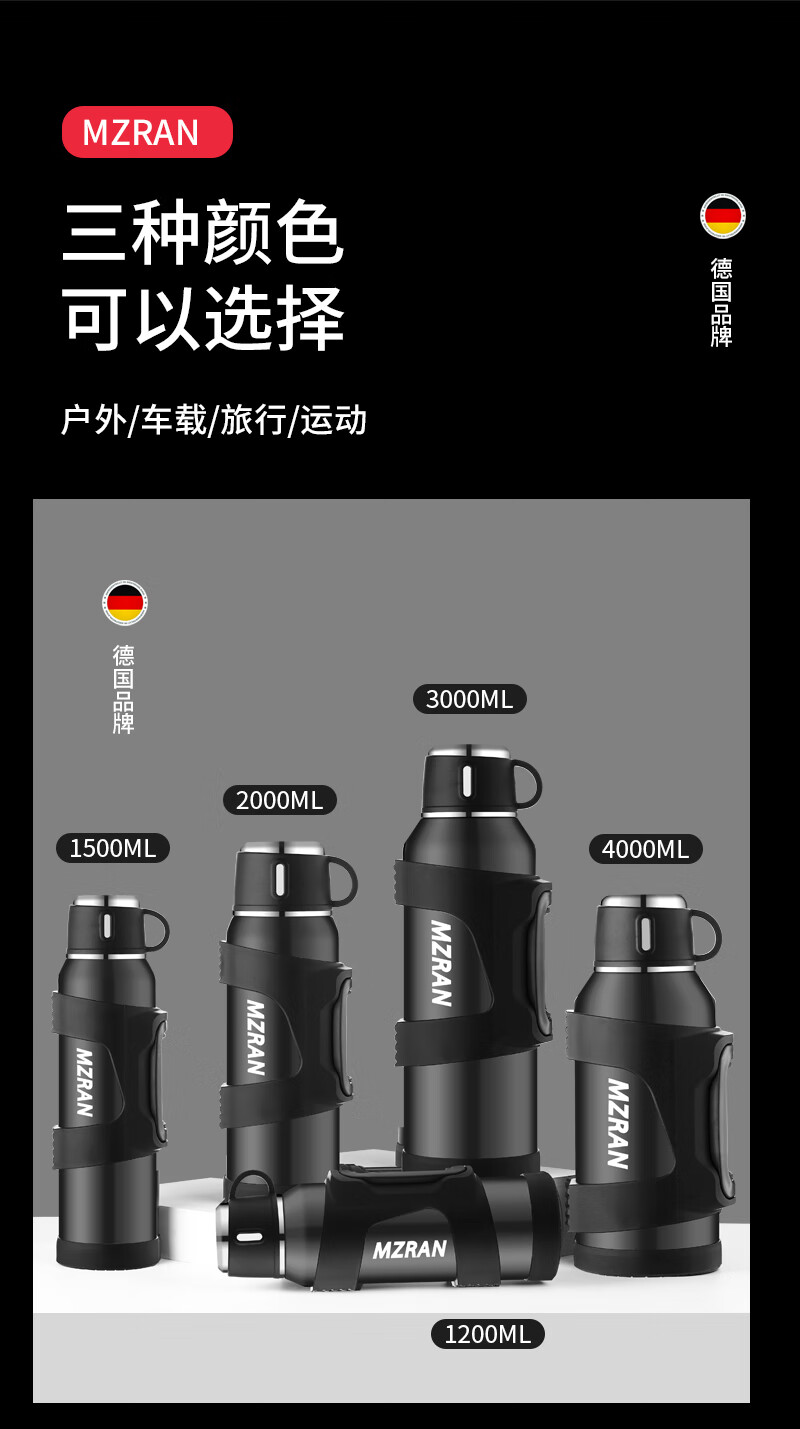 DEATKN德国316不锈钢保温壶户外大容量保温杯男可携式泡茶全钢保冷水壶 黑色【茶水分离】+按压内盖_(送抱婴袋 2L