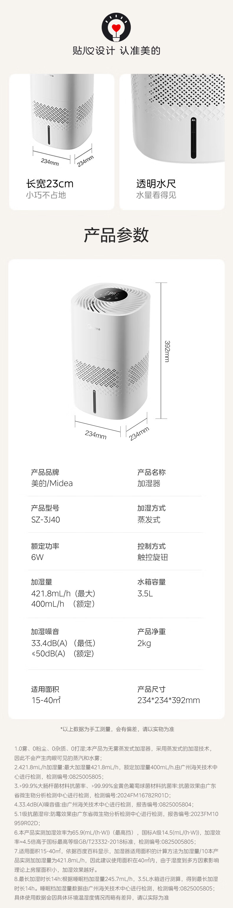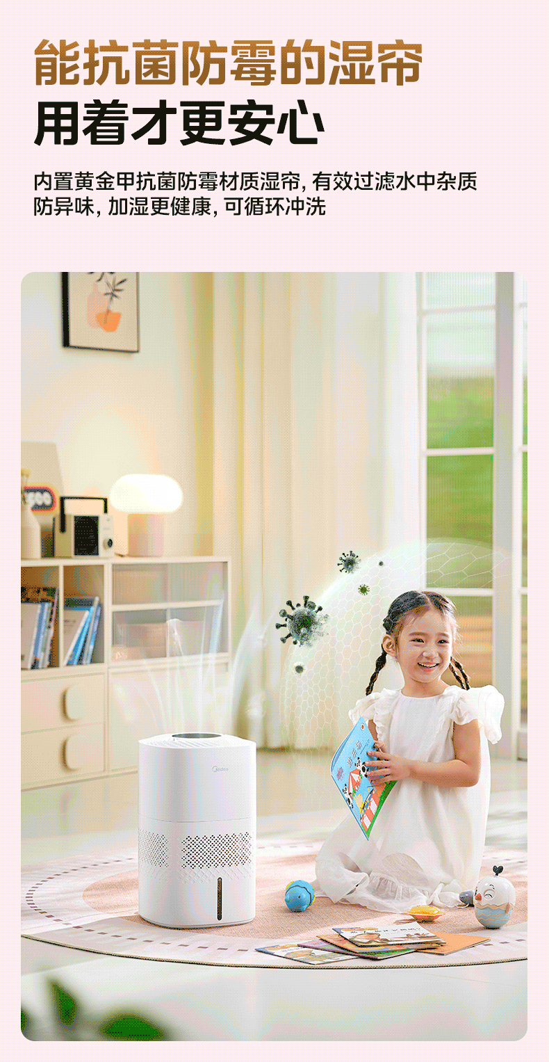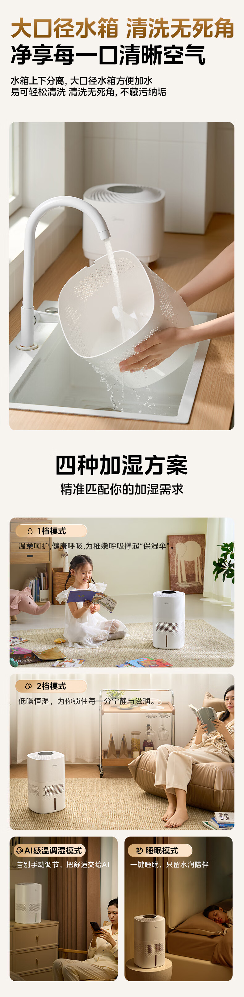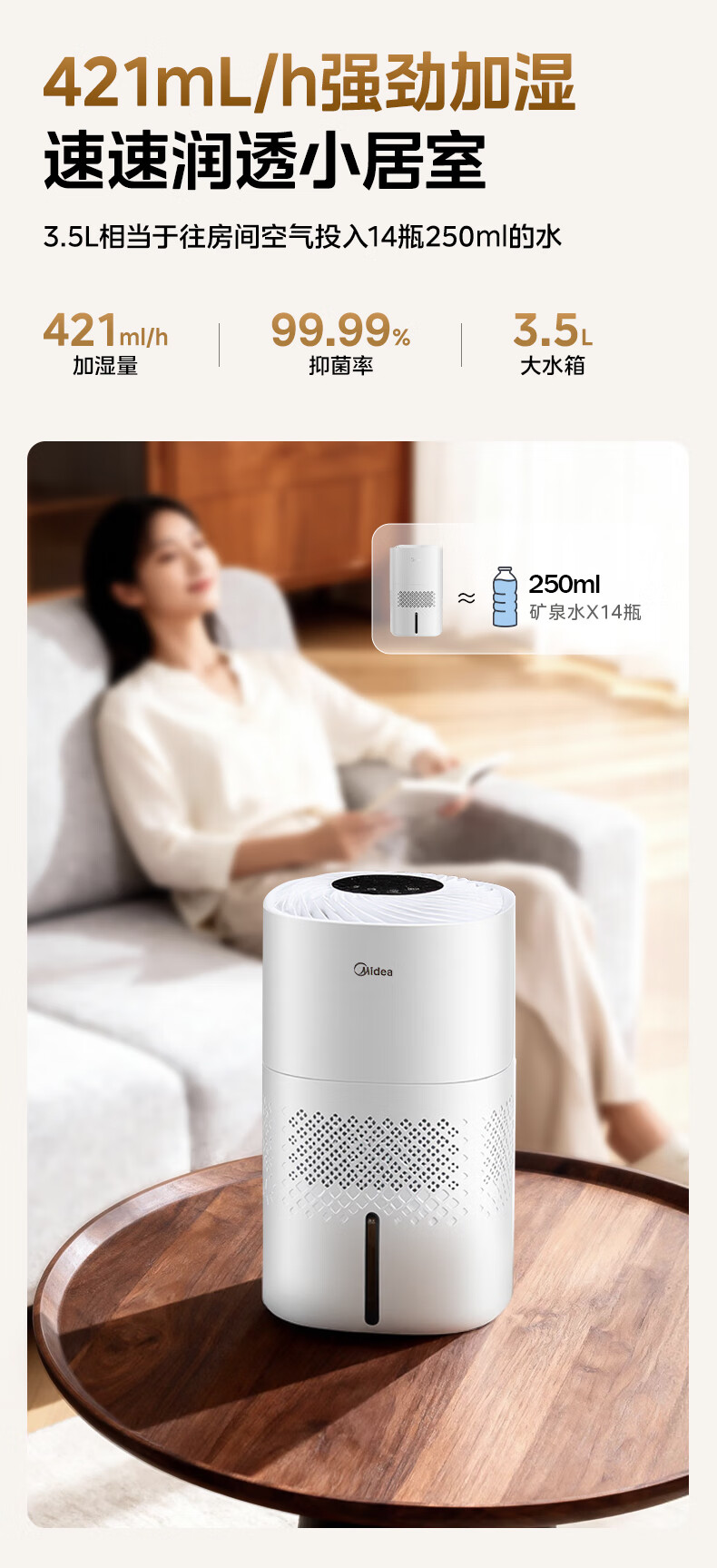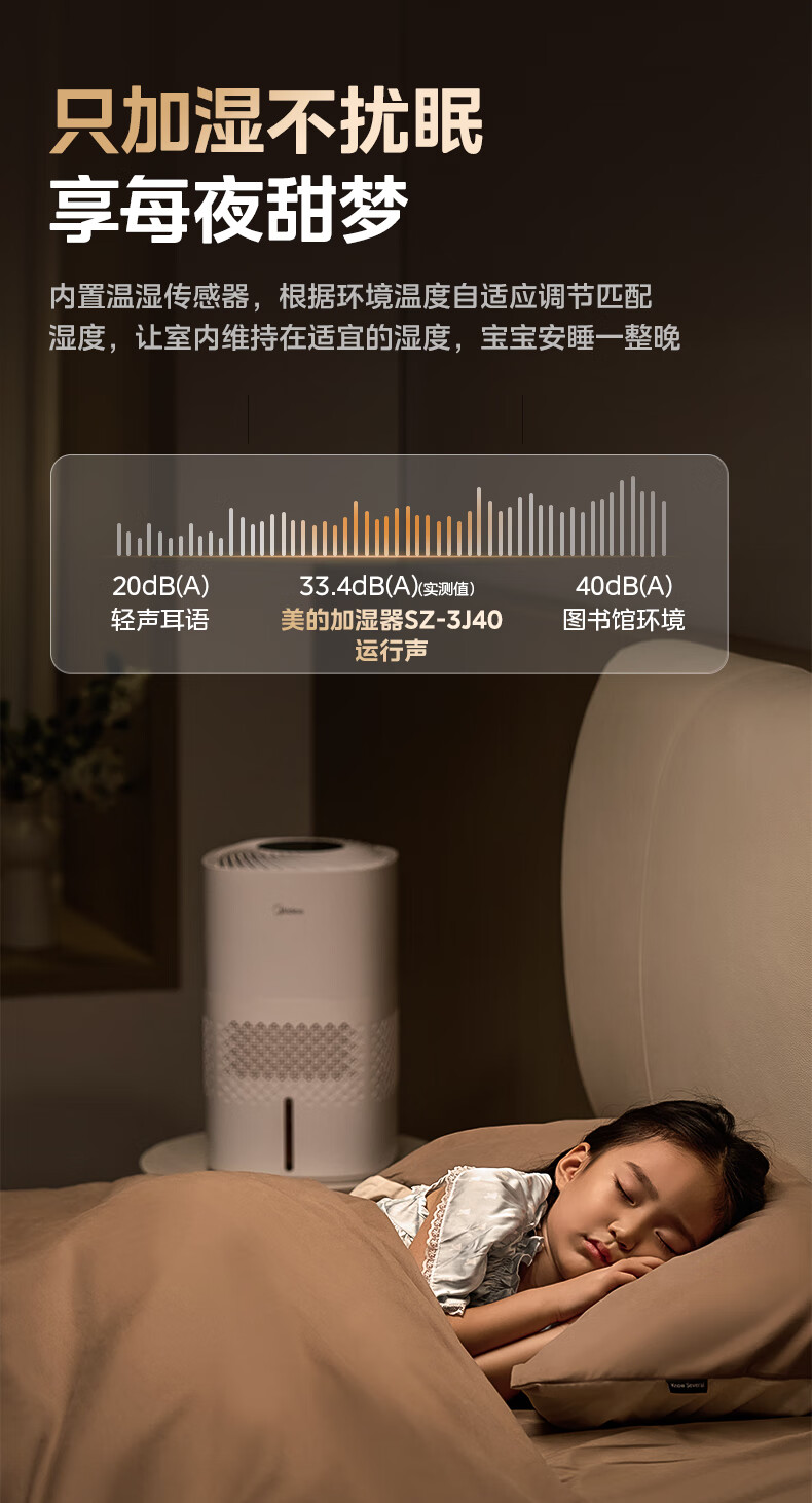美的(Midea)无雾空气加湿器落地式家用母婴幼儿家用卧室静音抗菌小型雾化器空调取暖补水国家补贴SZ-3J40