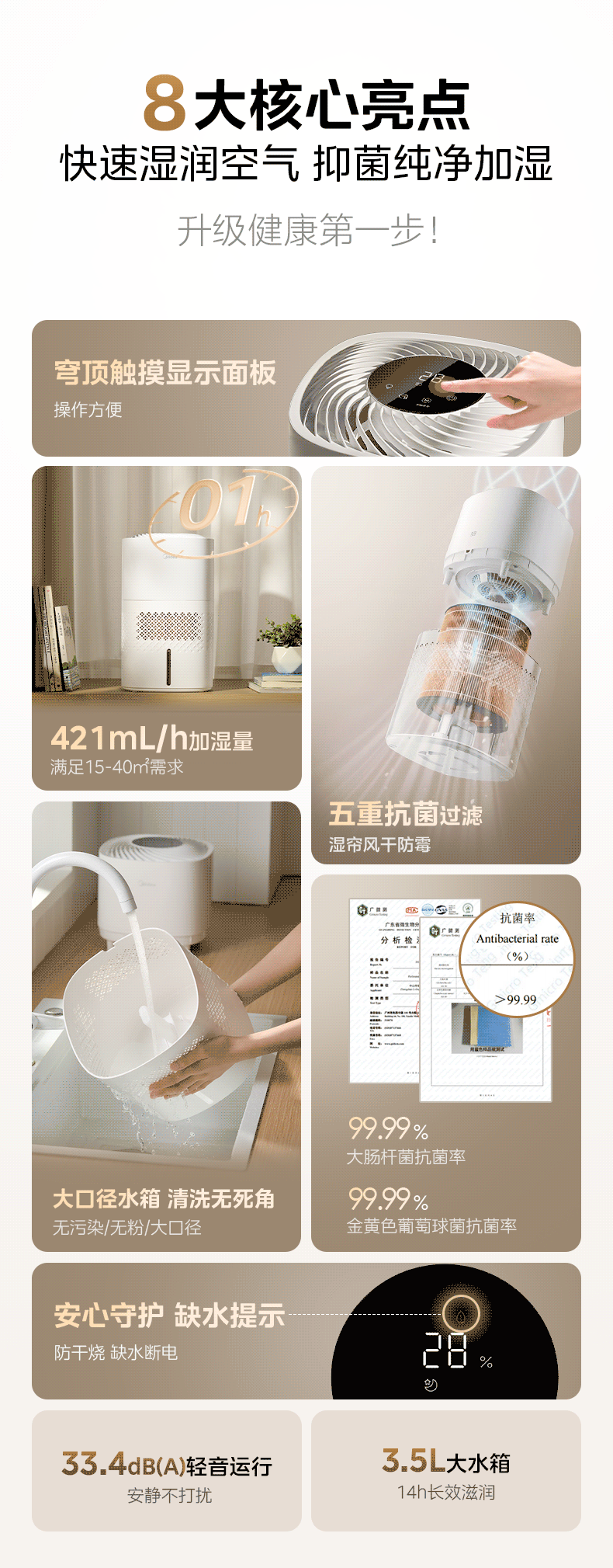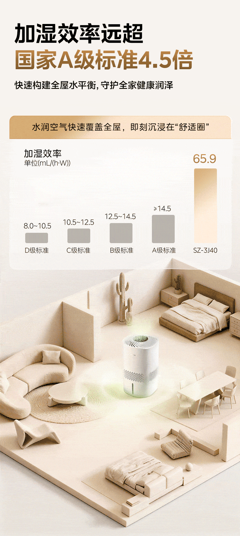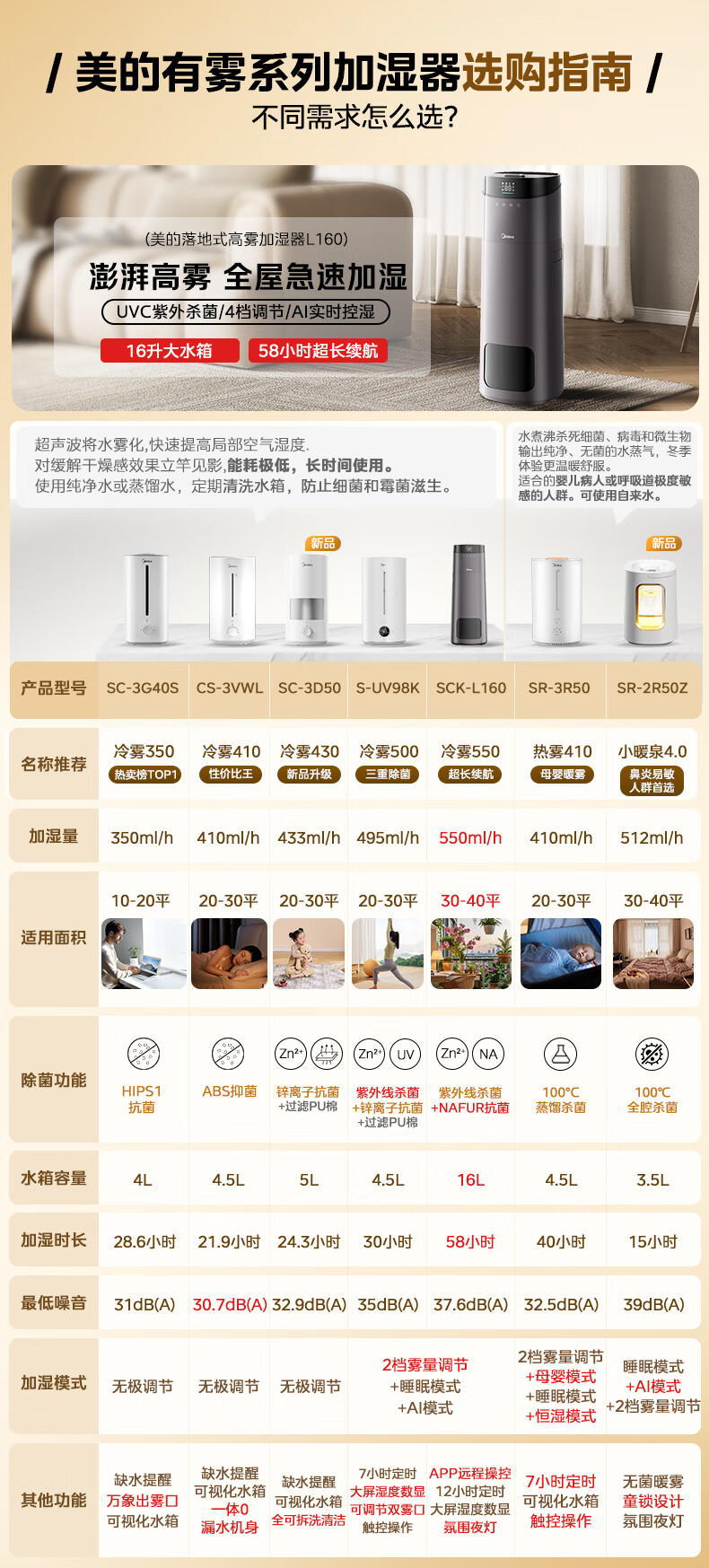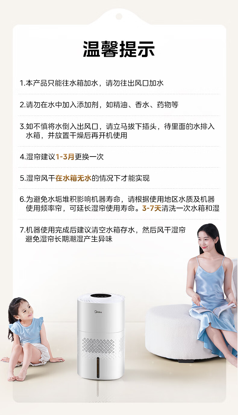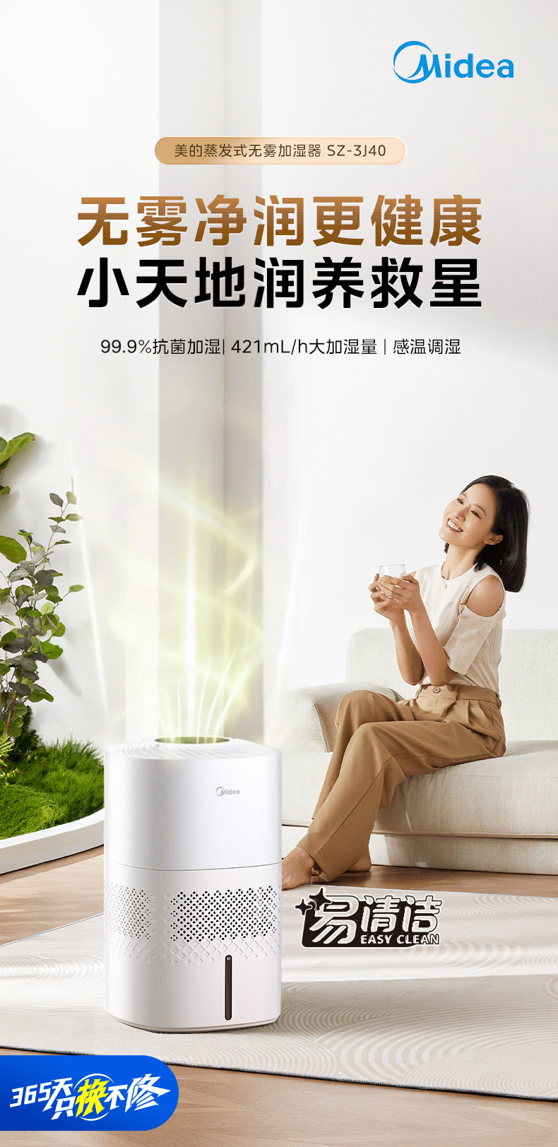 美的(Midea)无雾空气加湿器落地式家用母婴幼儿家用卧室静音抗菌小型雾化器空调取暖补水国家补贴SZ-3J40