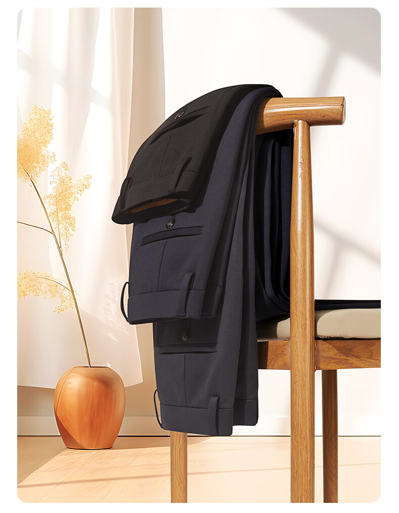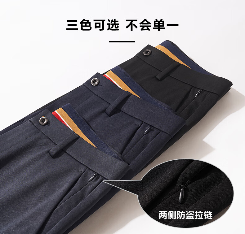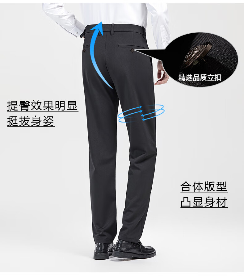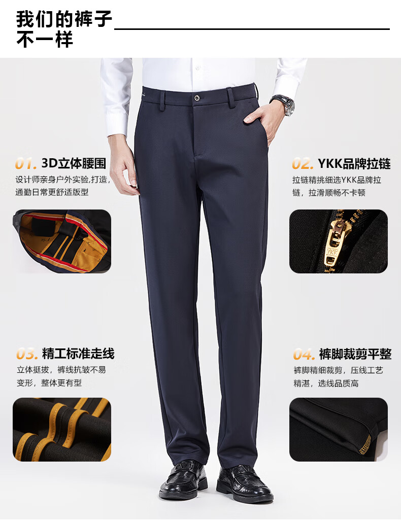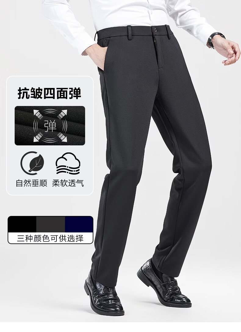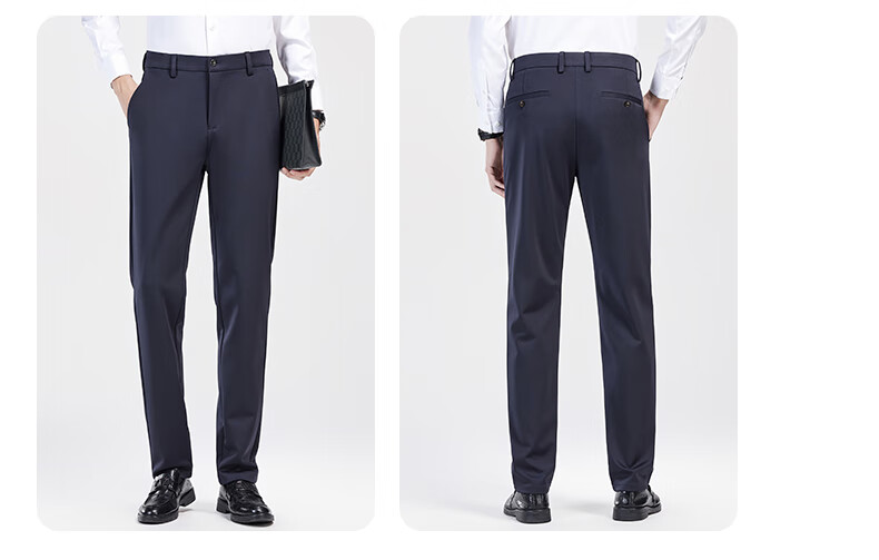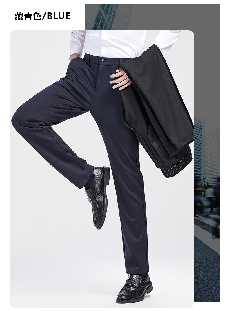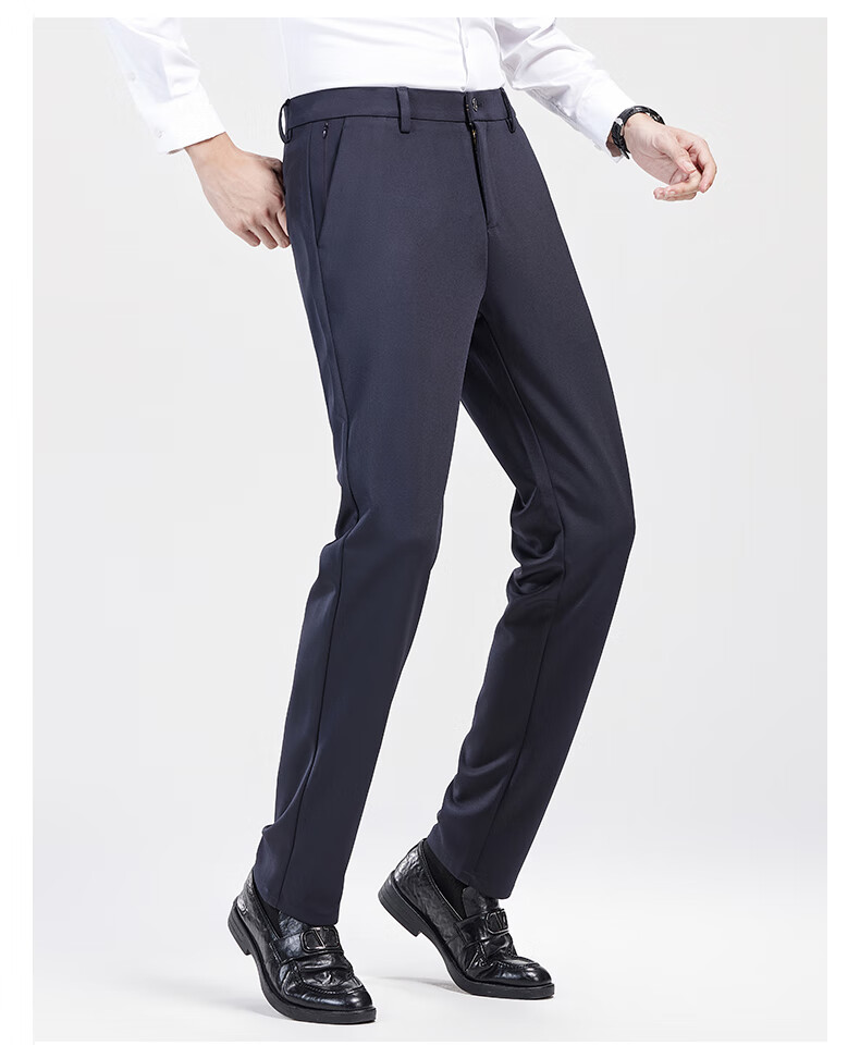罗蒙【耐穿弹力】休闲裤男冬轻奢正装商务西裤商务直筒长裤藏青色32