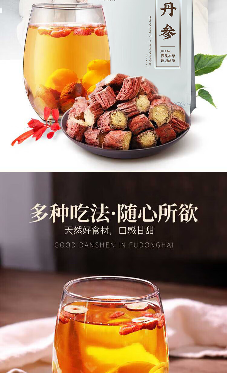 北京同仁堂秦岭野生特级紫丹参片丹参粉天然无添加泡水泡茶喝中药材官方旗舰 秦岭野生紫丹参片[高含酮量] 精选野生丹参片500克罐装【店家推荐】
