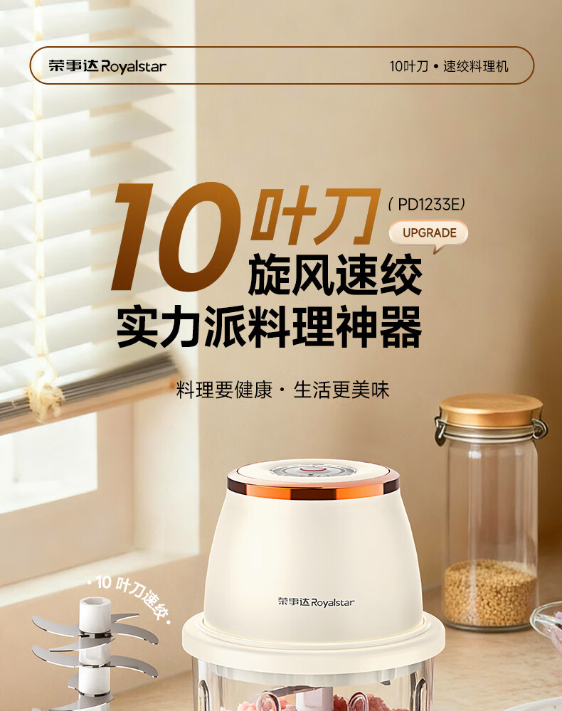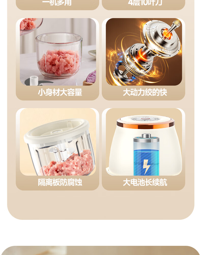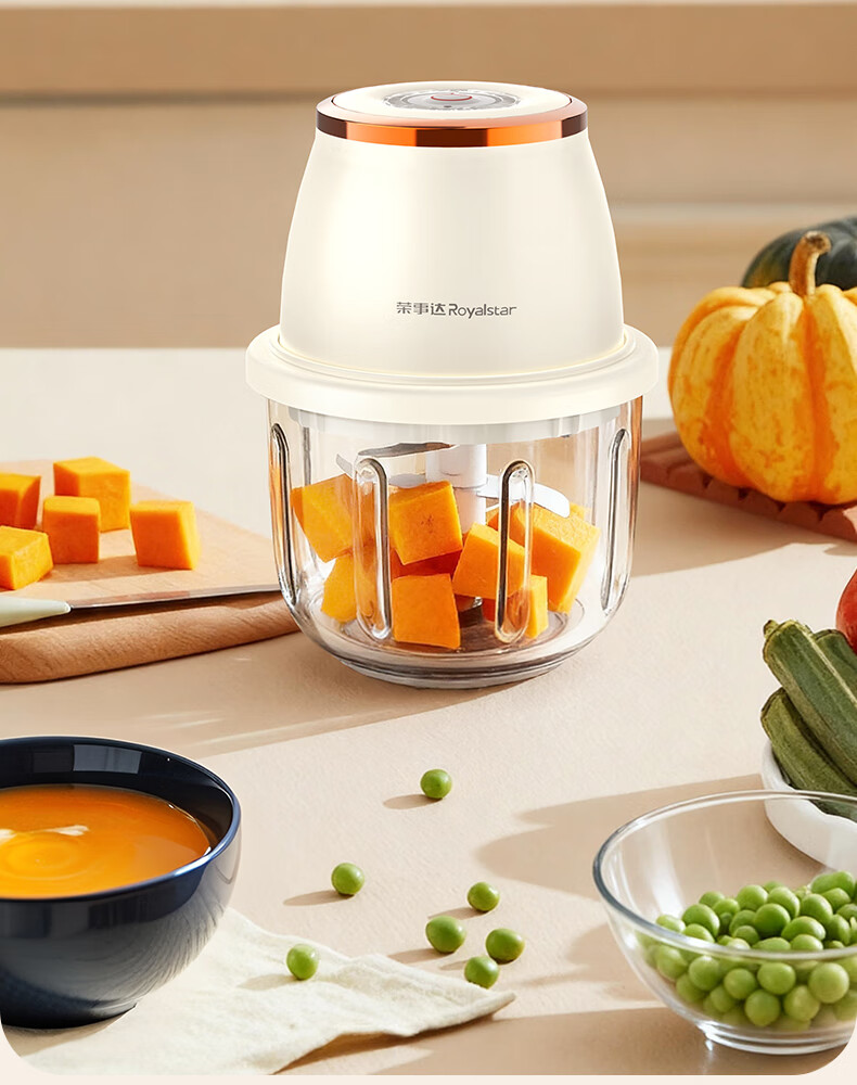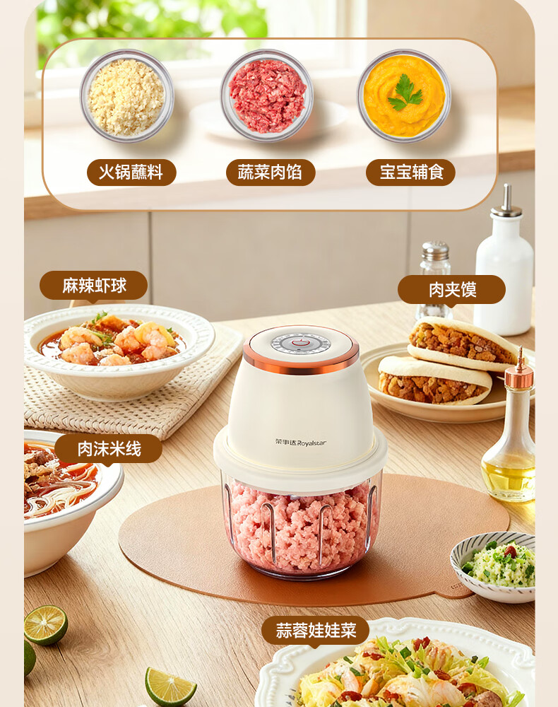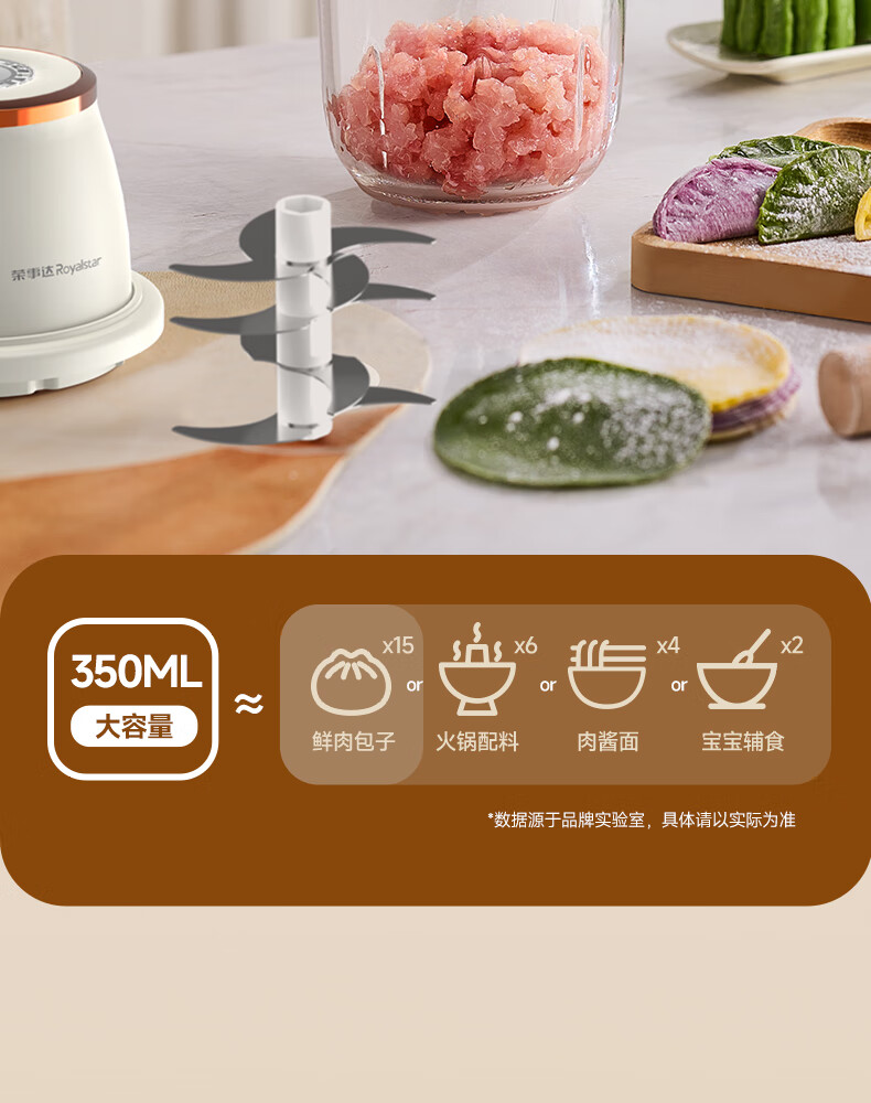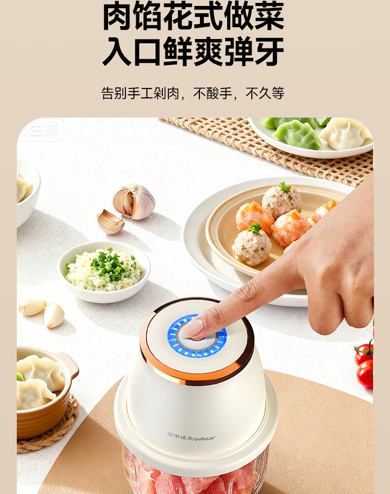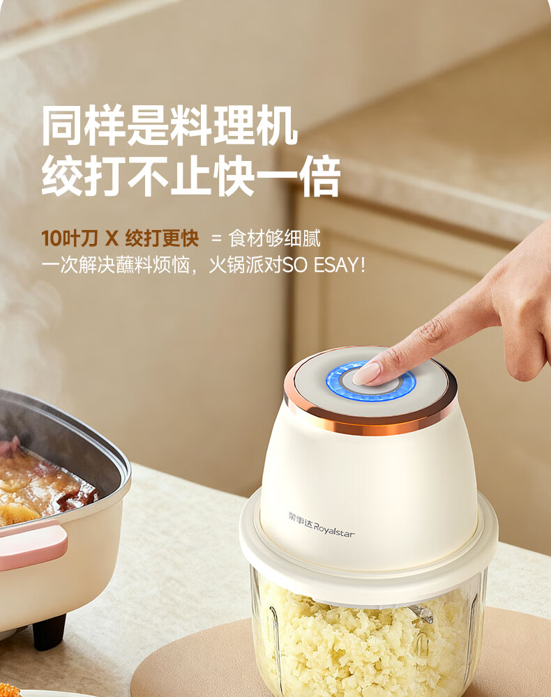 荣事达绞肉机电动蒜蓉搅碎器蒜泥神器绞馅捣蒜多功能料理机家用打蒜器 【迅猛全能绞】350ML玻璃杯+十叶刀