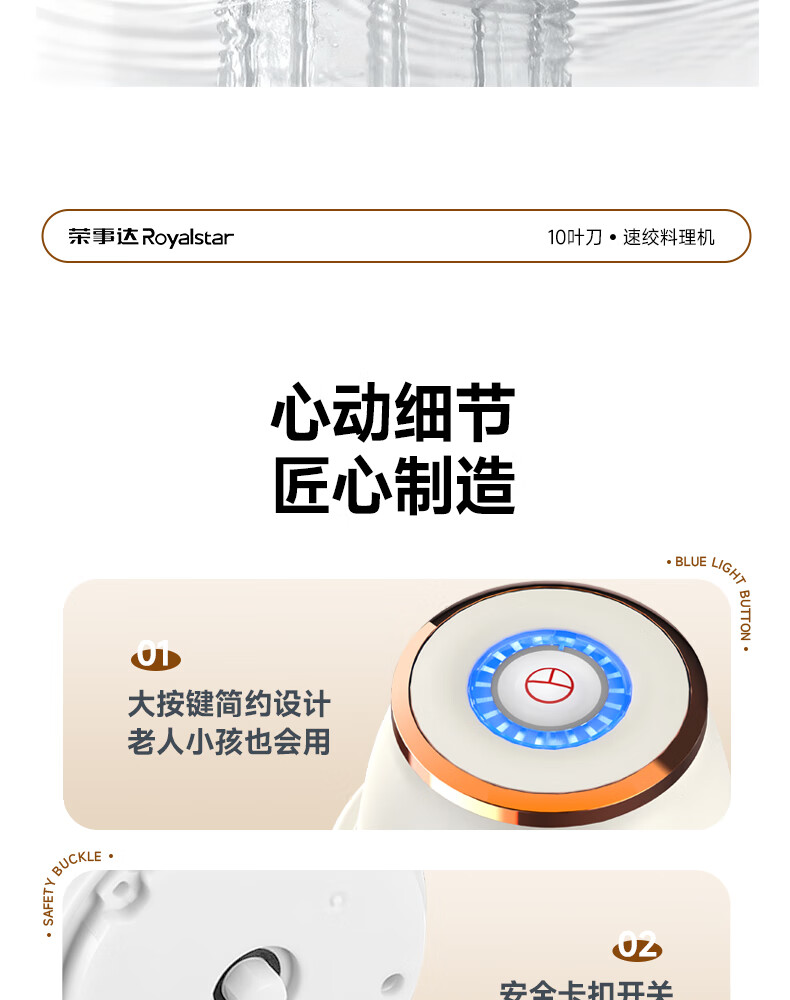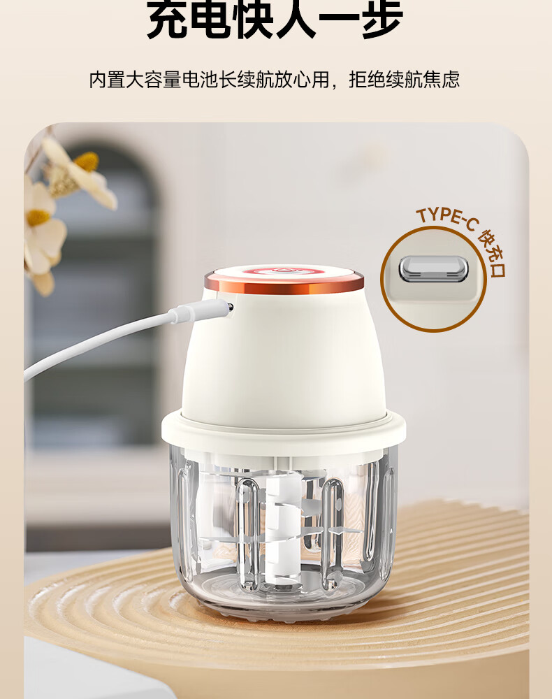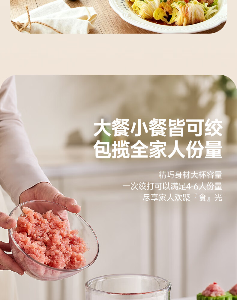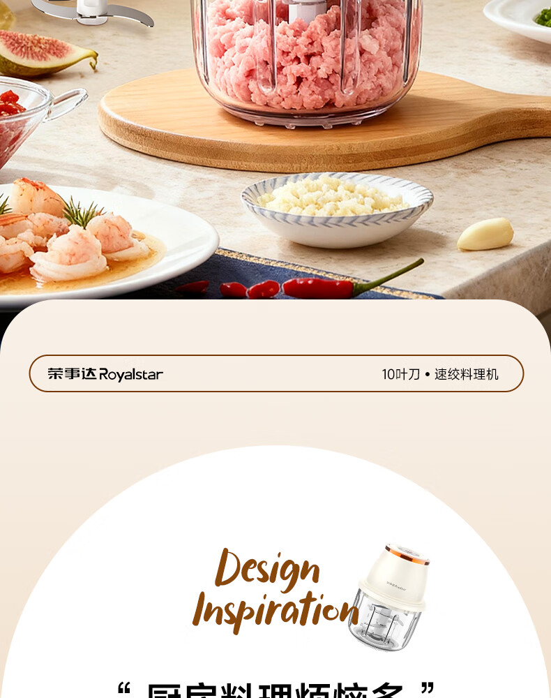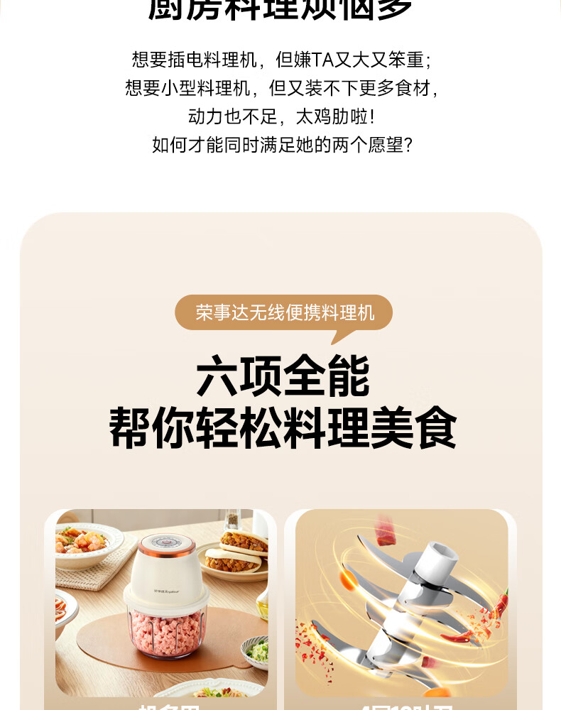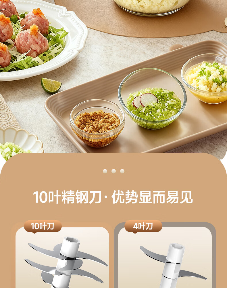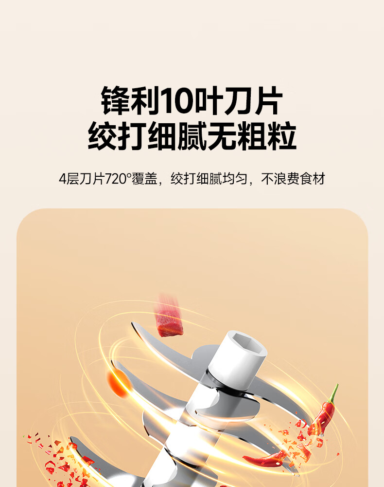 荣事达绞肉机电动蒜蓉搅碎器蒜泥神器绞馅捣蒜多功能料理机家用打蒜器 【迅猛全能绞】350ML玻璃杯+十叶刀