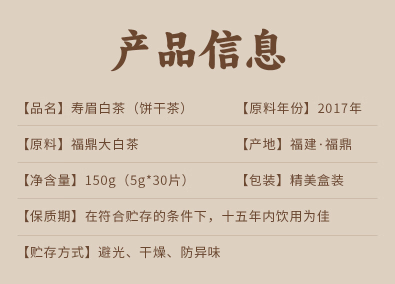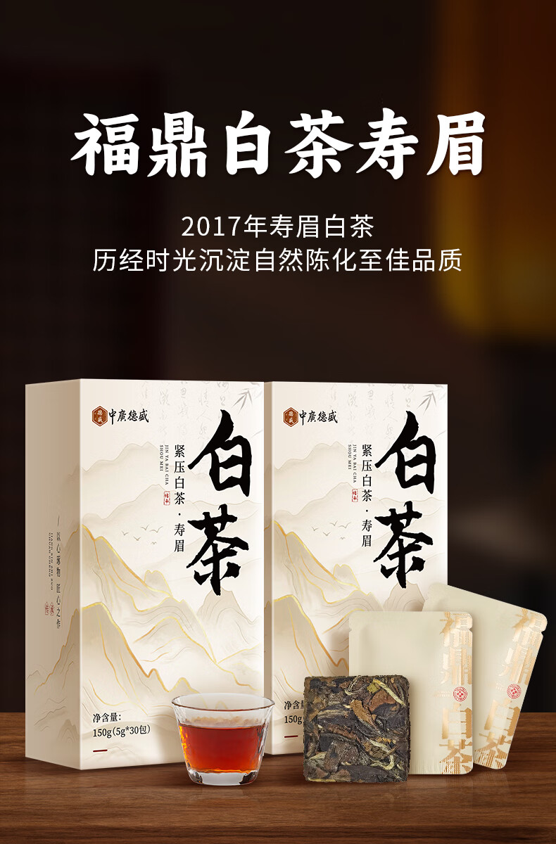 中广德盛福鼎白茶寿眉便携装紧压茶2017年原料茶叶老白茶 福鼎白茶 150g*4盒
