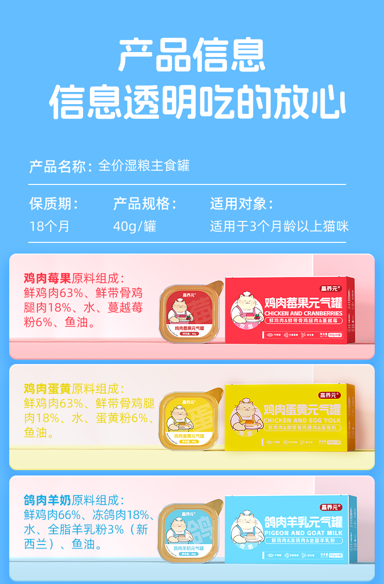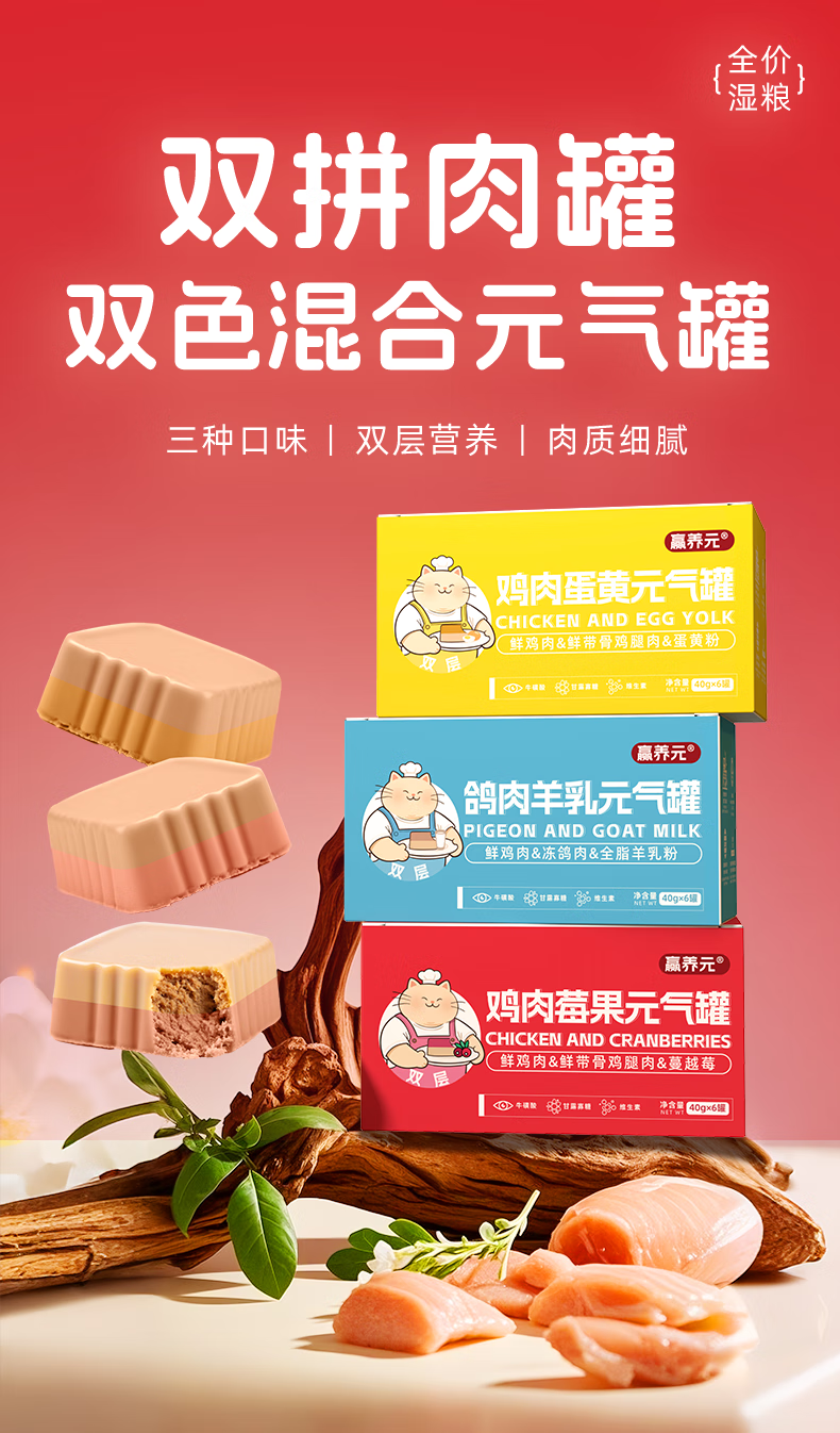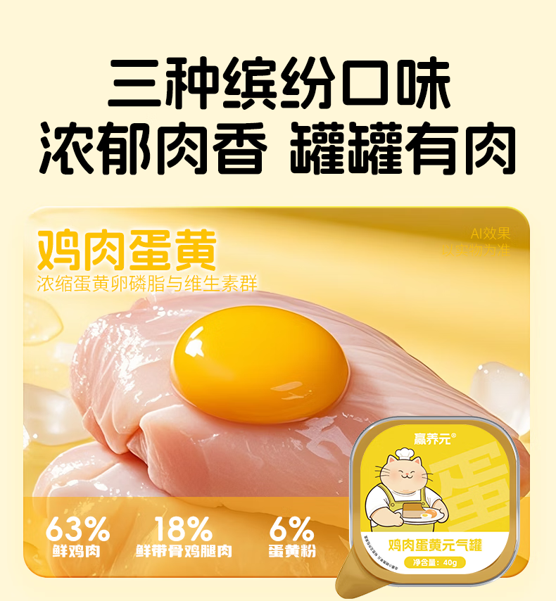 赢养元猫罐头猫咪湿粮营养主食罐头 鲜鸡肉+蛋黄双层罐 40g*6罐