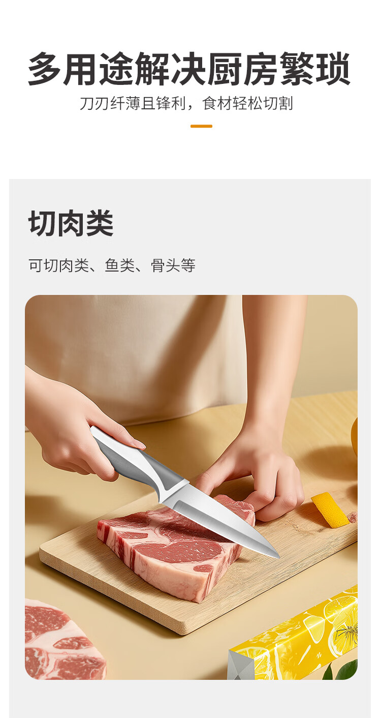 力王家用便携不锈钢水果刀塑料柄瓜果刀削皮刀多用刀带刀套