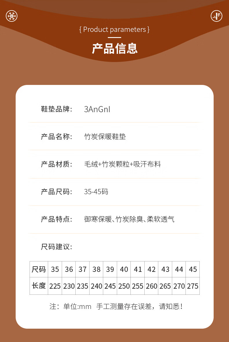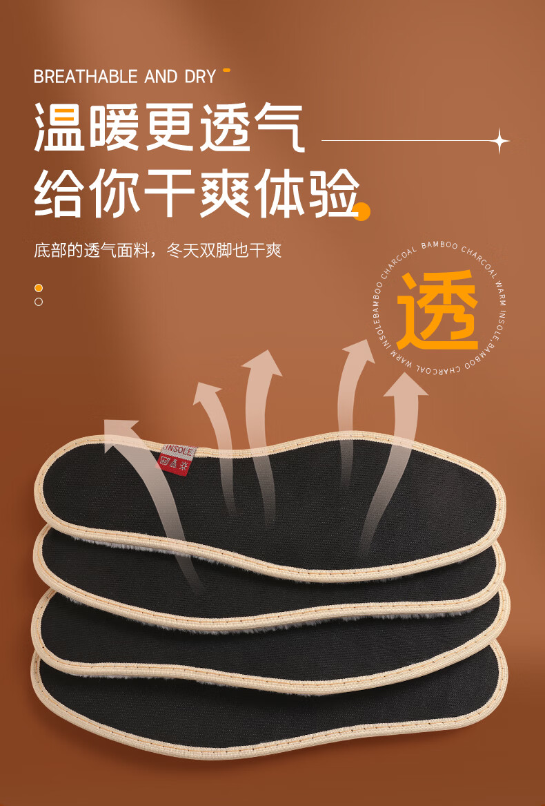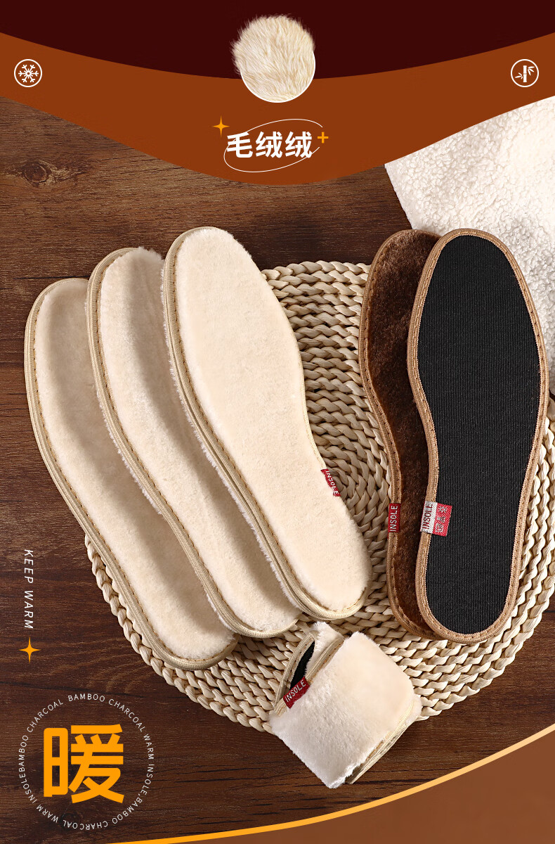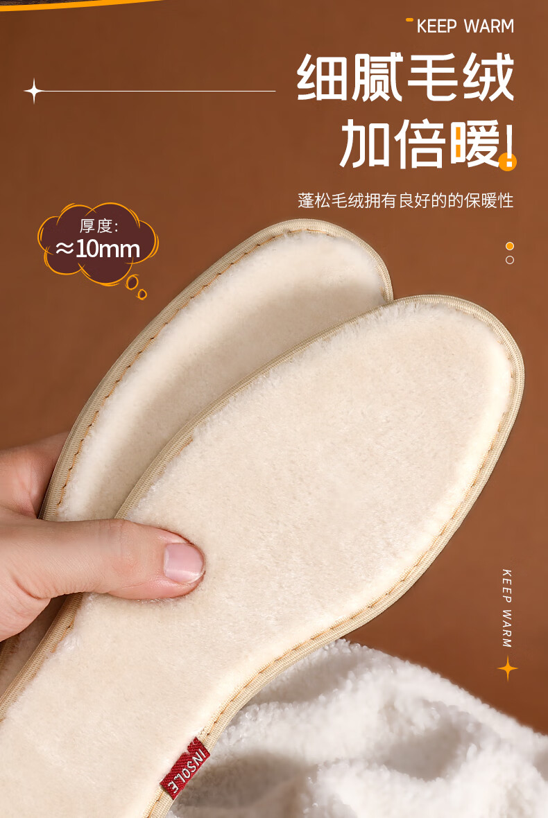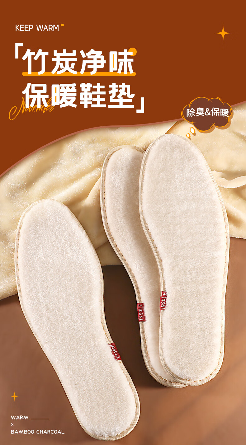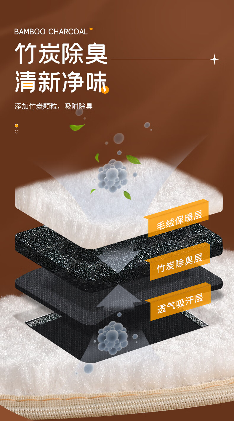 邦尼世家3双装竹炭保暖鞋垫男防臭透气吸汗加厚加绒舒适棉鞋垫女冬季 【3双】毛绒基础款 灰色 42码