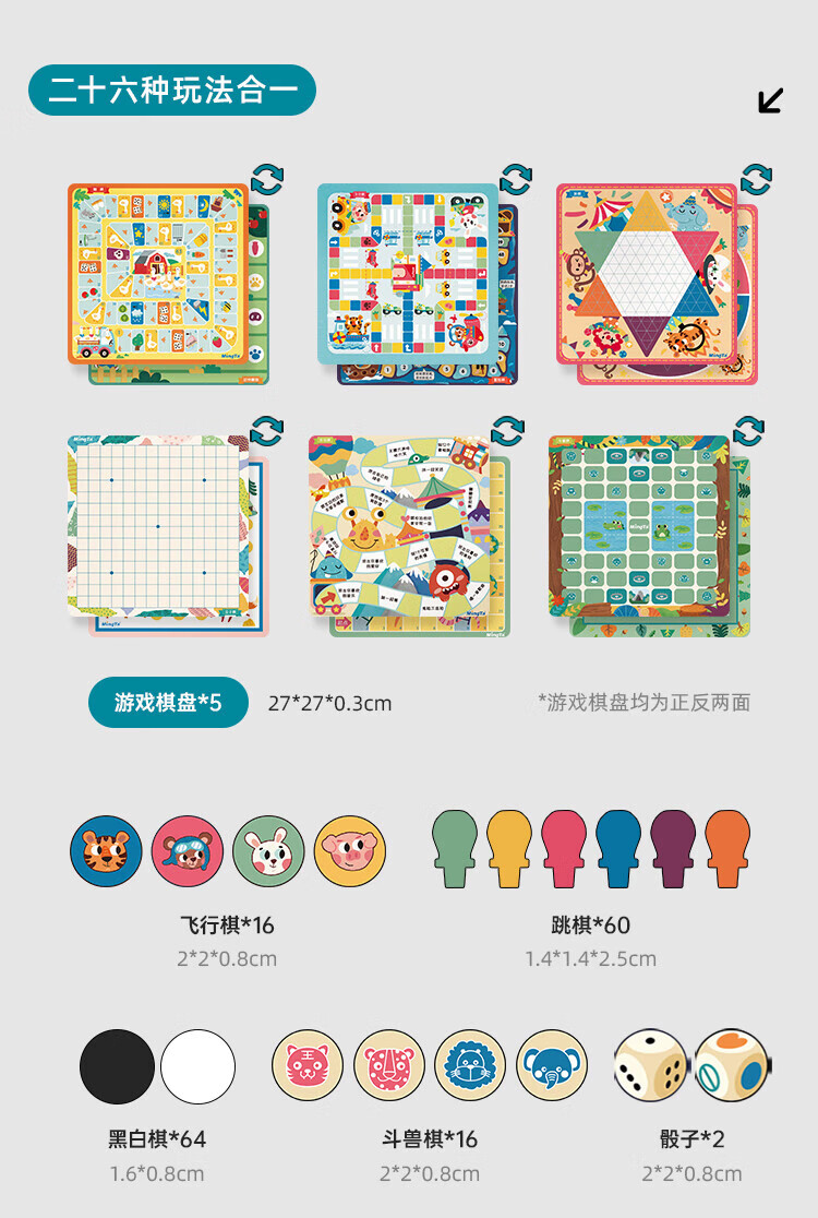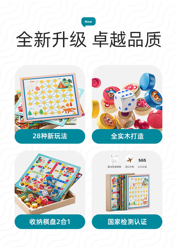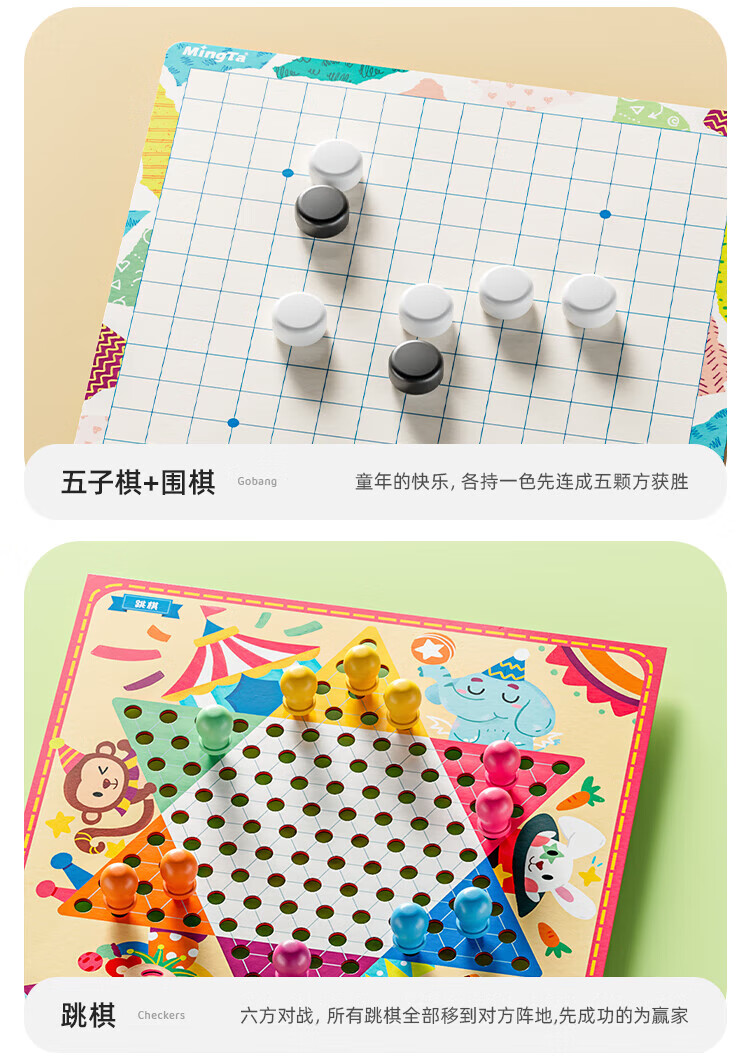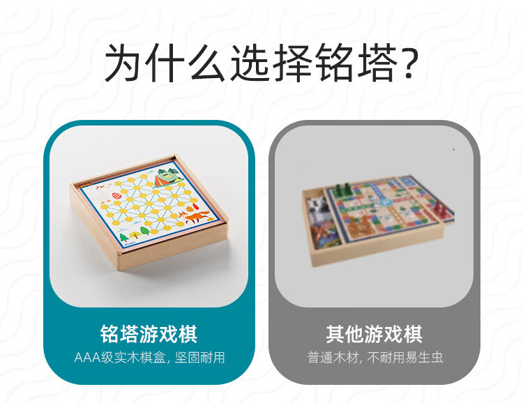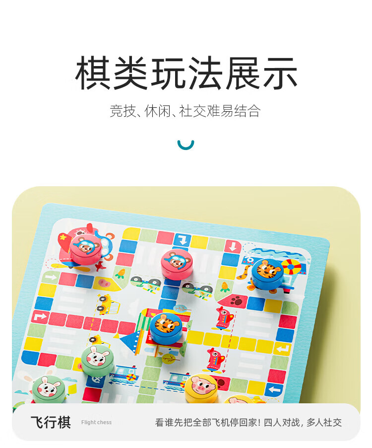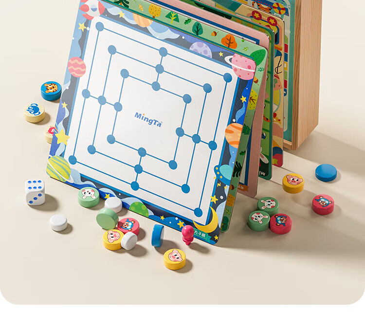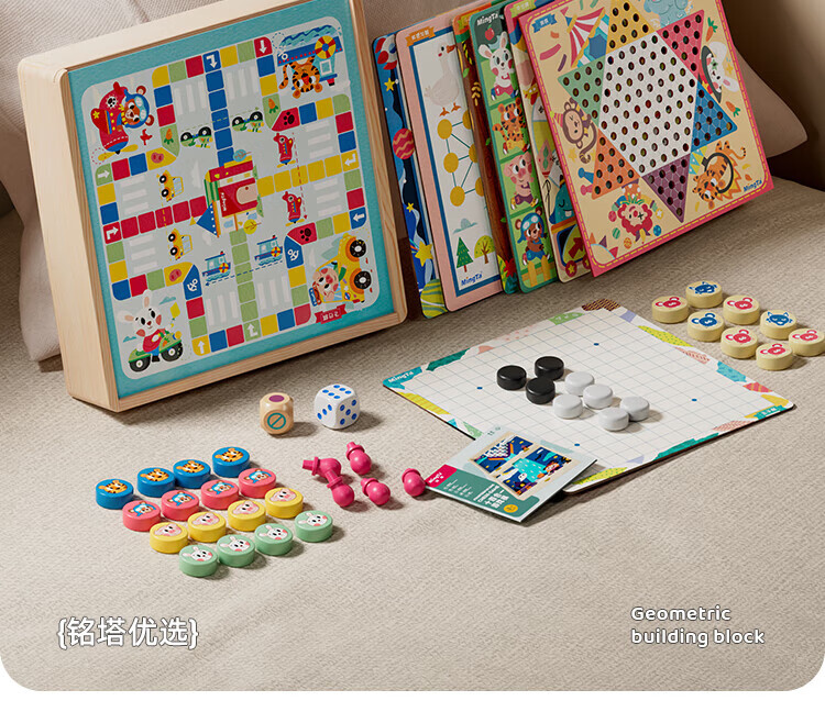 铭塔游戏棋大全多合一亲子玩具男孩女孩飞行棋五子棋 全木精装12种玩法