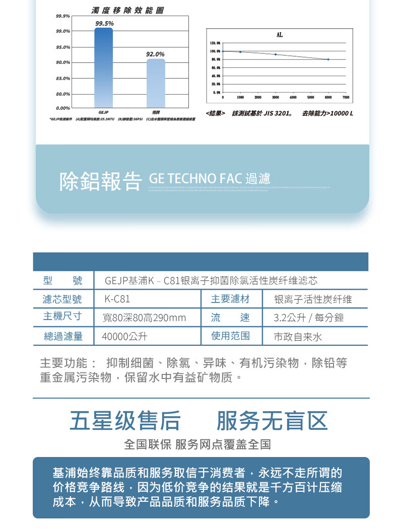 基浦(GEJP)基浦K-C81厨下直饮净水器 gejp银离子抑菌除氯活性炭纤维生饮家用主滤芯厨房多功能新款 净水器主滤芯K-C81