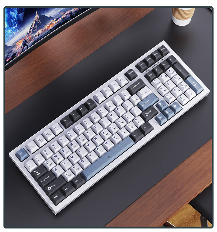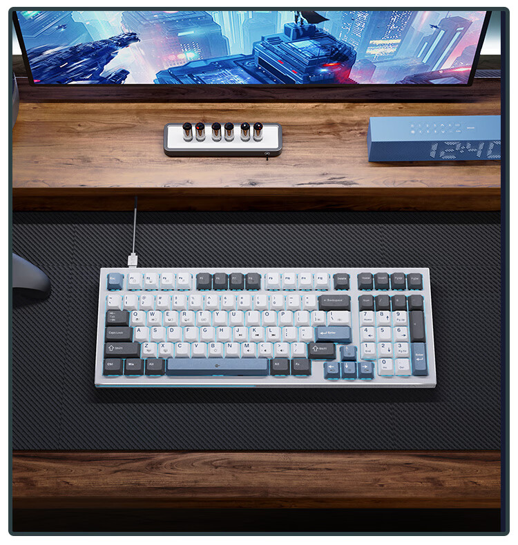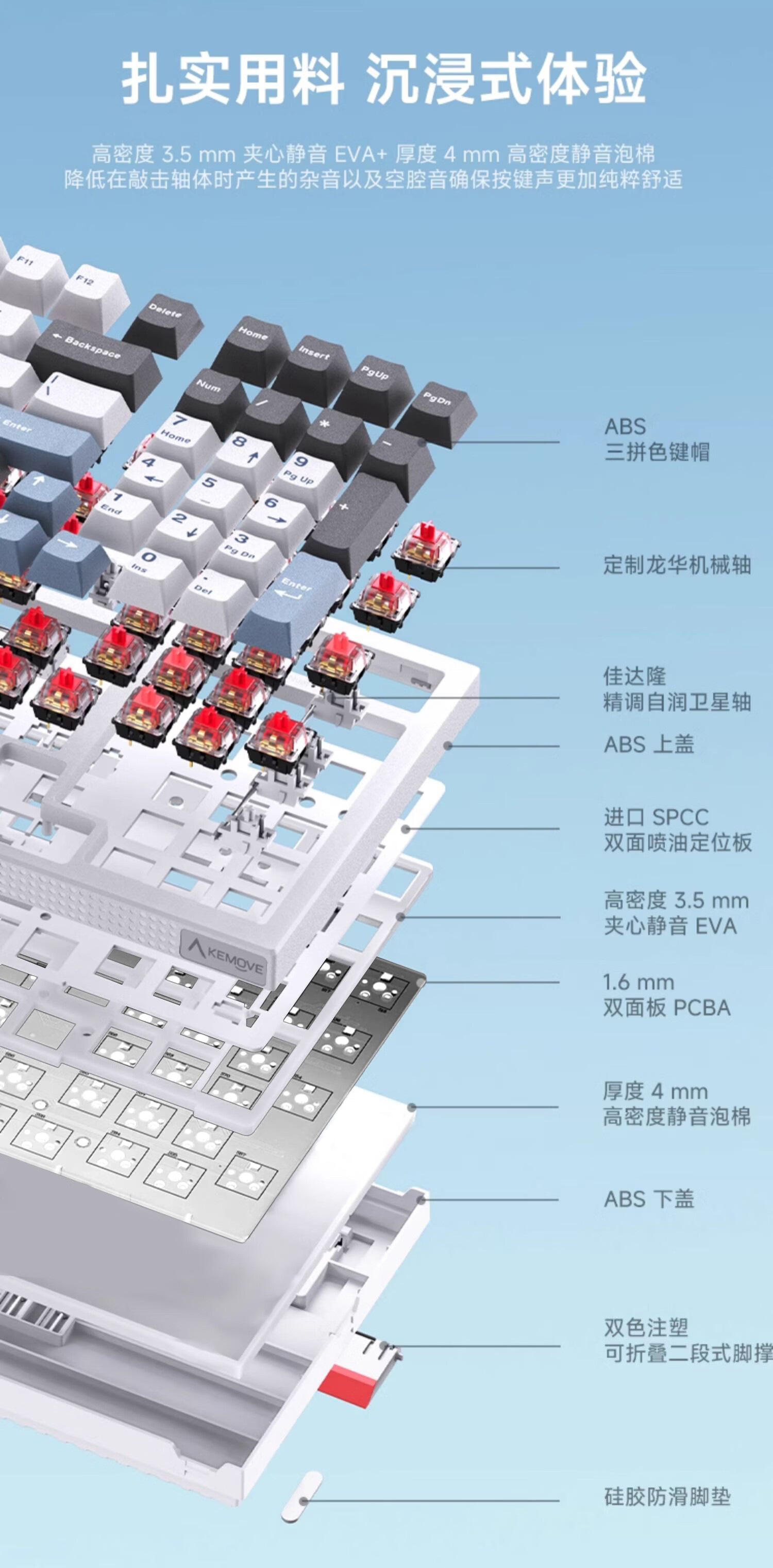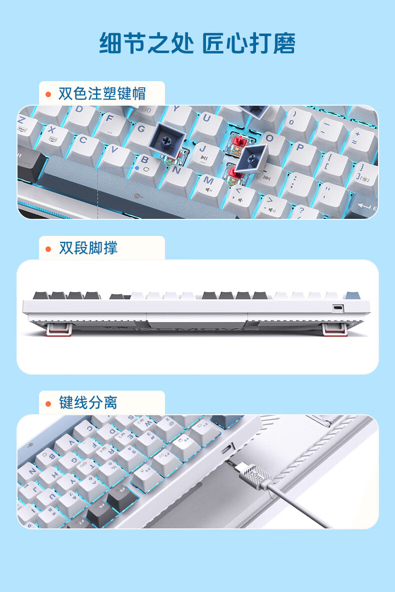 KEMOVE K98SE 有线灯带机械键盘游戏电竞笔记本电脑办公吃鸡全键无冲键盘 K98SE 雪域蓝 定制红轴