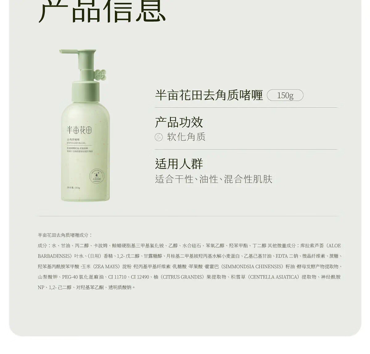 半亩花田去角质啫喱深层清洁收毛孔脸部去死皮黑头面部护肤品男女士凝露 去角质啫喱150g