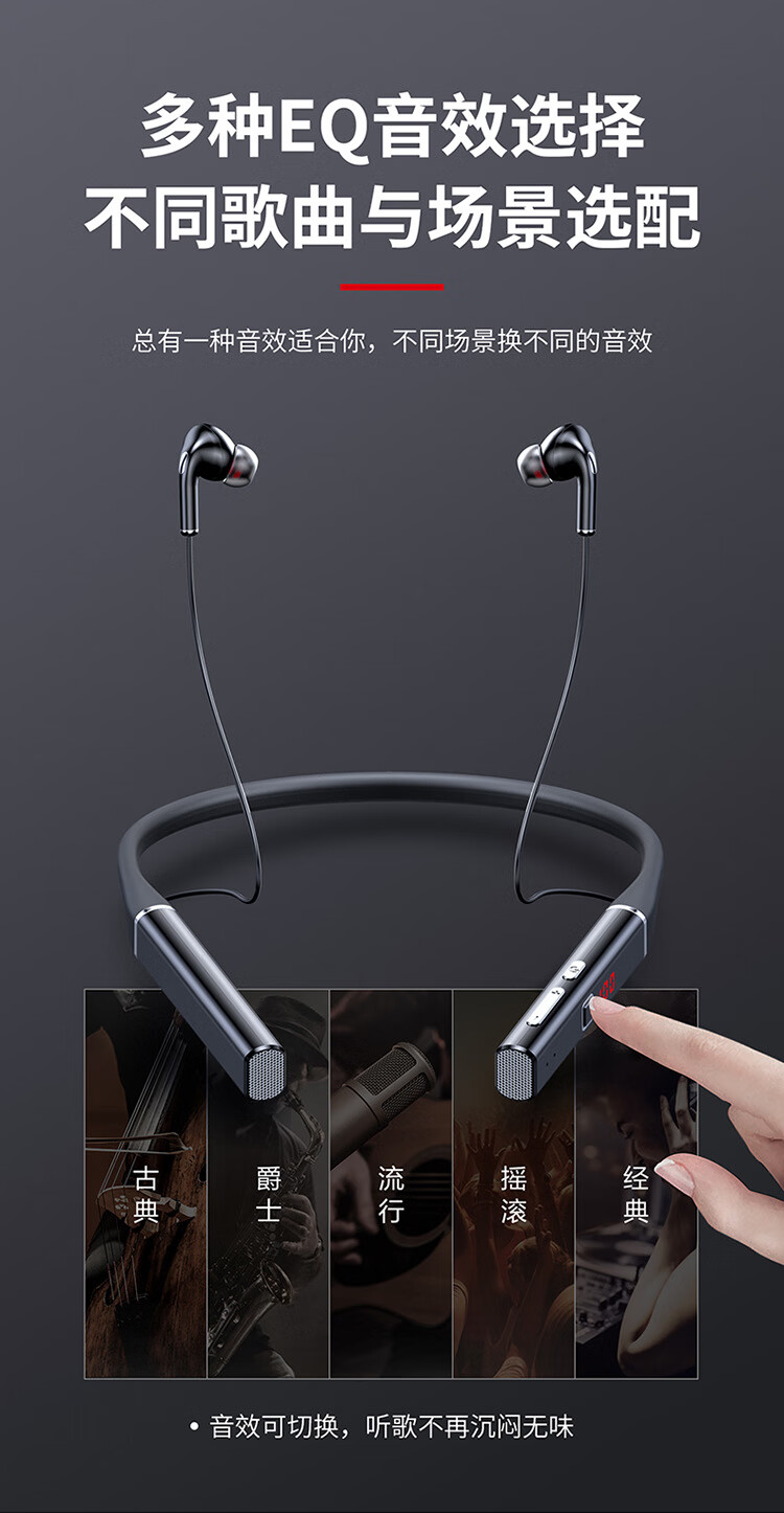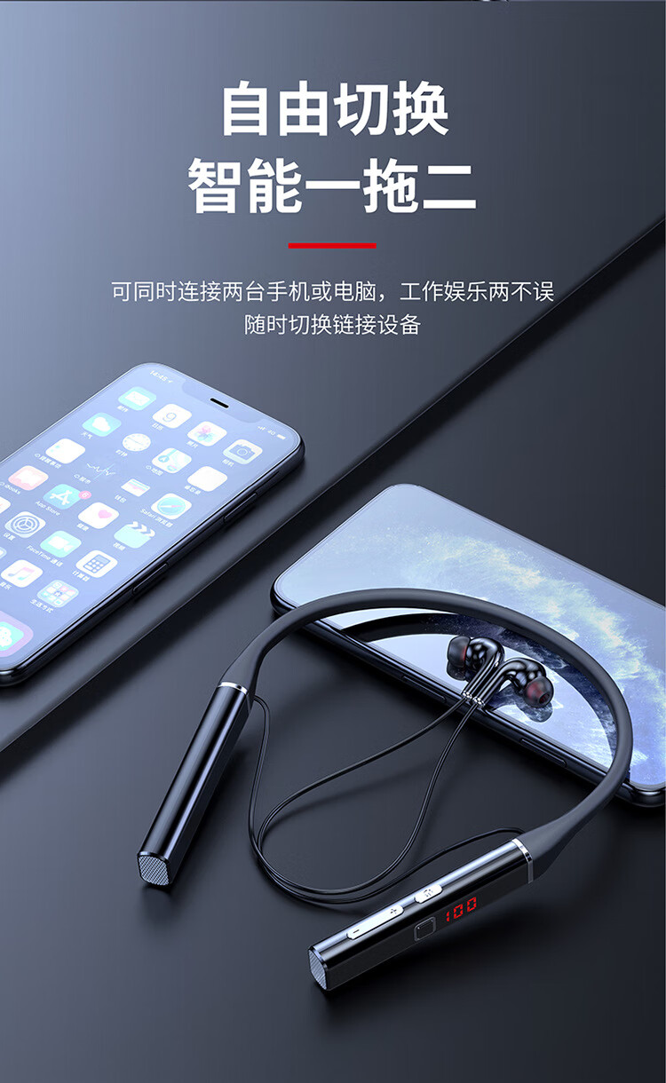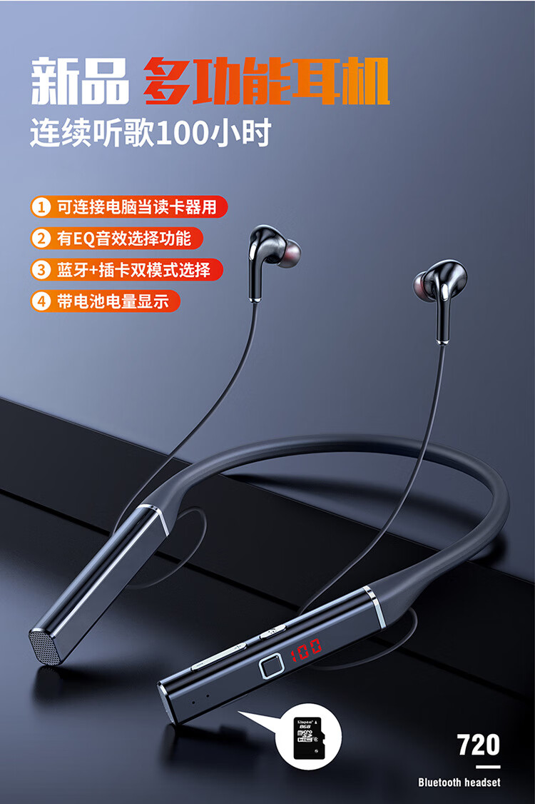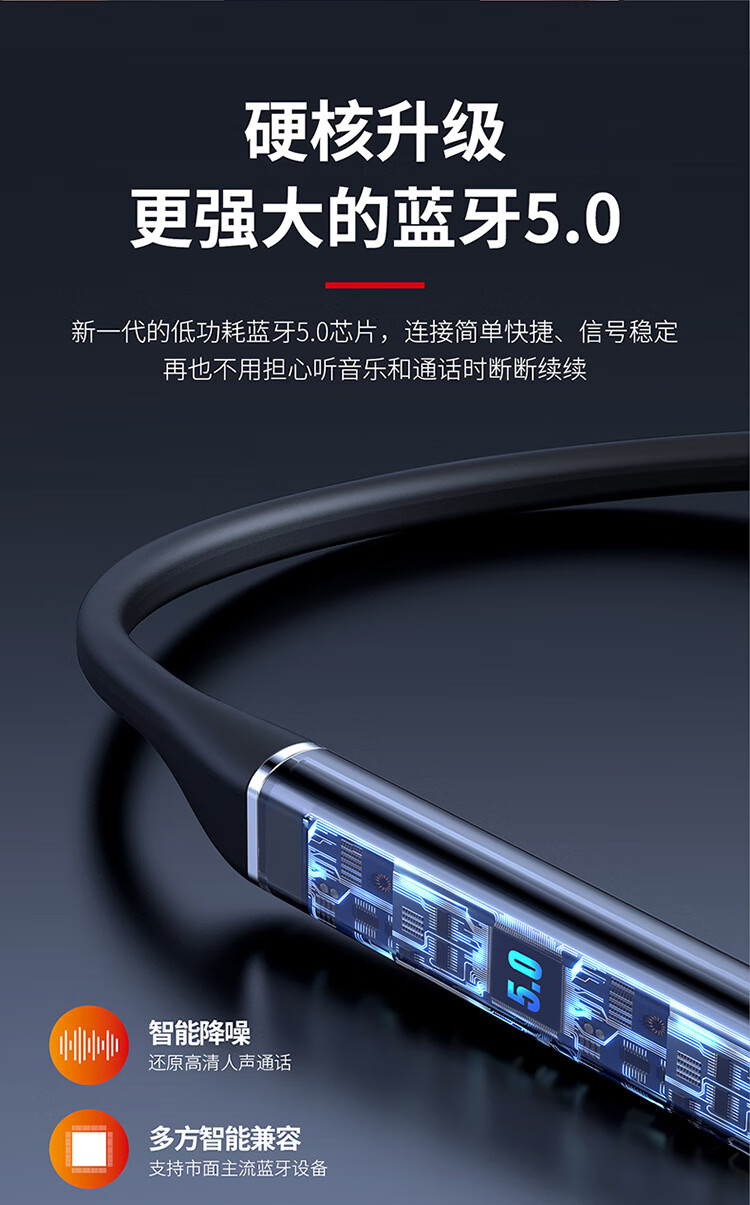 艾丽佳新款5.0无线蓝牙耳机挂脖式高音质降噪超长续航私模无线耳 720黑色标配