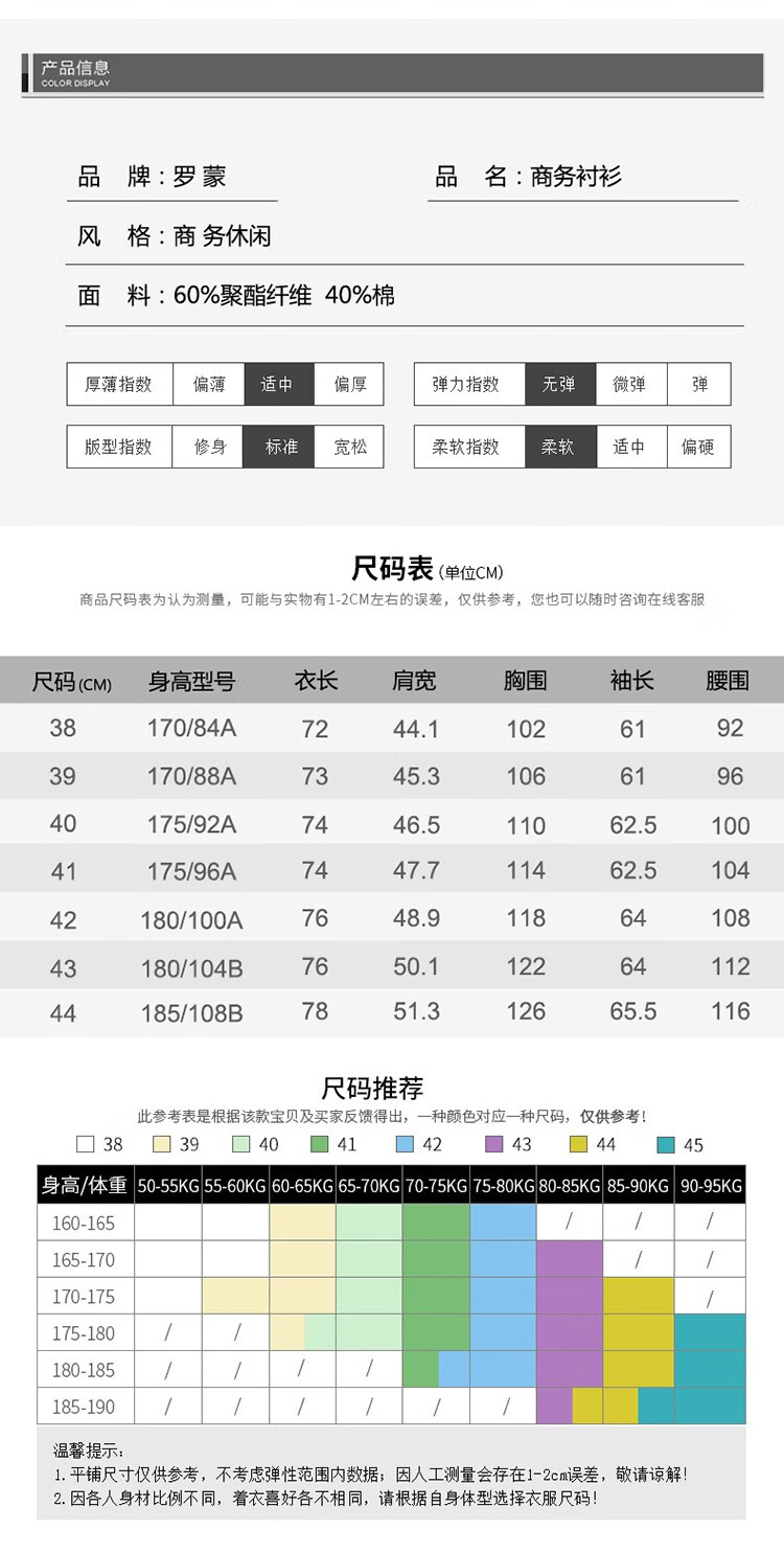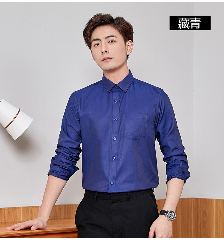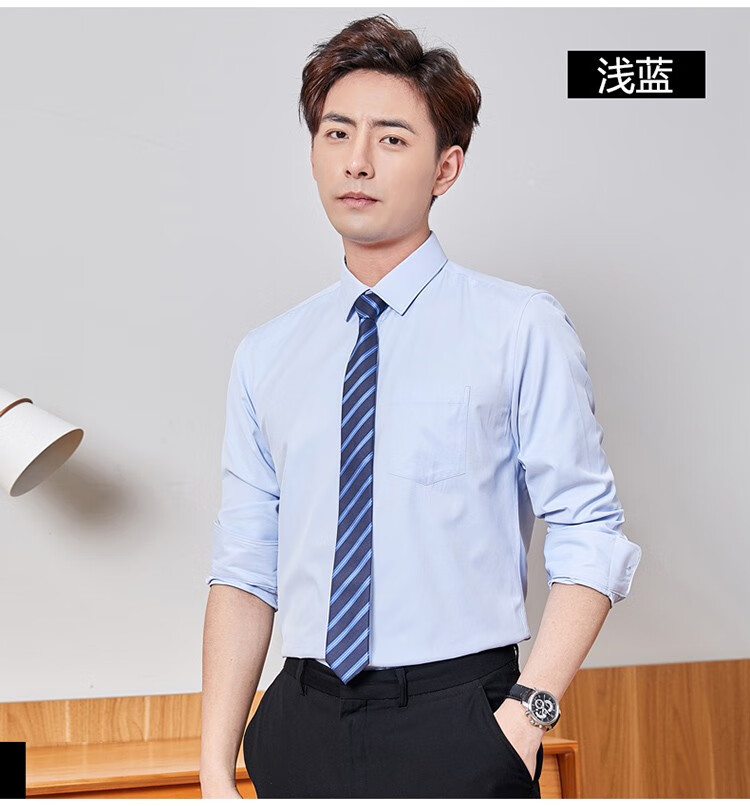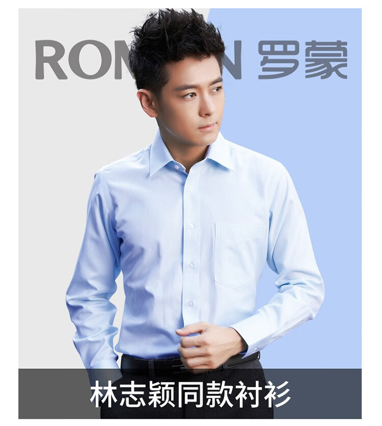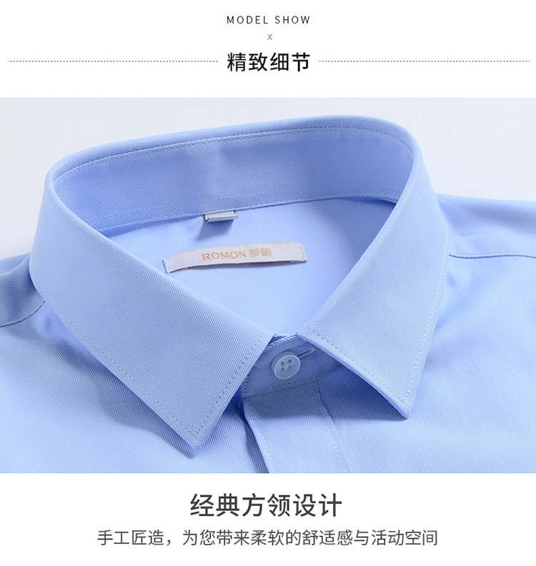罗蒙(ROMON)衬衫男商务白衬衣春夏季新款中青年纯色职业工装男士衬衫上衣 2017蓝色长 42
