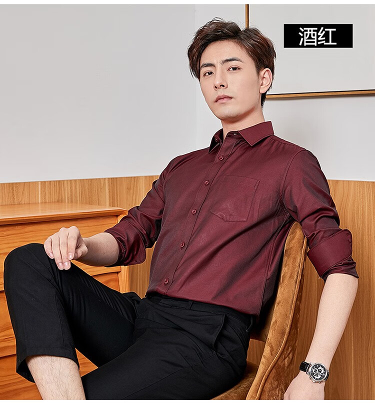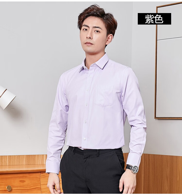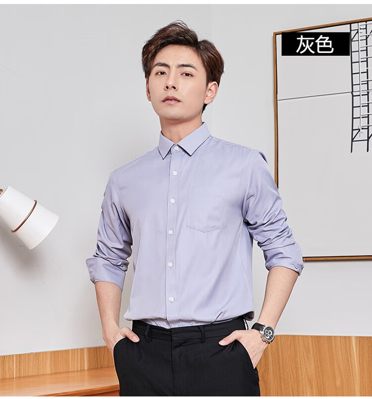 恺米切恺式麻免烫男士长袖衬衫7色商务男装 白色 42