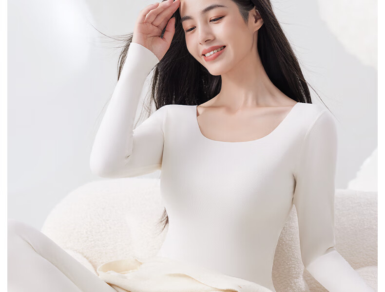 欧迪芬保暖内衣女阳离子椰油润肤轻暖无痕7A抑菌抗静电美体秋衣裤套装 裸肌肤+山茶白 S 参考体重70-95斤