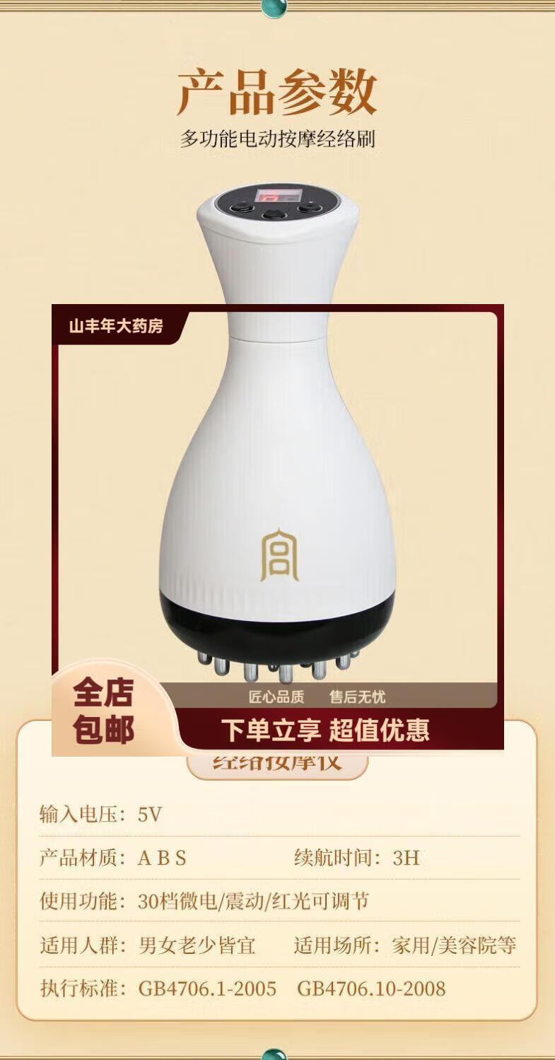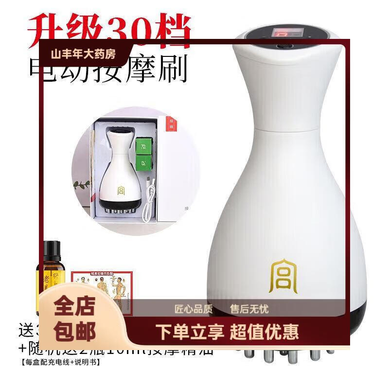 通用宫氏电动经络刷 多功能30档宫氏电动经络刷腹部按摩仪器淋巴疏通 30档电动刷+2瓶10ml油+图