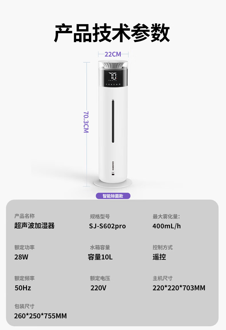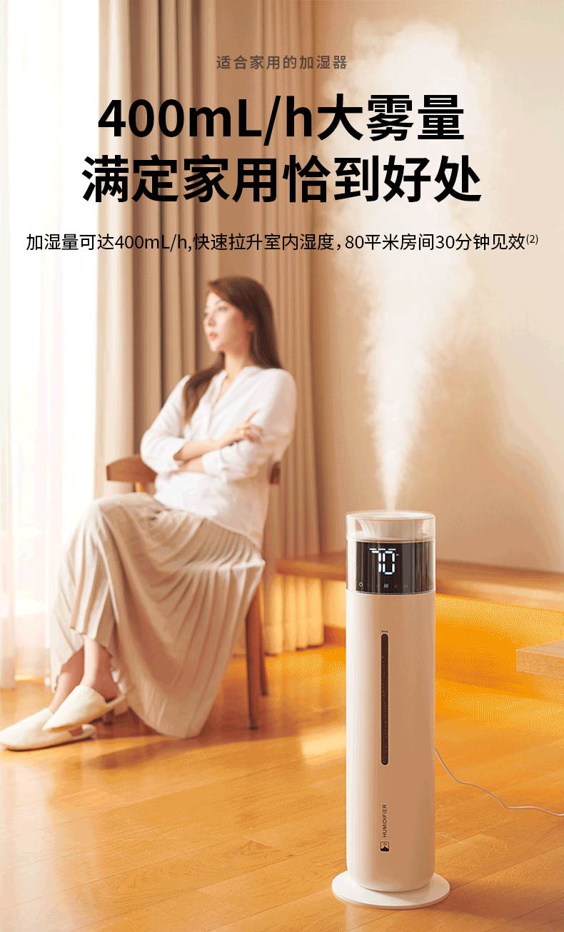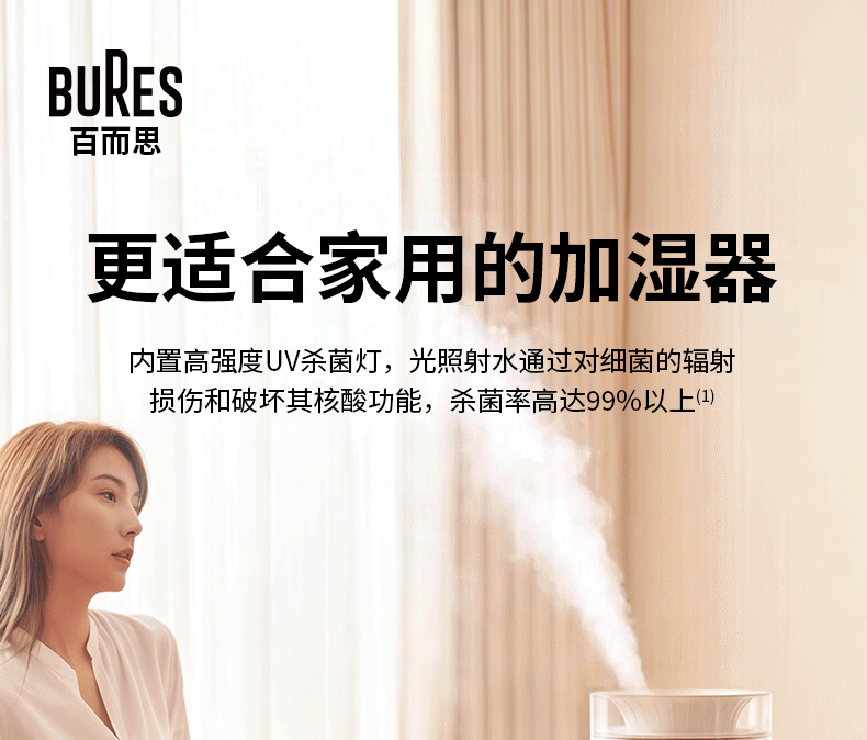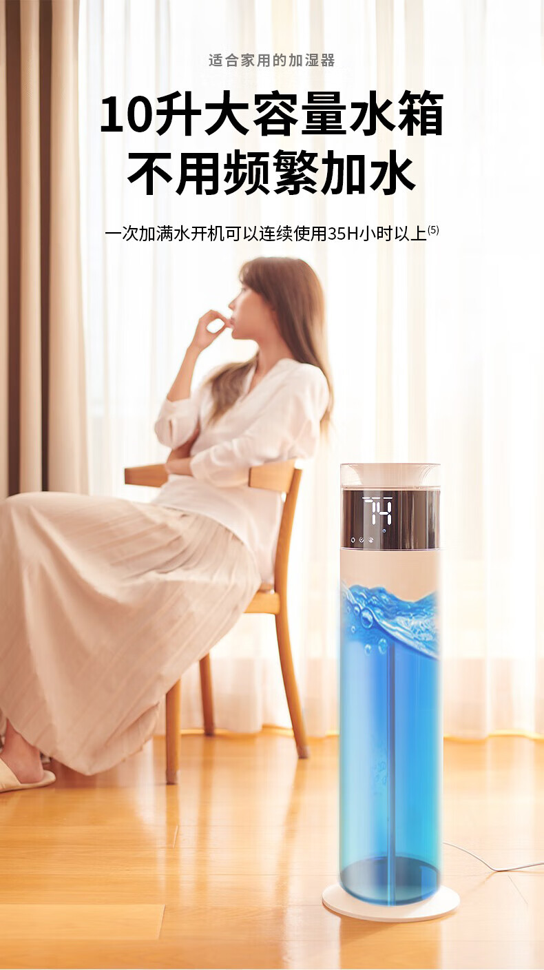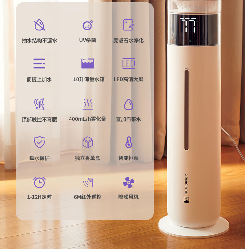bures百而思空气加湿器家用卧室母婴幼儿专用静音除菌大容量客厅办公室超大雾量落地式超声波雾化机器 智能杀菌款【10升大容量】Pro版