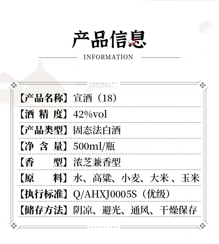 宣酒 宣18 浓芝兼香型白酒 42度 500ml 单瓶装 小窖酿造 热门商品送礼