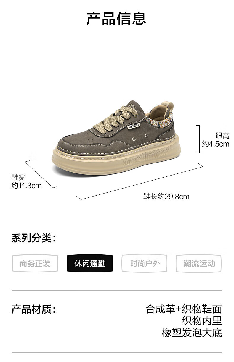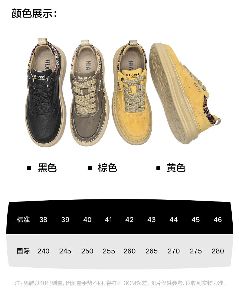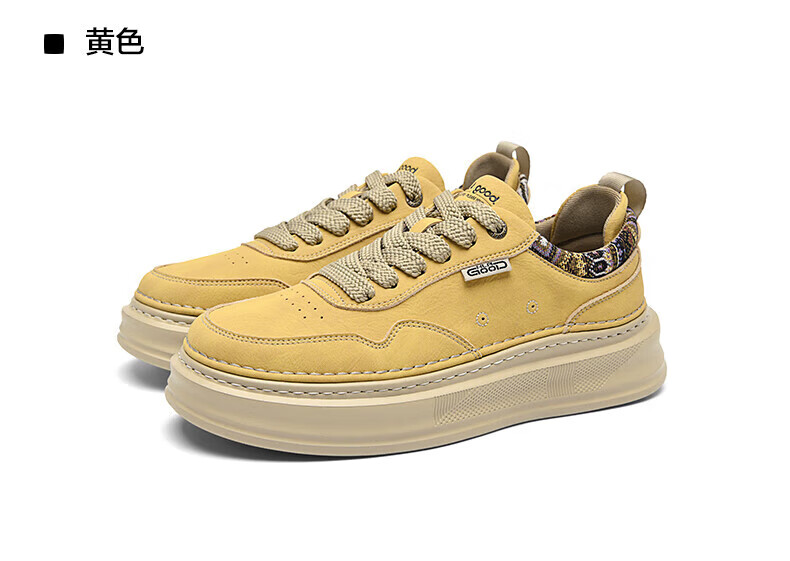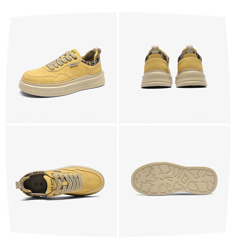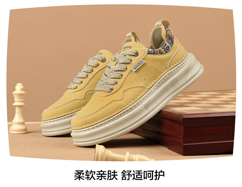 海澜之家(HLA)男鞋2025夏季新款质感休闲板鞋舒适柔软厚底增高百搭通勤鞋子 黄色 39