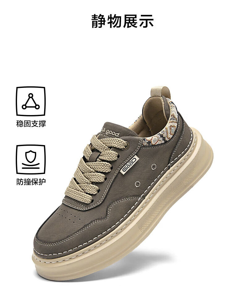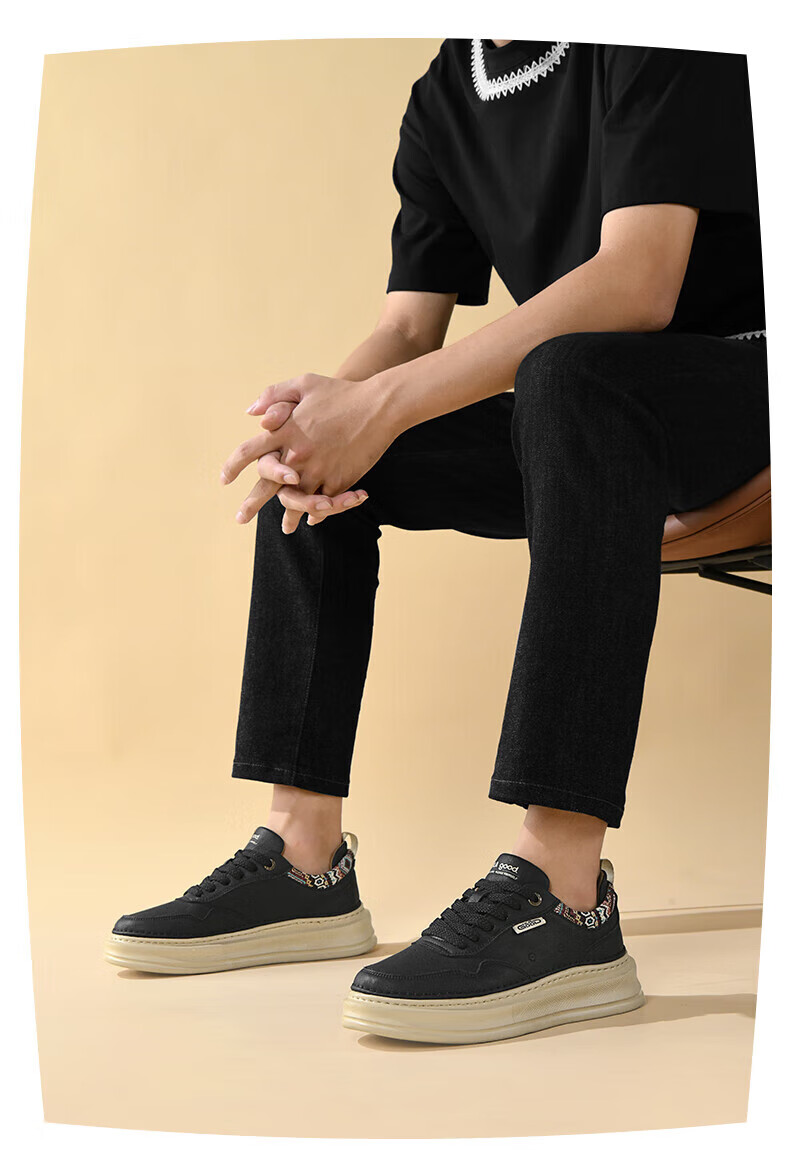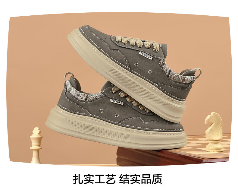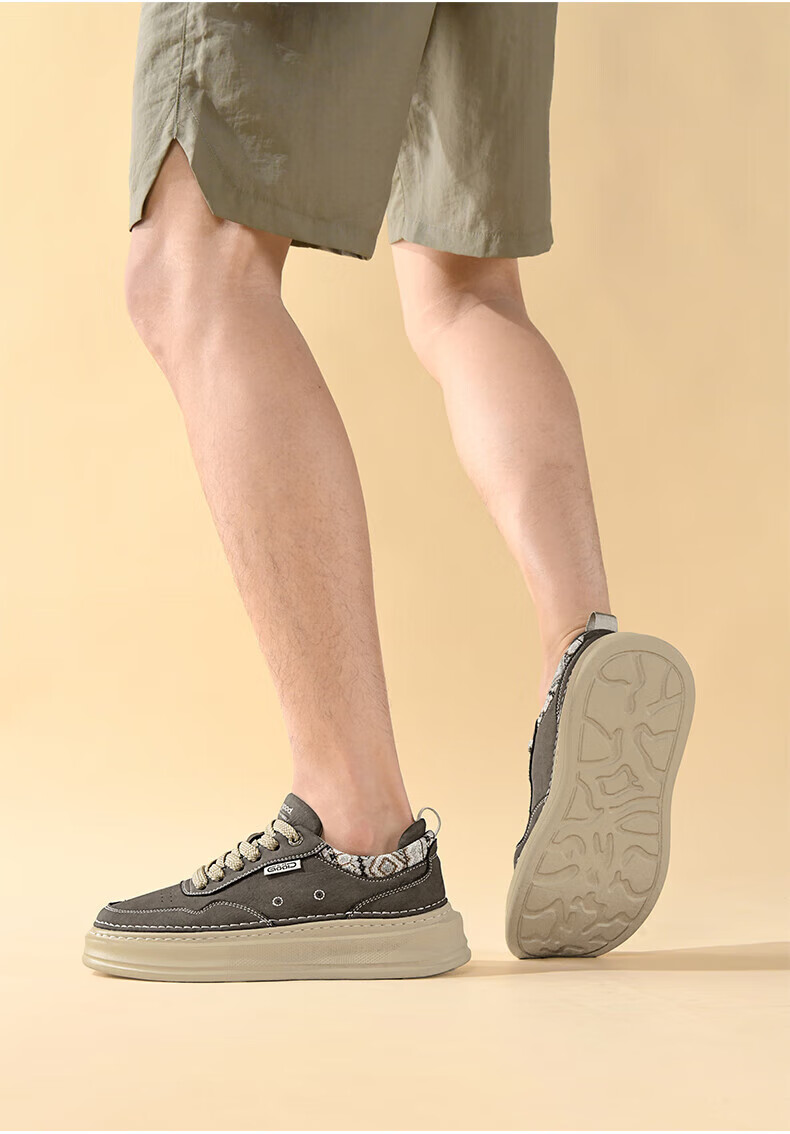 海澜之家(HLA)男鞋2025夏季新款质感休闲板鞋舒适柔软厚底增高百搭通勤鞋子 黄色 39