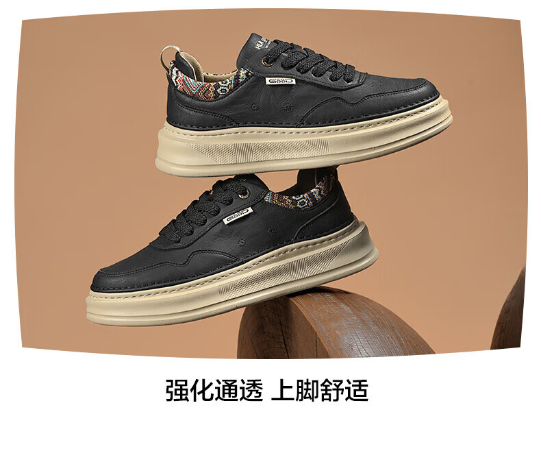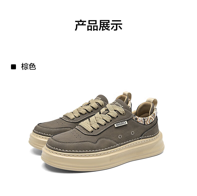 哆啦A梦男鞋秋季新款复古百搭厚底板鞋男士低帮透气运动休闲鞋子男款潮鞋 栗子棕 44