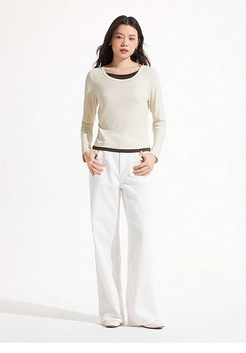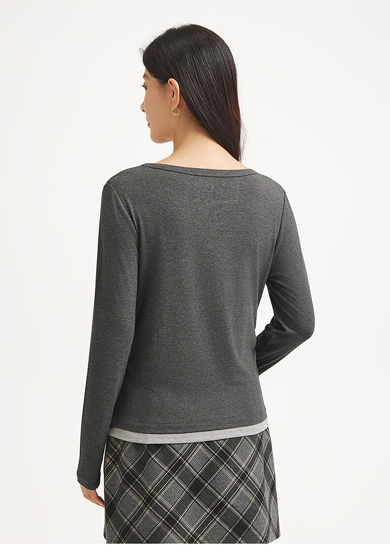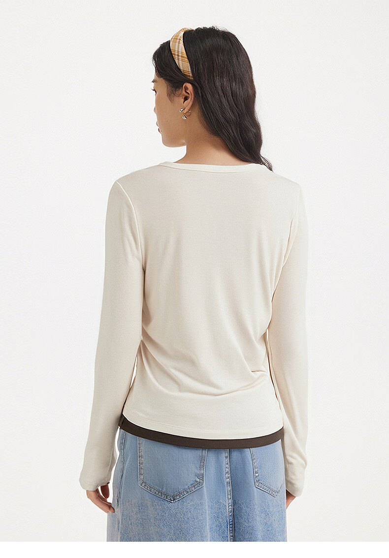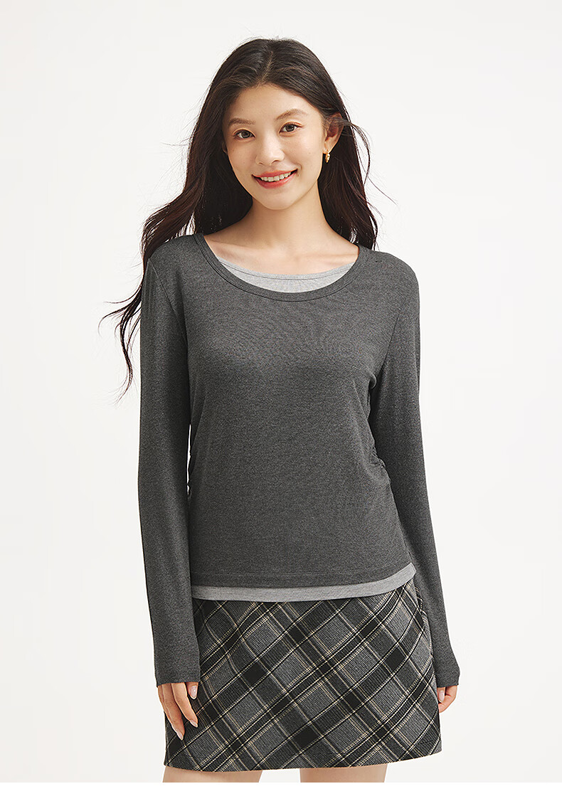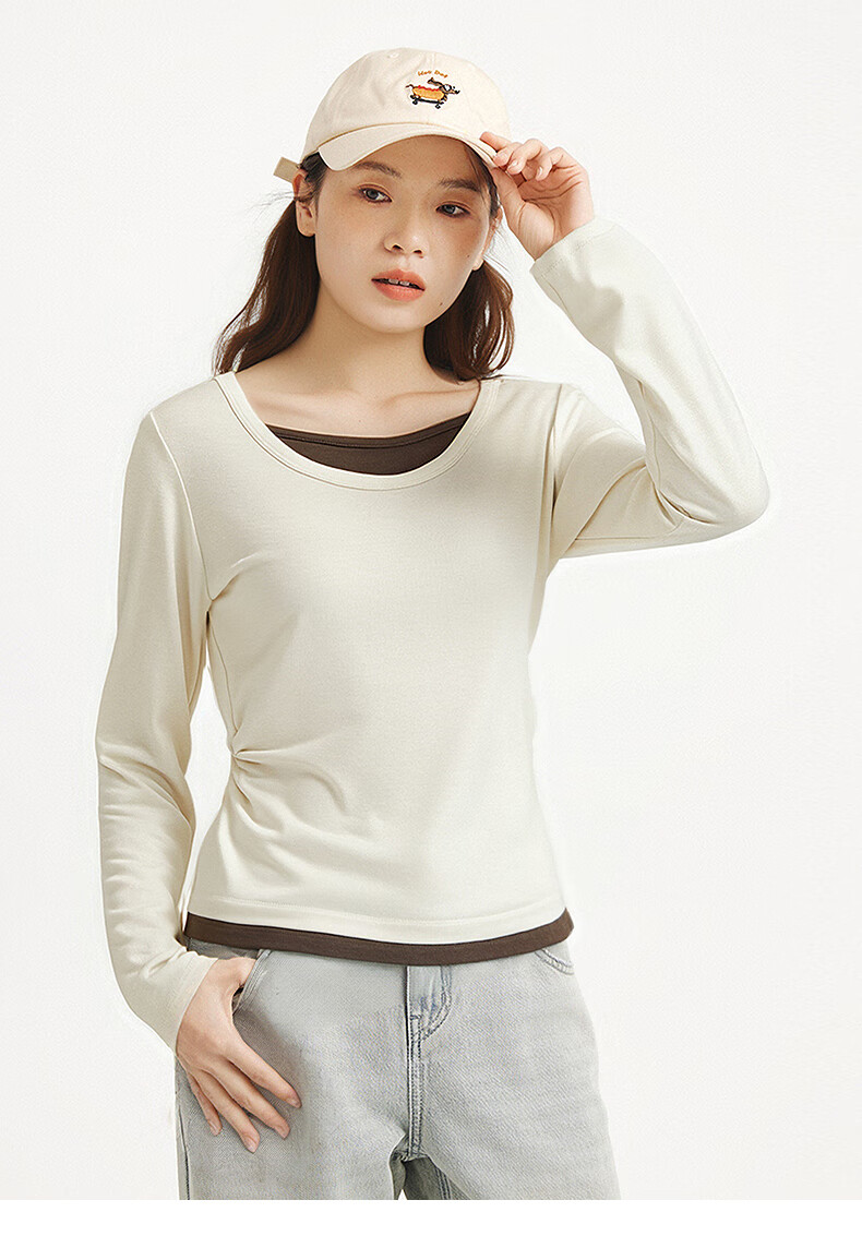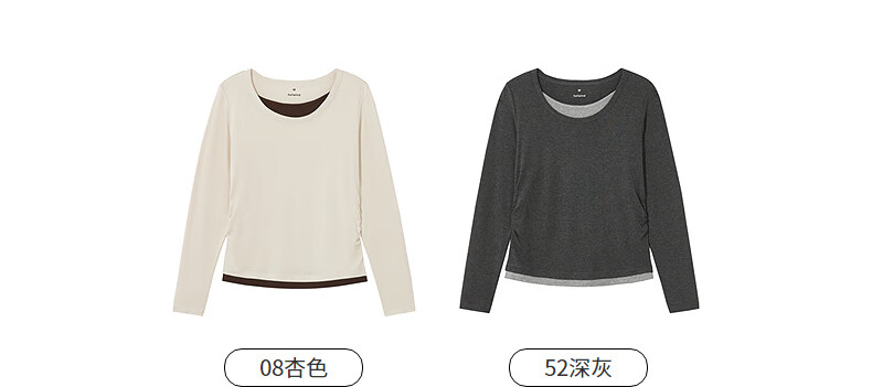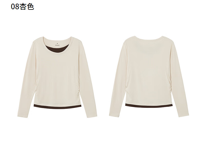 热风(Hotwind)女士长袖T恤上衣2025年秋季新款圆领假两件长袖T韩系打底衫 08杏色 S