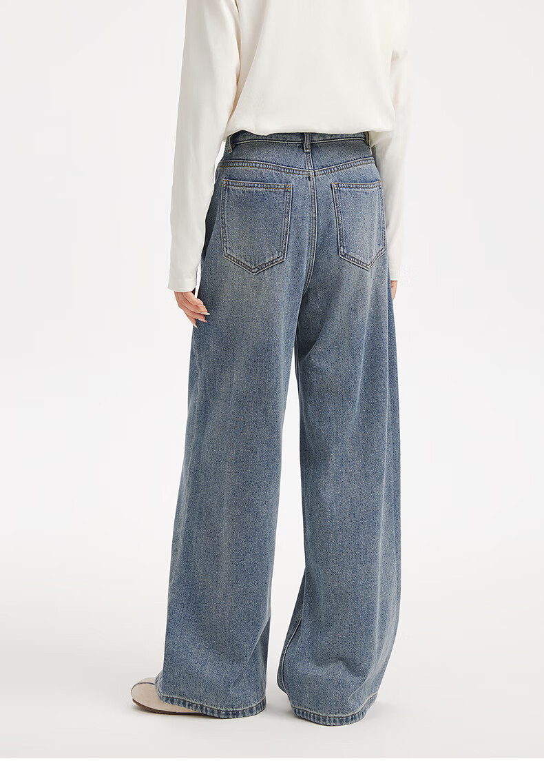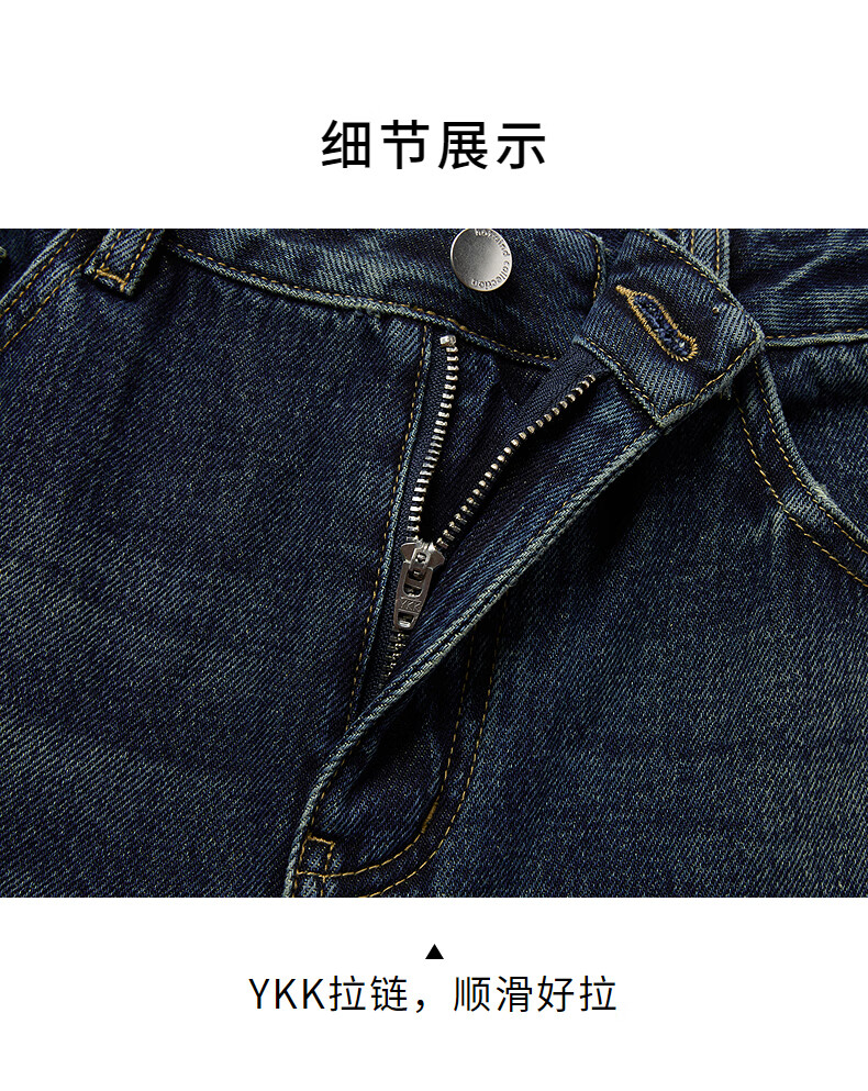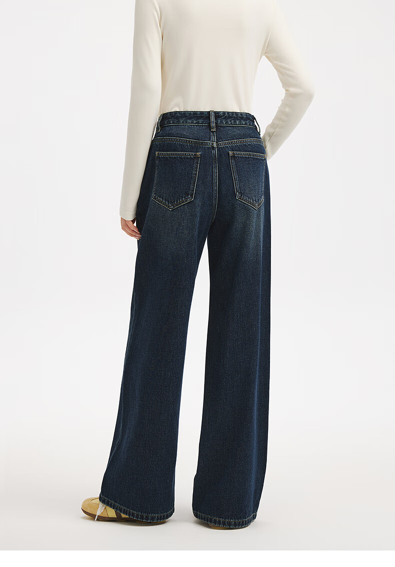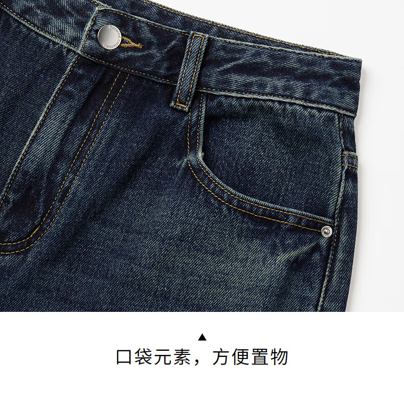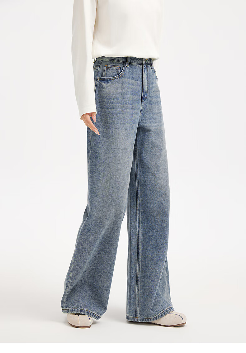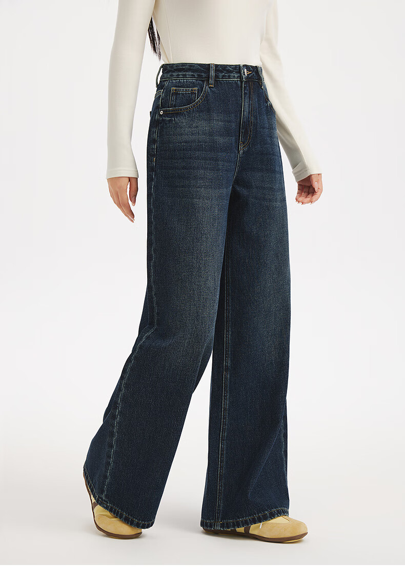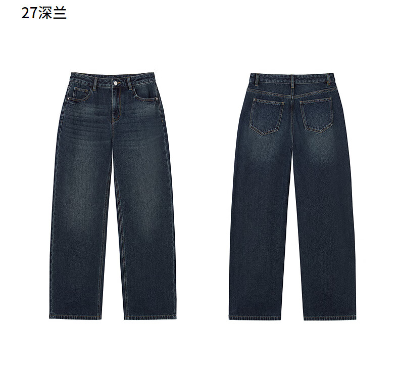 热风(Hotwind)女士加绒牛仔裤2025年冬季新款时尚阔腿牛仔裤直筒磨毛牛仔裤 27深兰 25