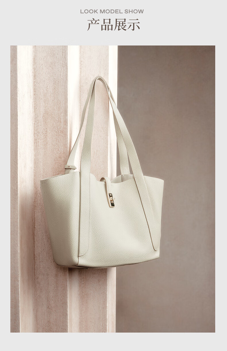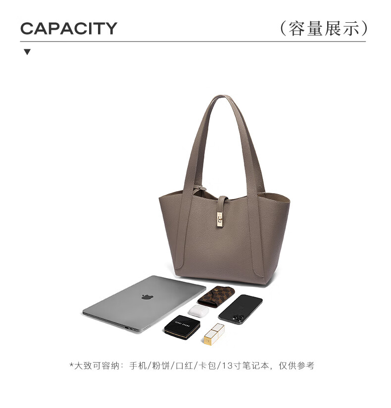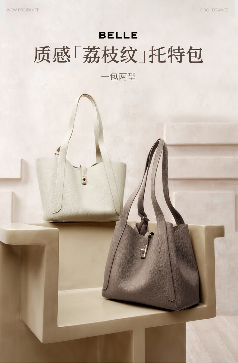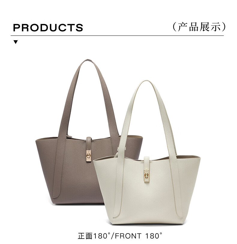 百丽包女25秋新商场同款质感通勤牛皮革大容量单肩托特包BL863DX5 灰色 F