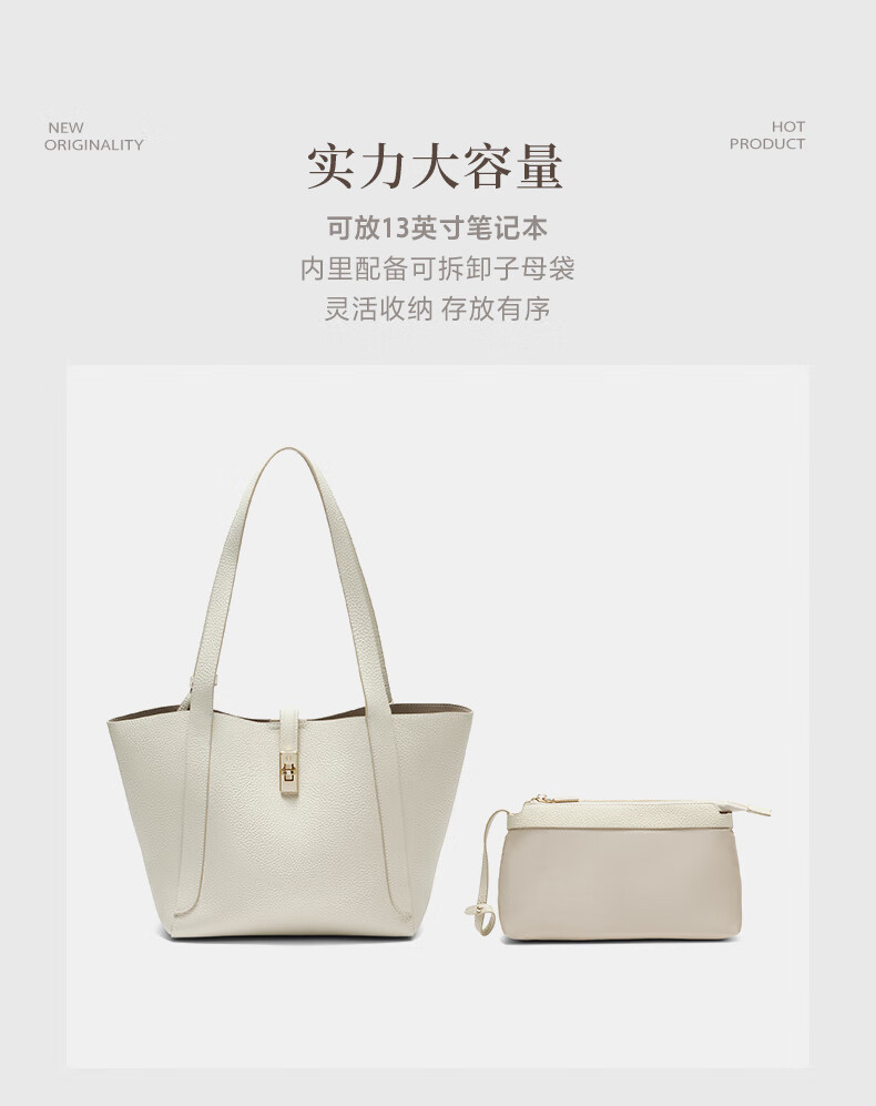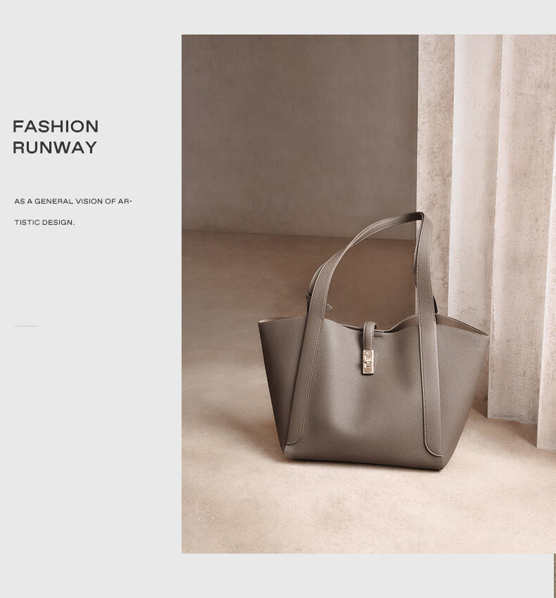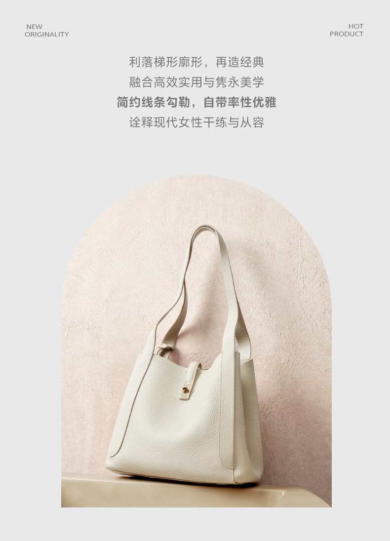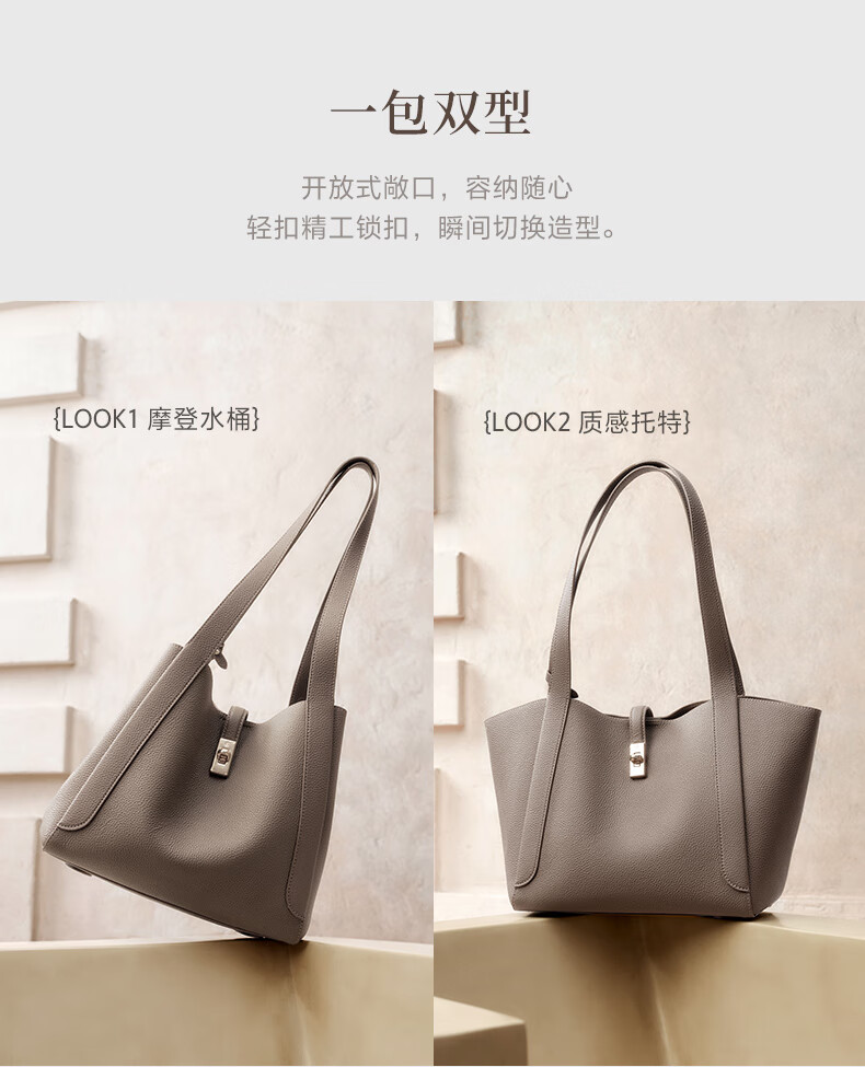 百丽包女25秋新商场同款质感通勤牛皮革大容量单肩托特包BL863DX5 灰色 F