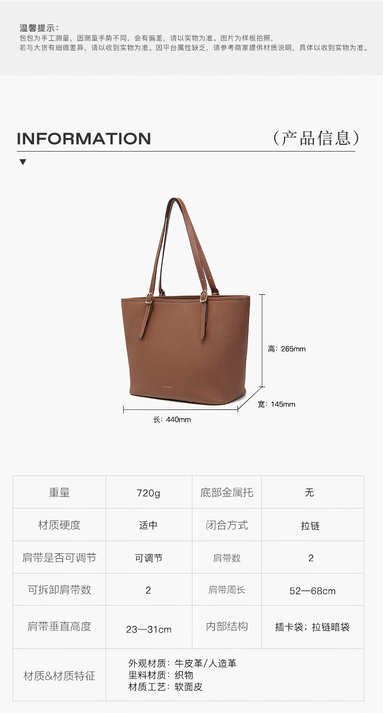 百丽包包女2025秋新商场同款简约高级质感单肩托特包X7418CX5 棕色【可放14寸电脑】 F