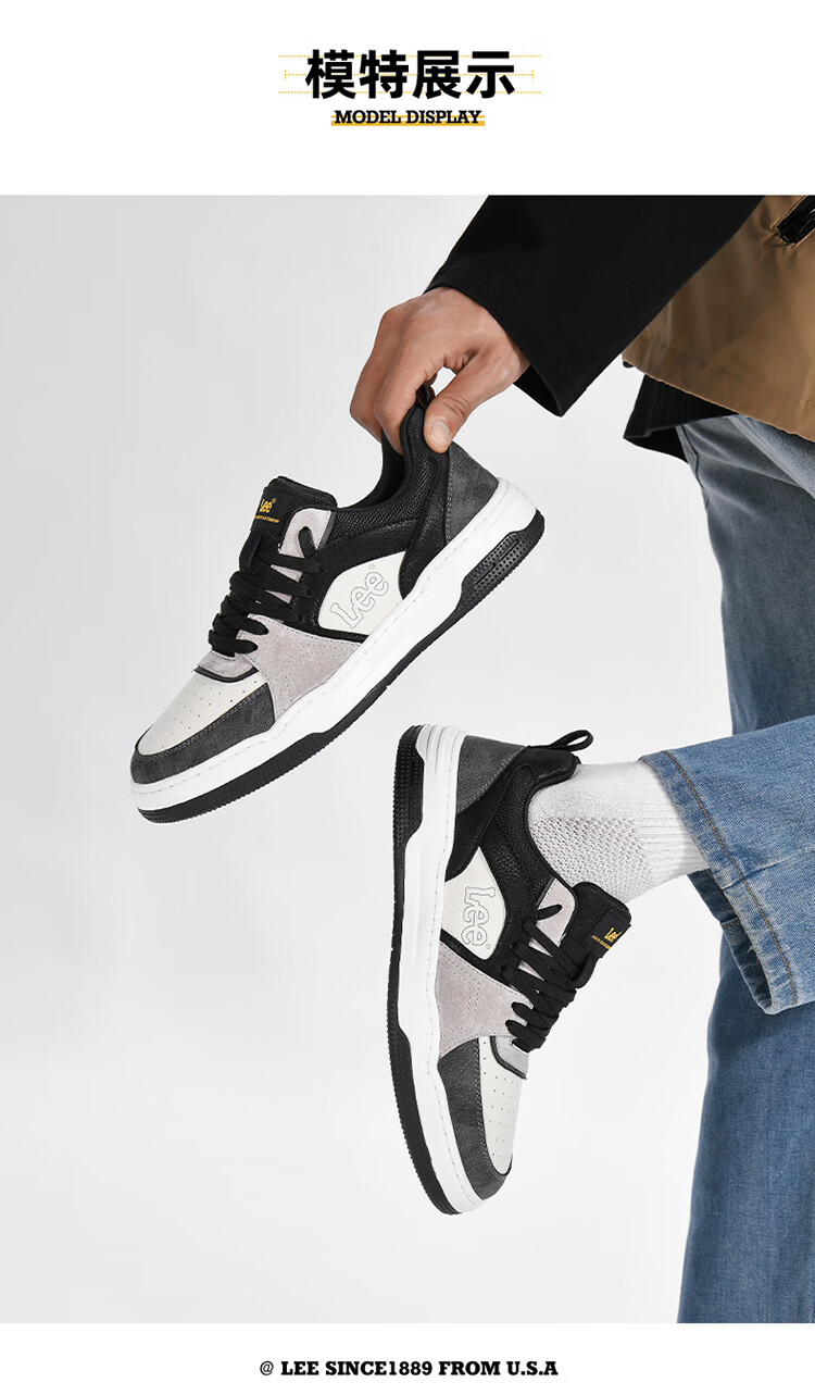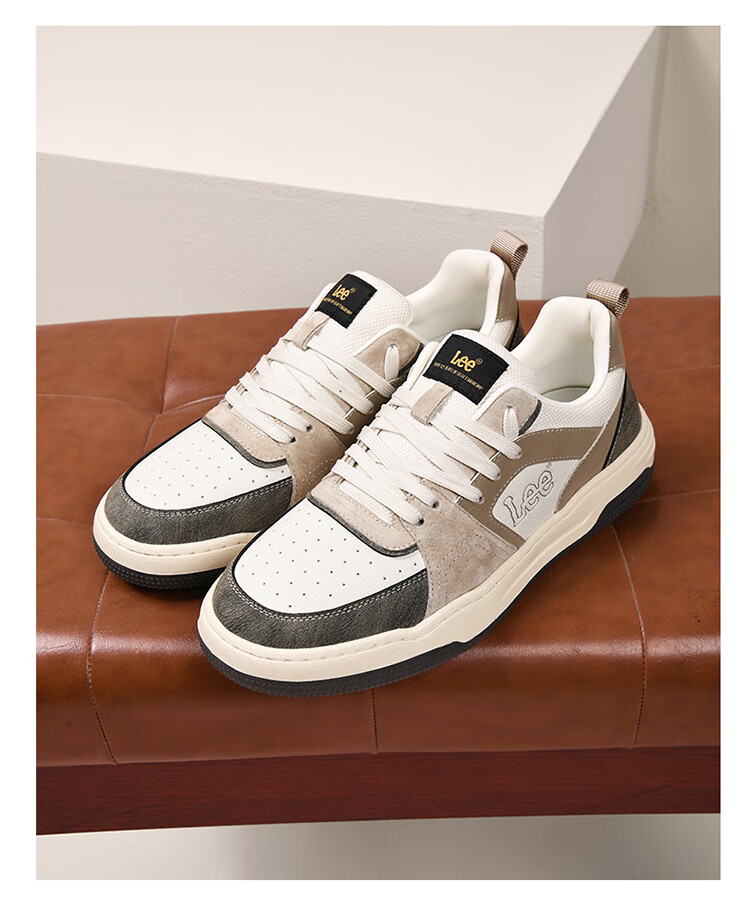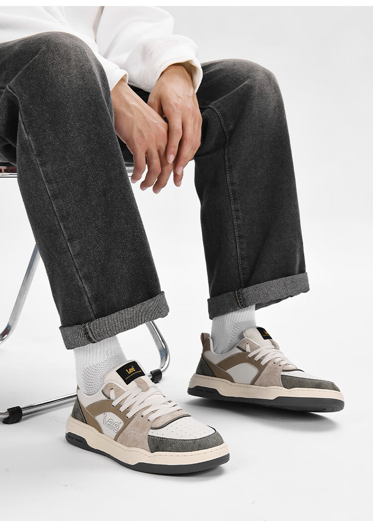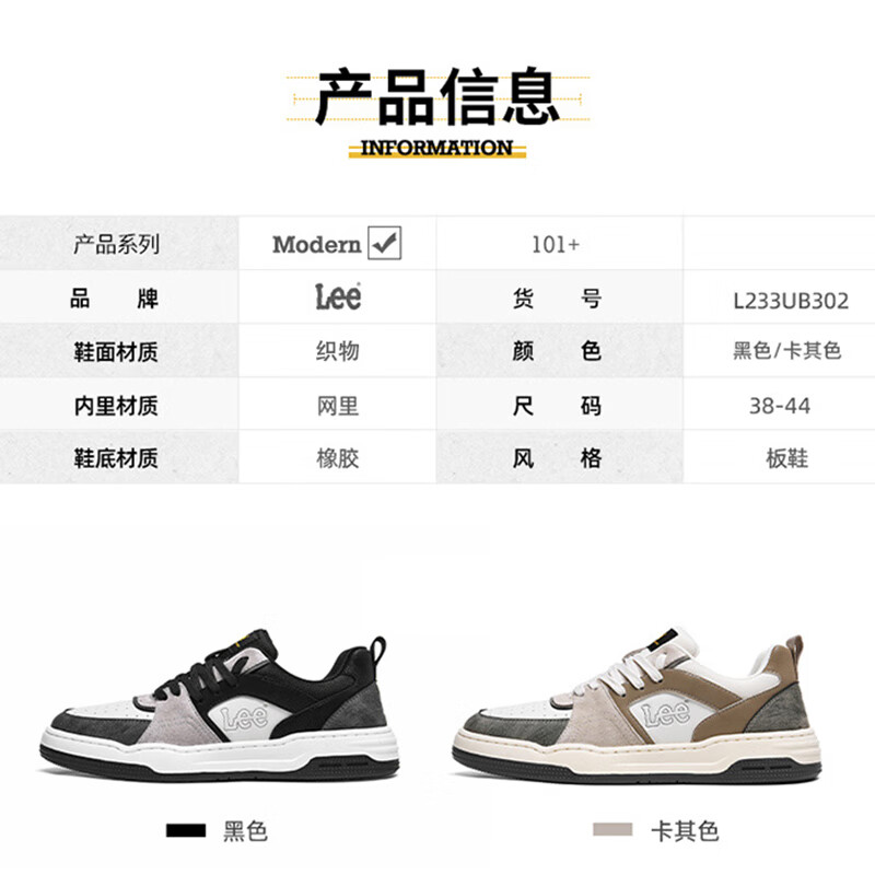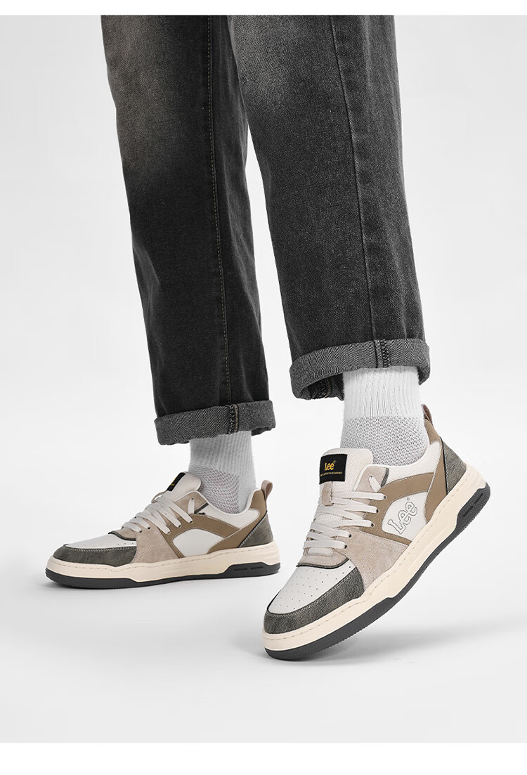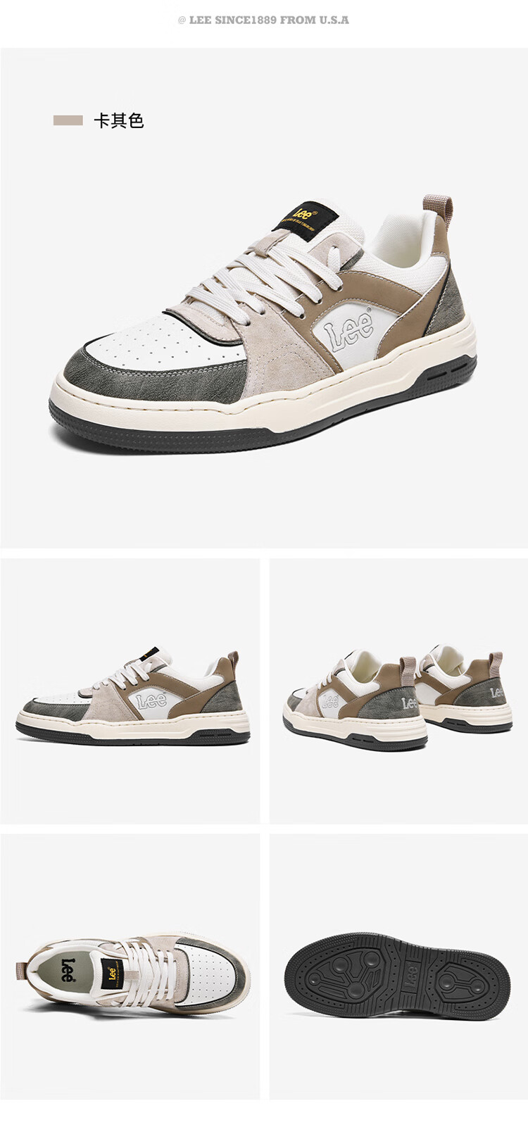 Lee男鞋秋季新款休闲鞋男士潮流经典运动板鞋系带增高学生舒适鞋子男 卡其 40