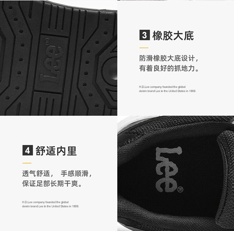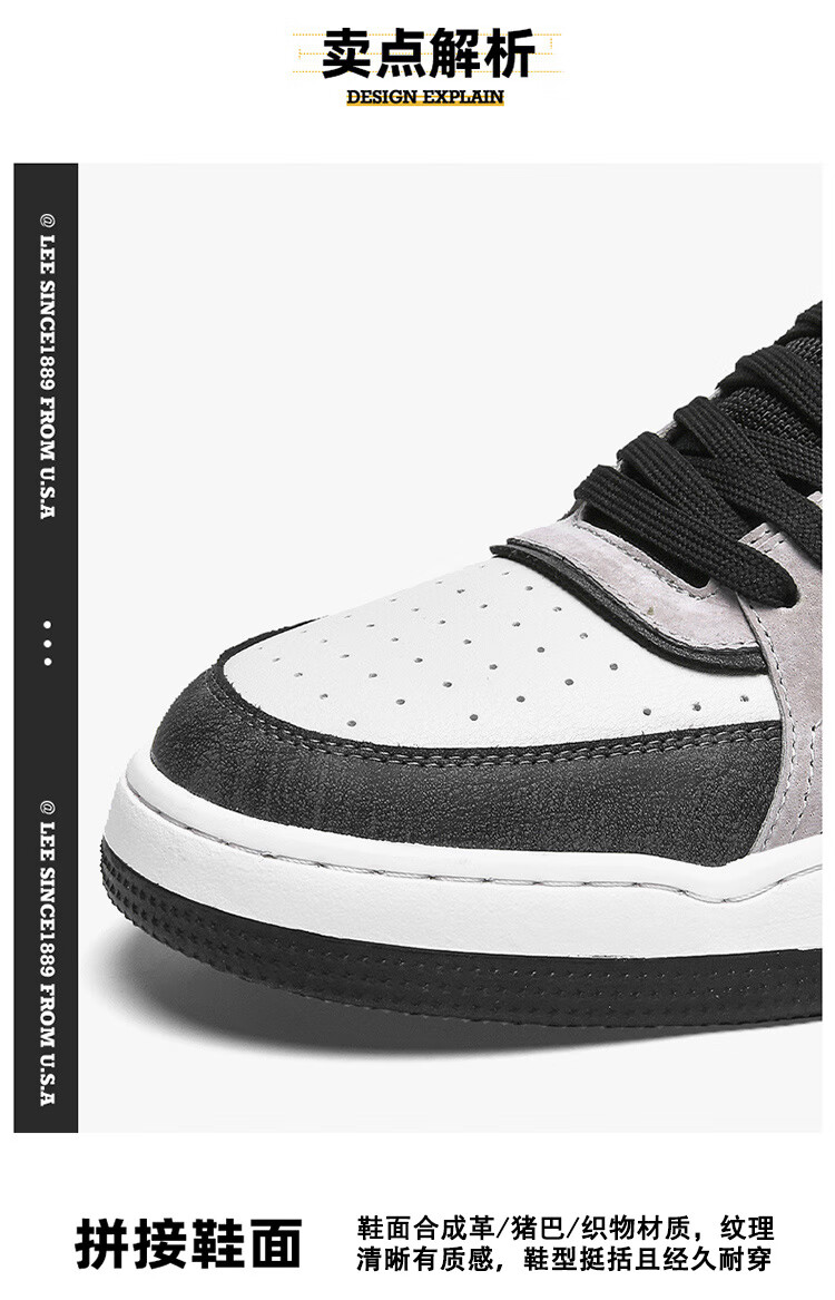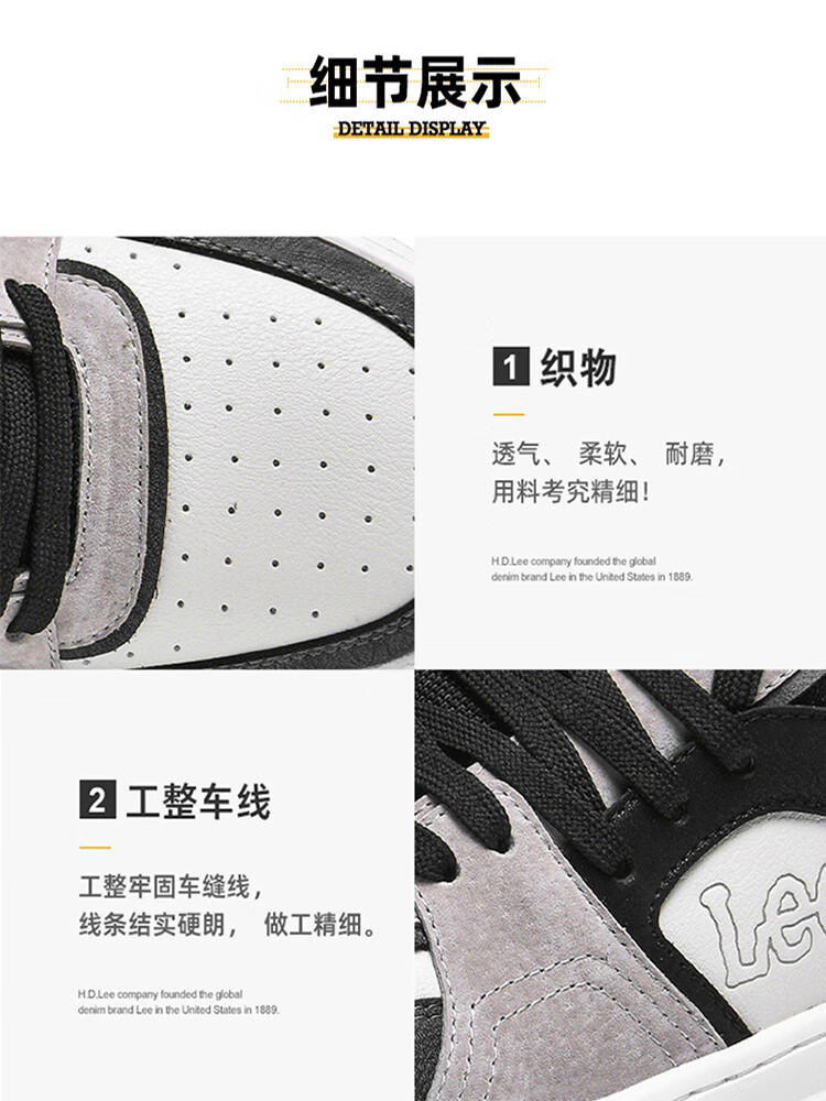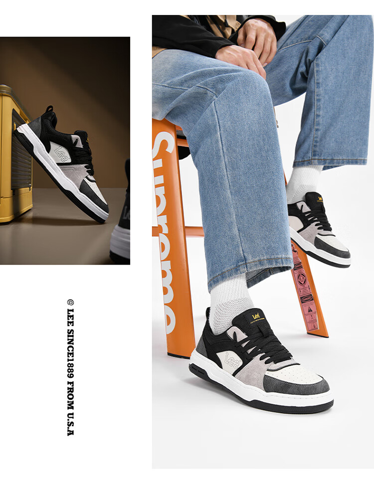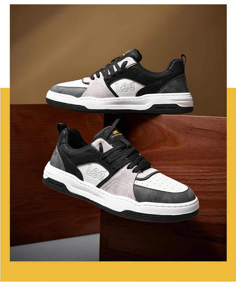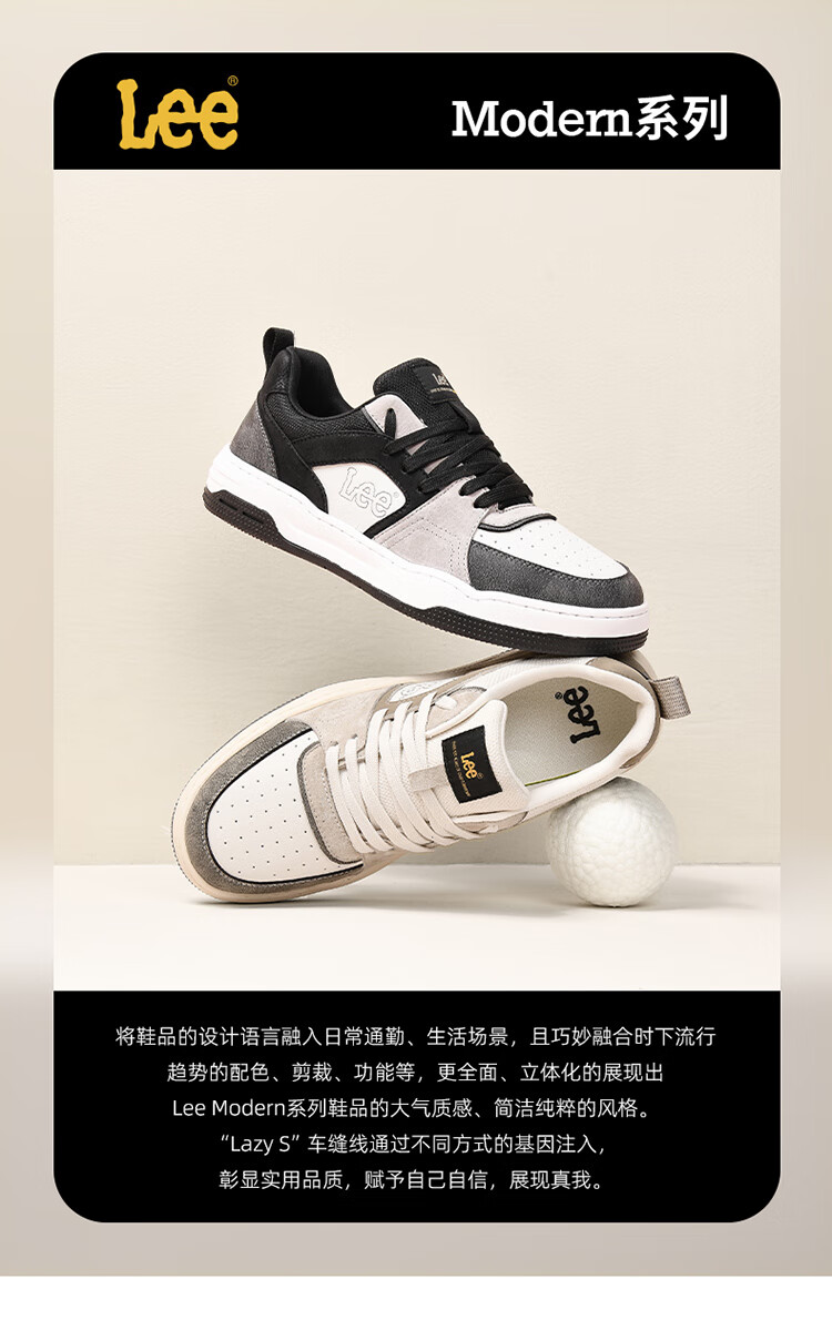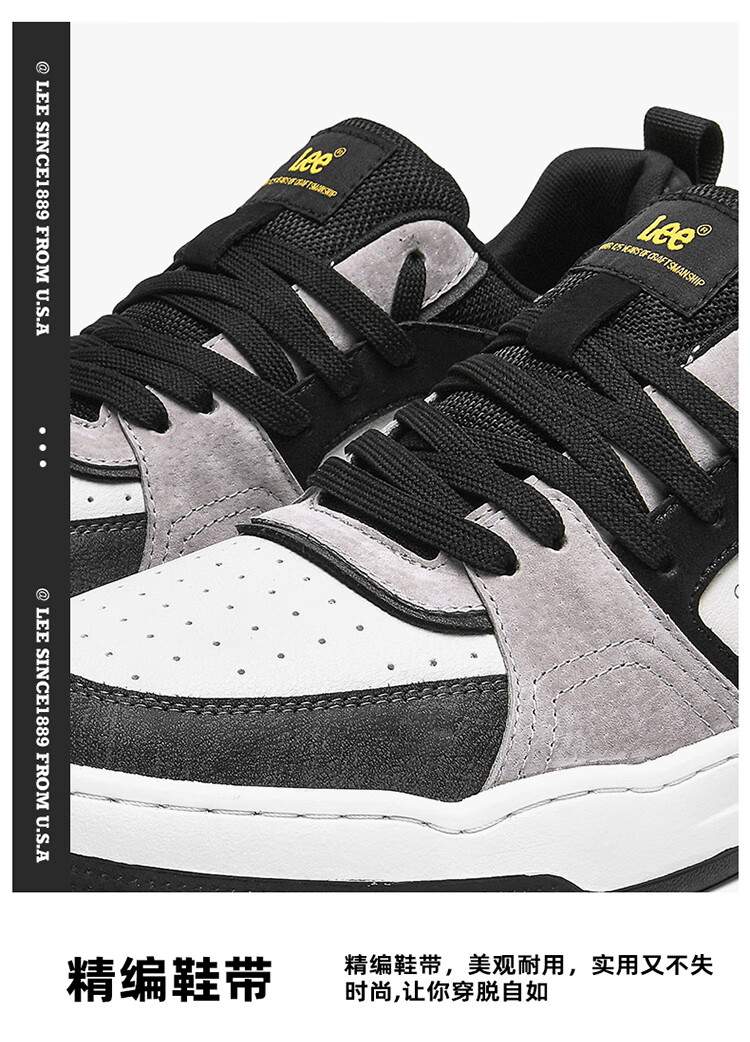 Lee男鞋秋季新款休闲鞋男士潮流经典运动板鞋系带增高学生舒适鞋子男 卡其 40
