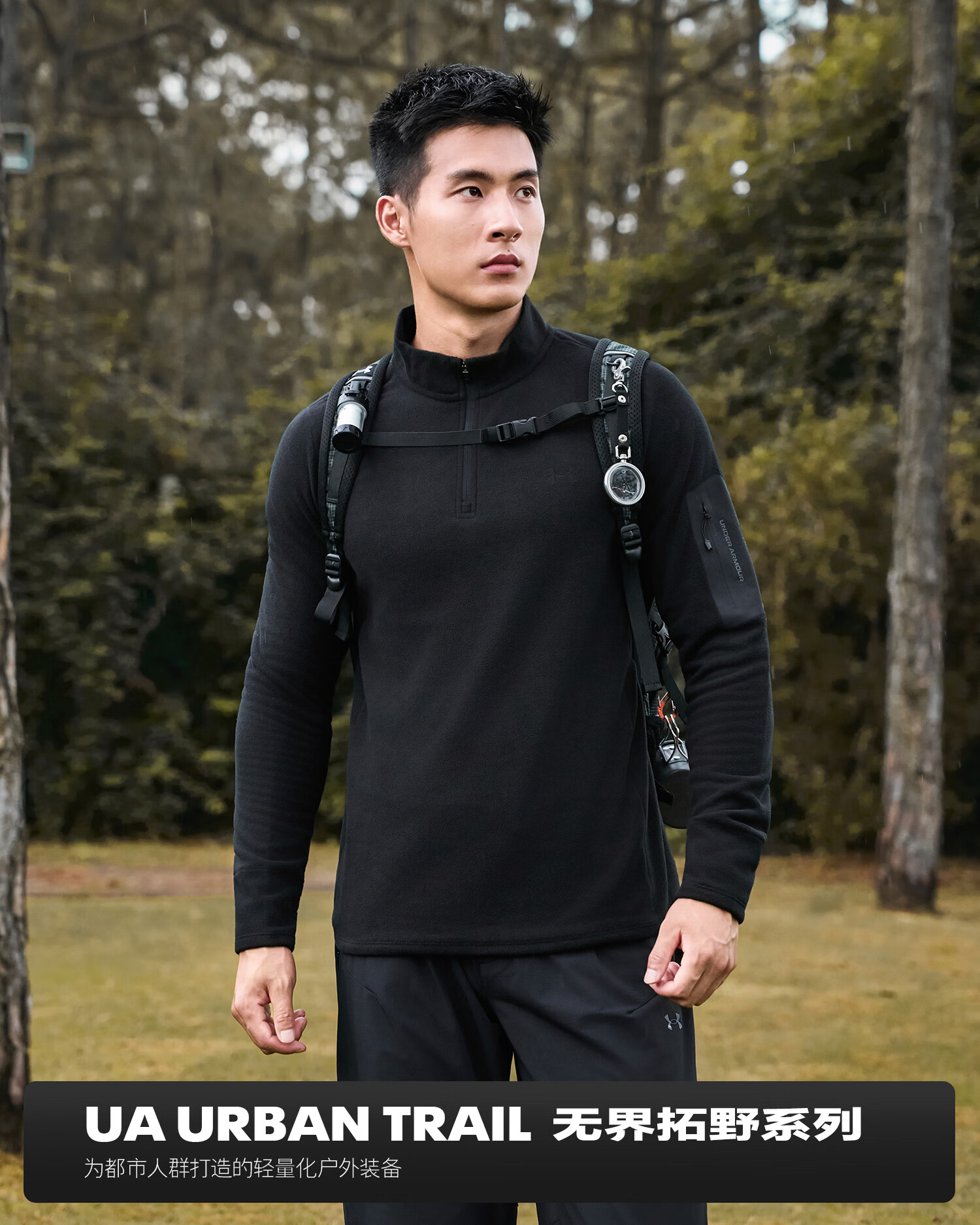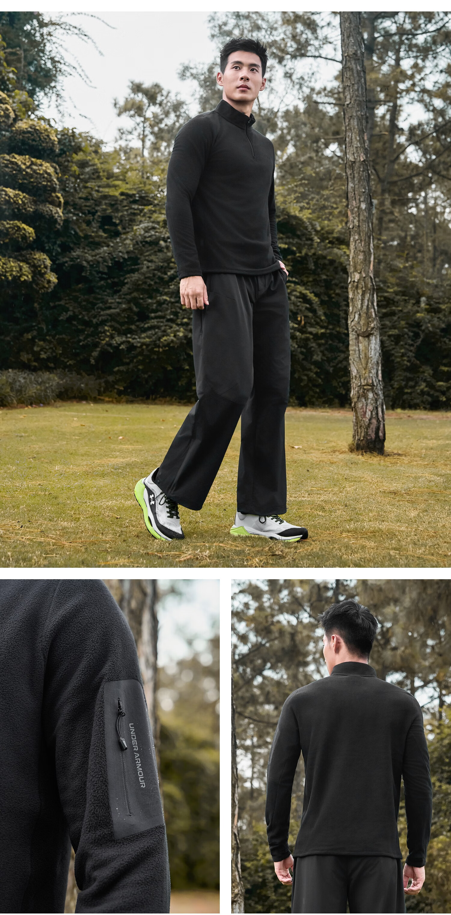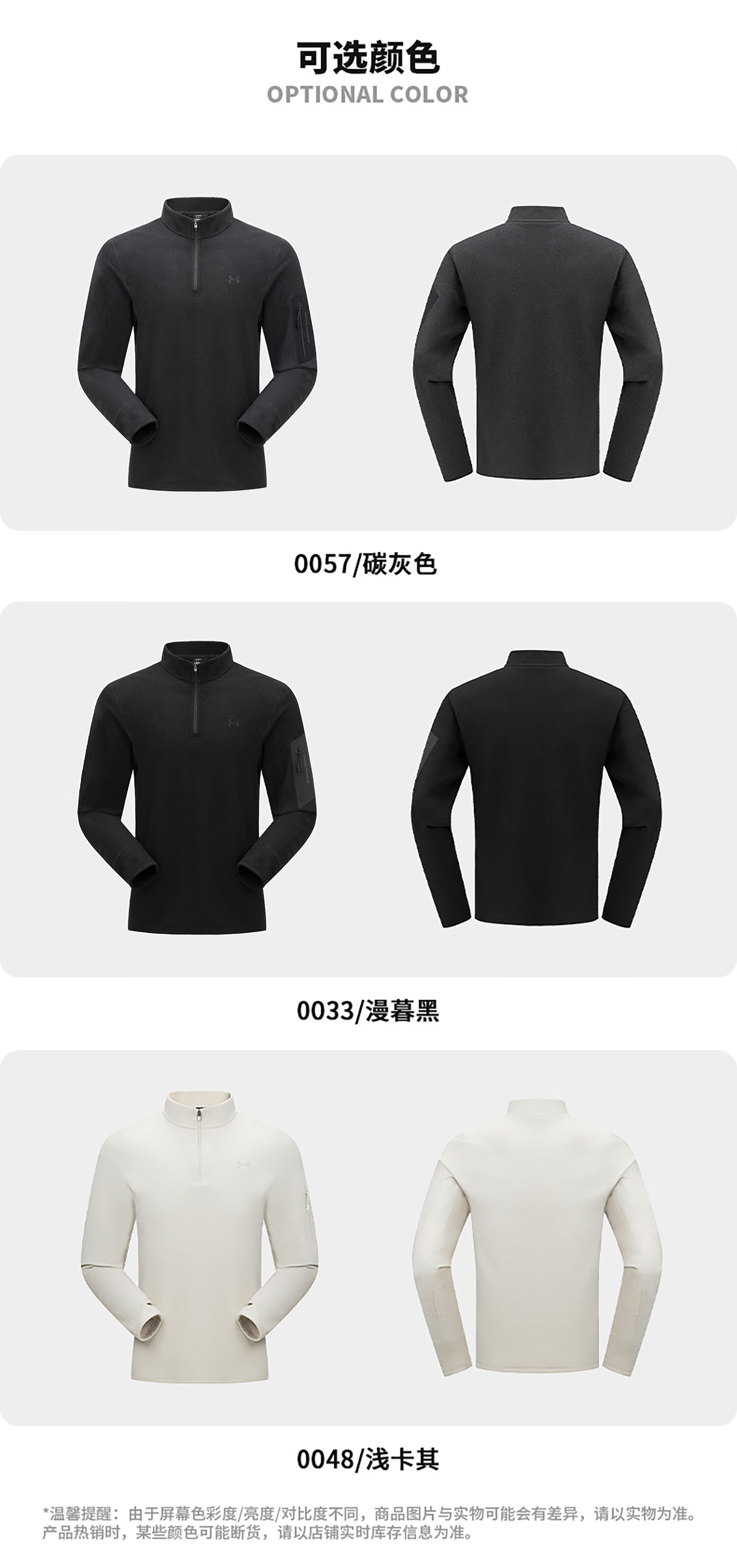 安德玛【谢霆锋同款】户外抓绒衣男女款 透气保暖套头打底衫男 漫暮黑-男款 L